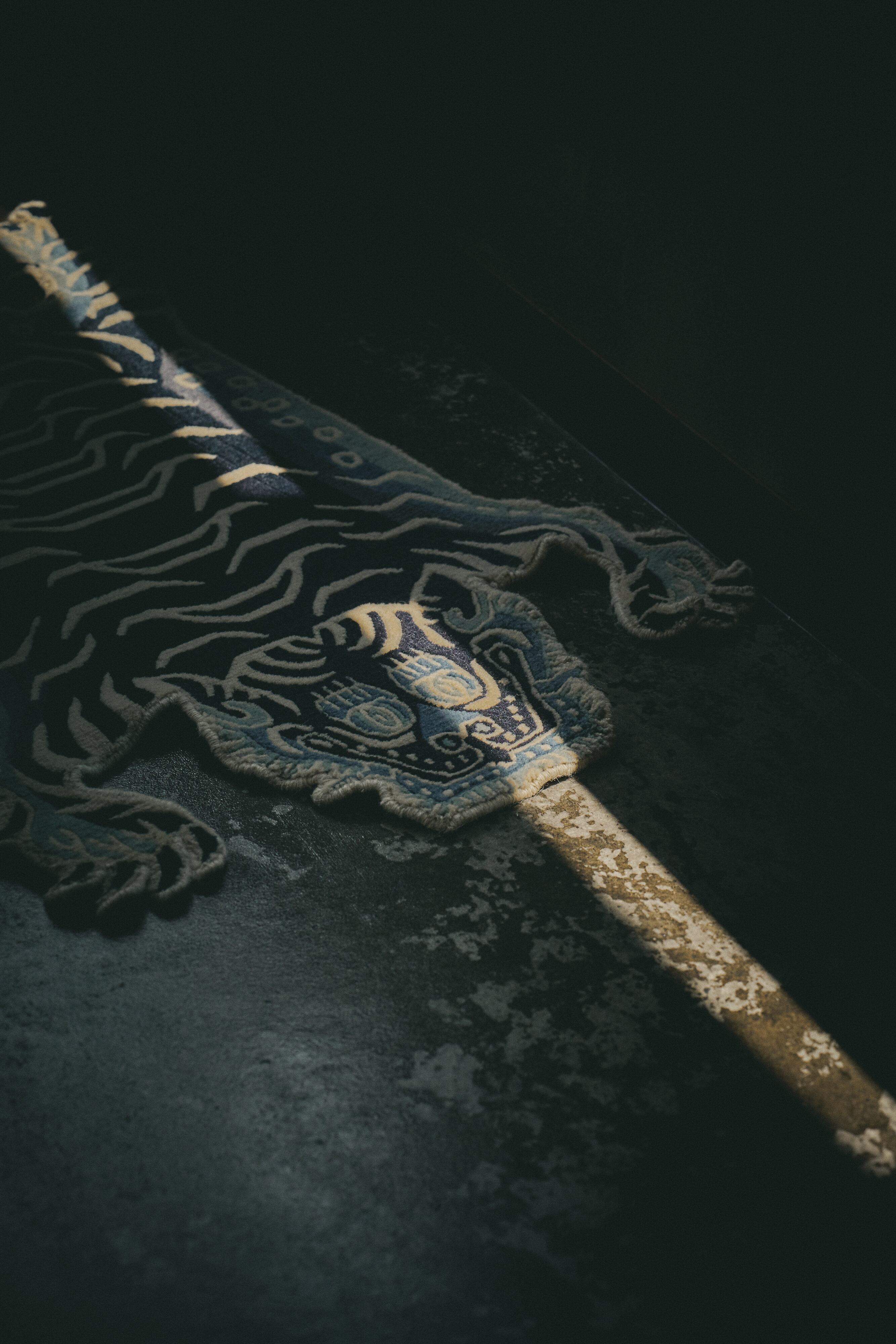 藍染カラーのチベタンタイガーラグと