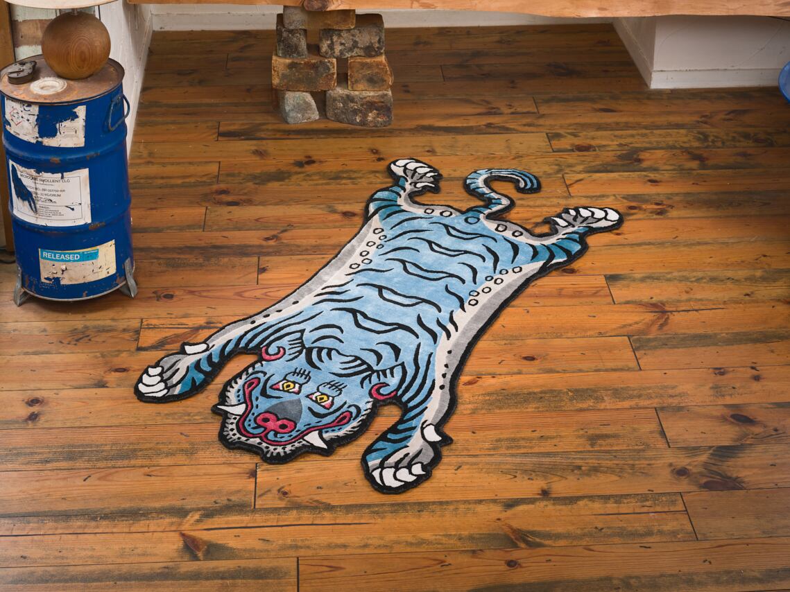 Tibetan Tiger Rug 《Mサイズ•シルク•オリジナル1•ブルー225》チベタンタイガーラグ