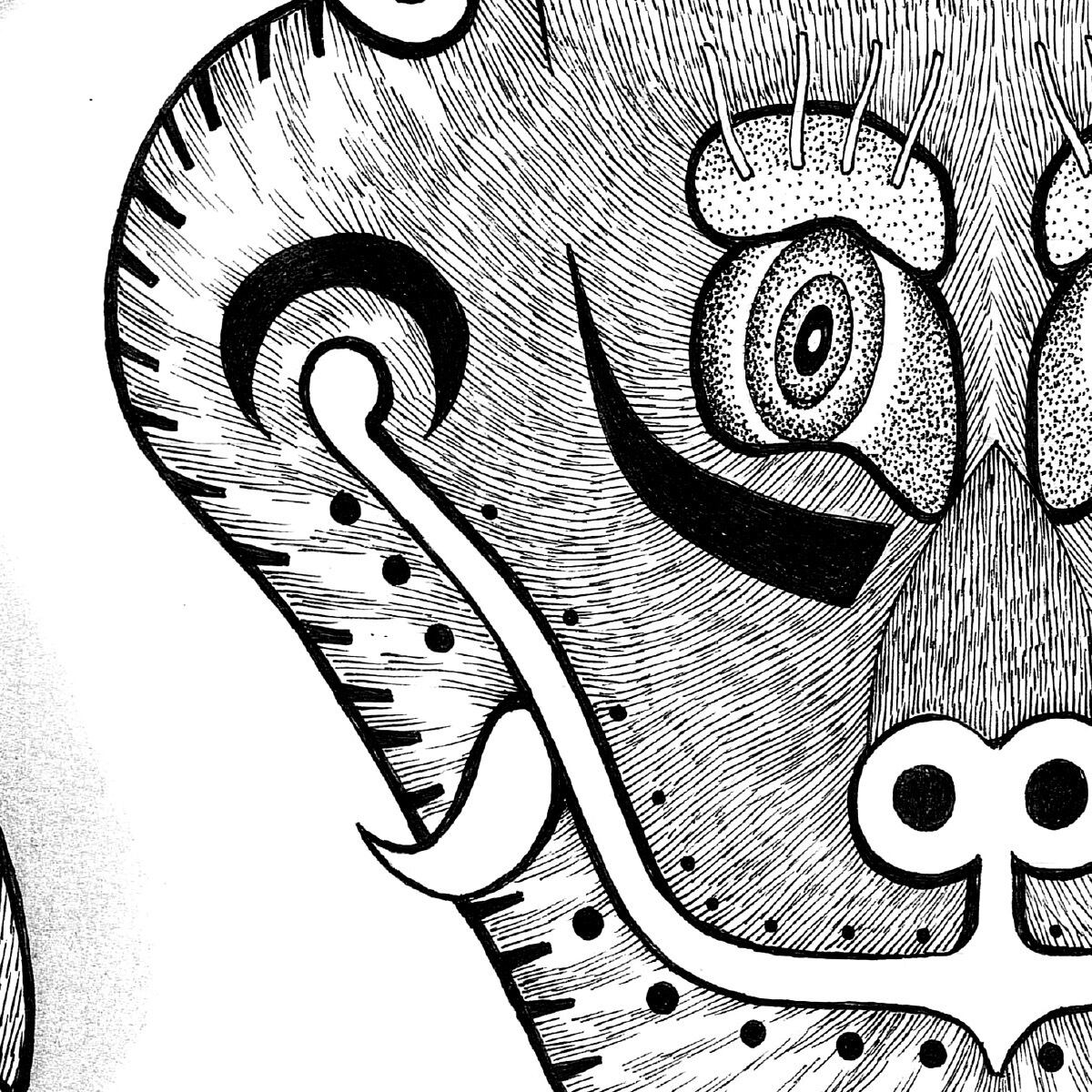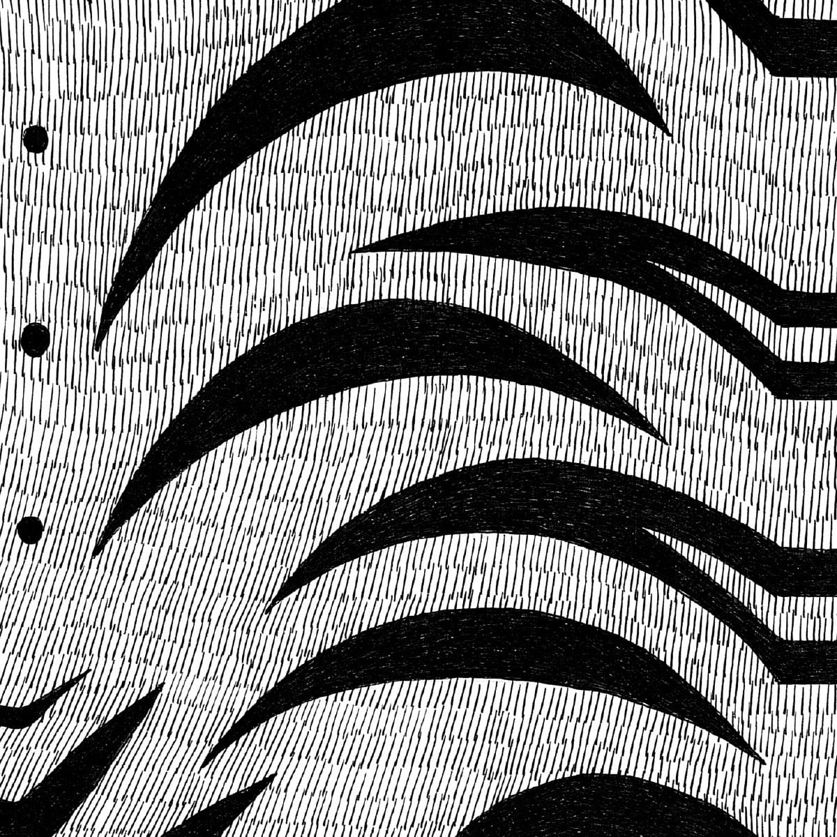 ハッチング技法によってラグの触り心地が判りそうなほど緻密に描きこまれたテクスチャ。
