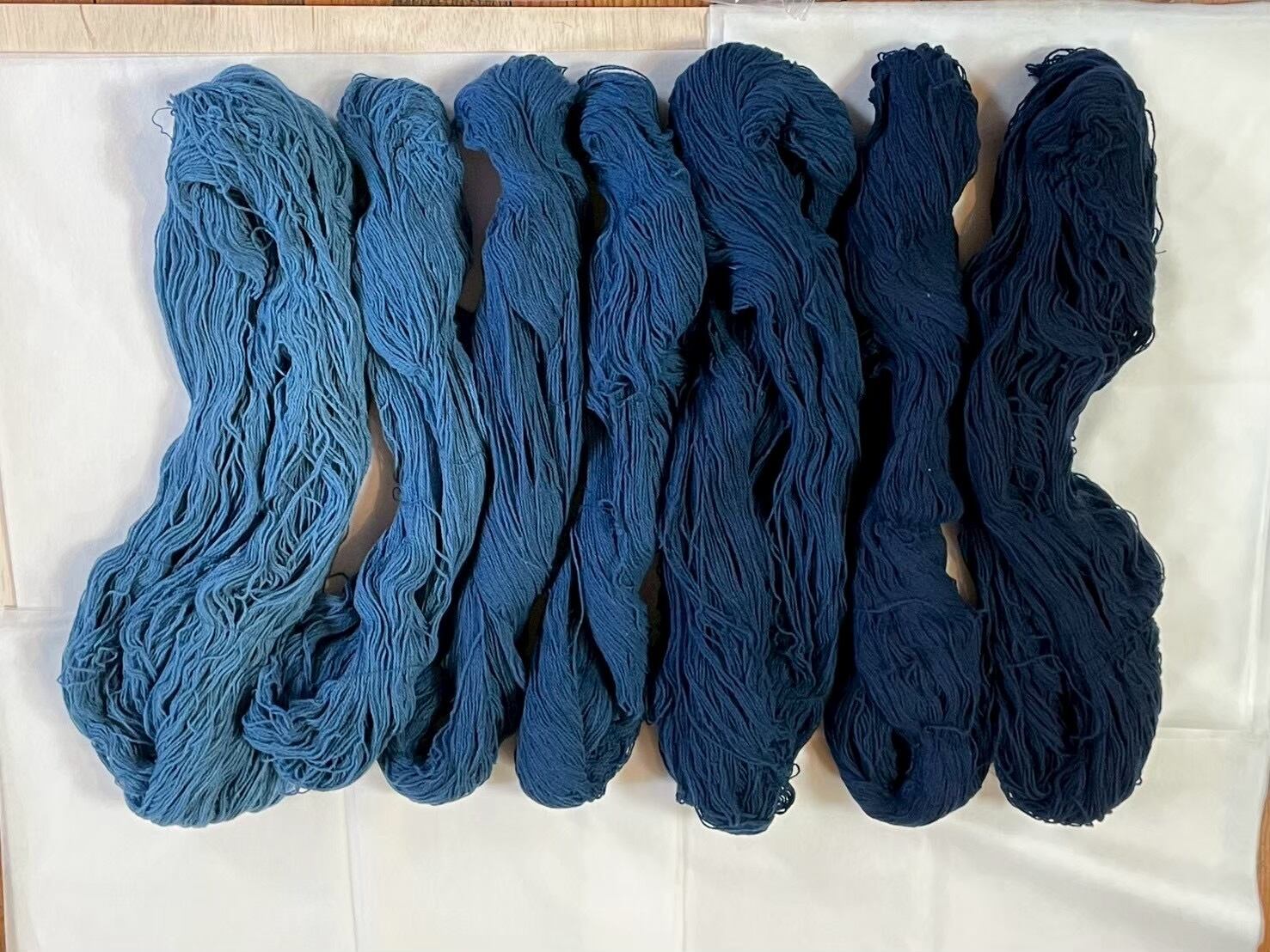 この手法であれば、生活の中で使い込める、強くて美しい「藍染ラグ」が実現できる。