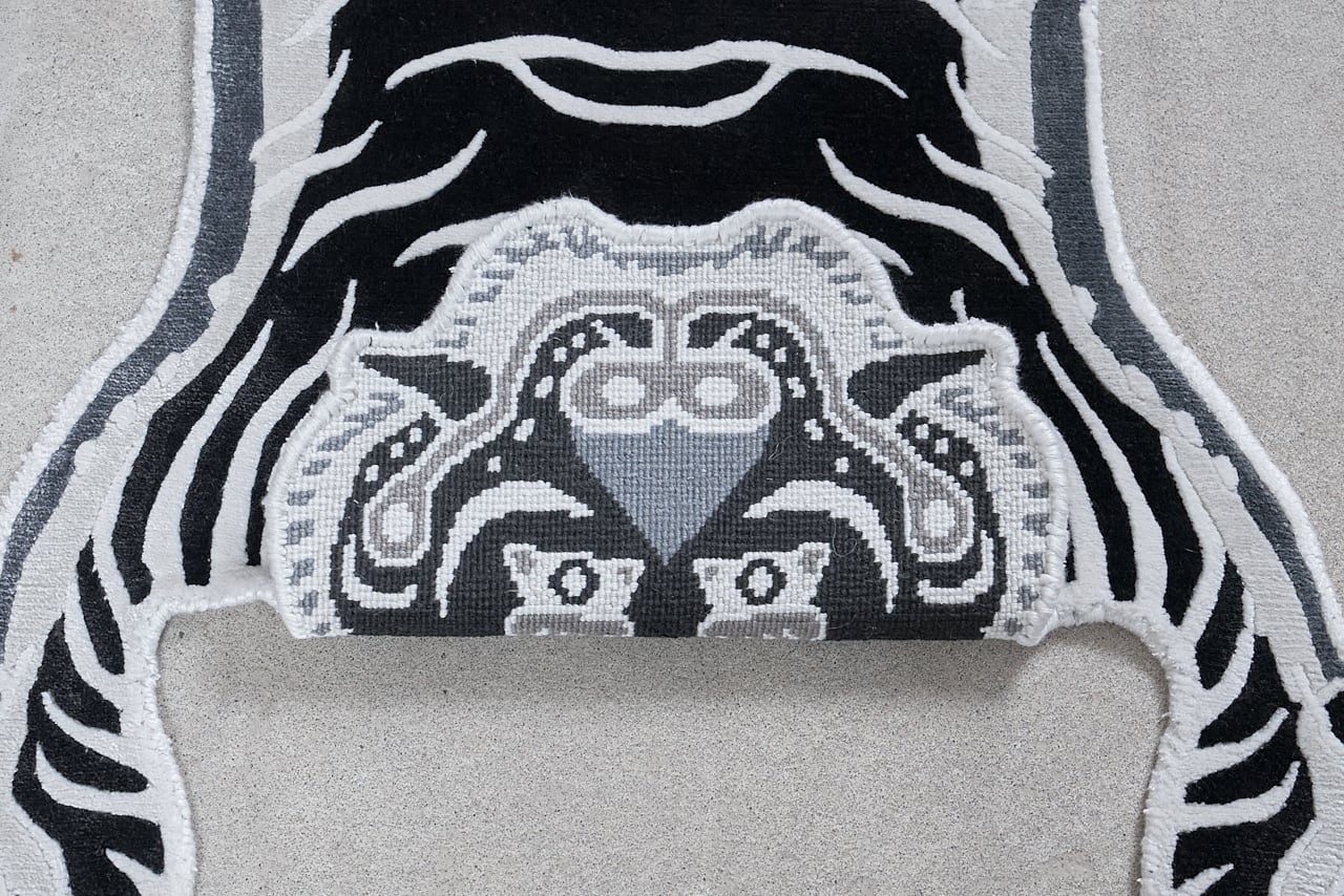 Tibetan Tiger Rug 《Sサイズ•シルク・オリジナル1•モノクロ473》チベタンタイガーラグ