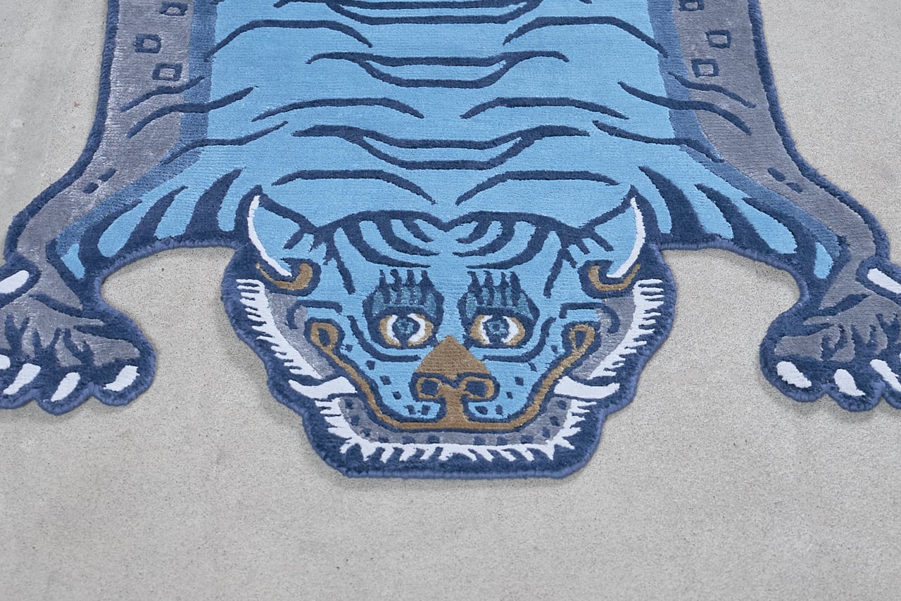 Tibetan Tiger Rug 《Sサイズ•シルク・オリジナル3・レイニーブルー482》チベタンタイガーラグ