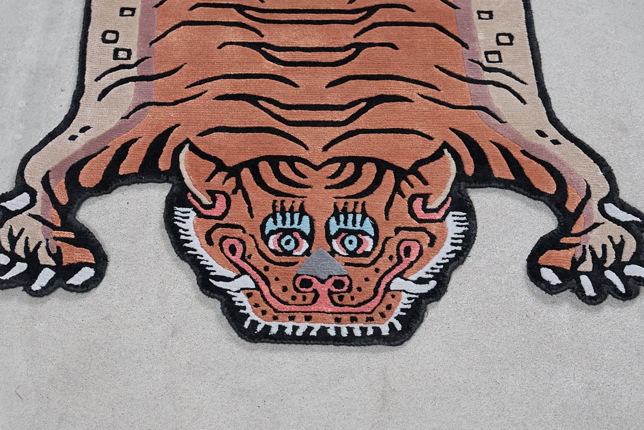 今でも自宅の玄関で、毎日僕を出迎えてくれる彼の表情が、よりチベタンタイガーラグを愛おしく思わせます。