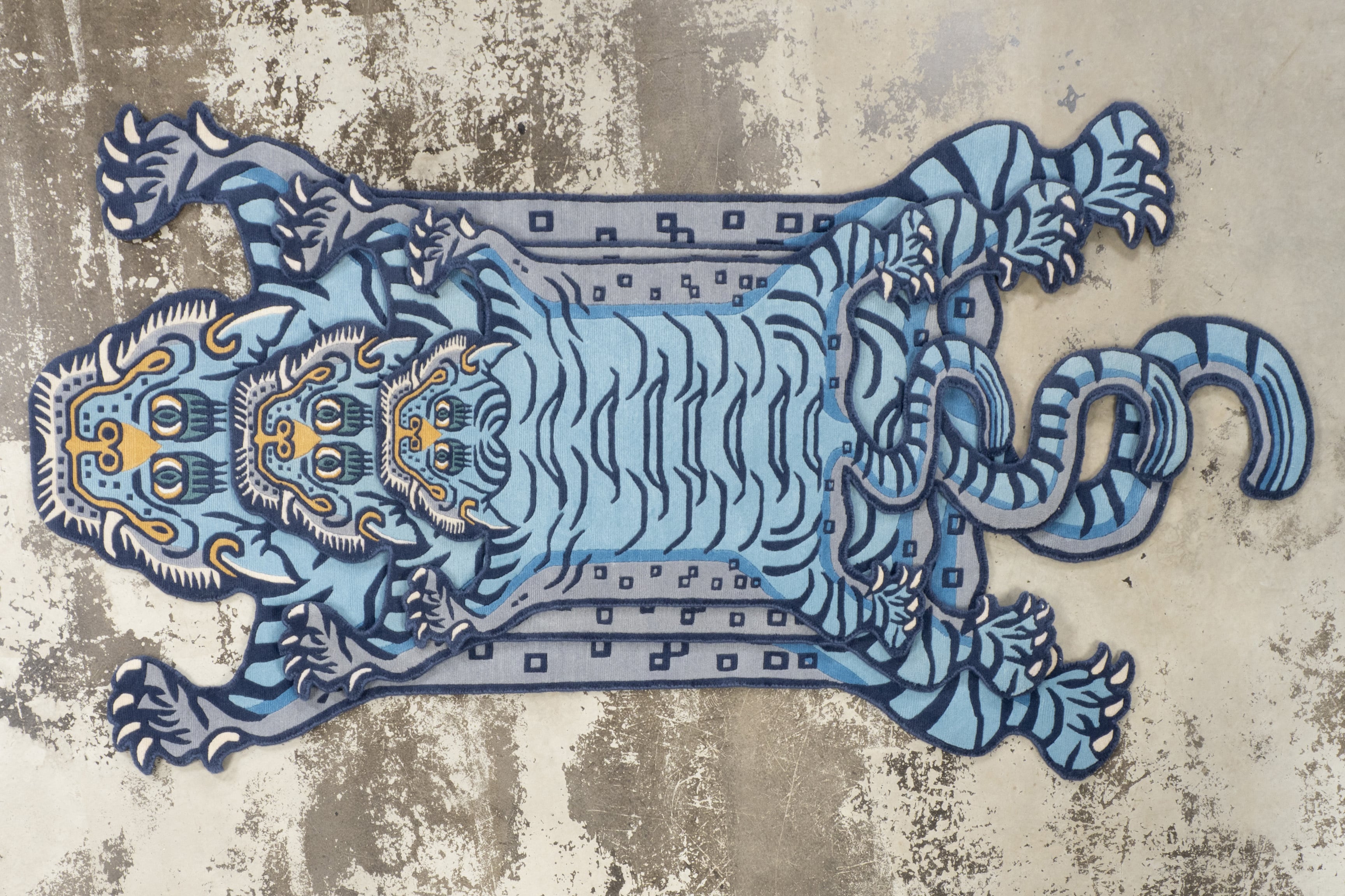 Tibetan Tiger Rug 《Mサイズ•ウール・オリジナル3・レイニーブルー376》チベタンタイガーラグ
