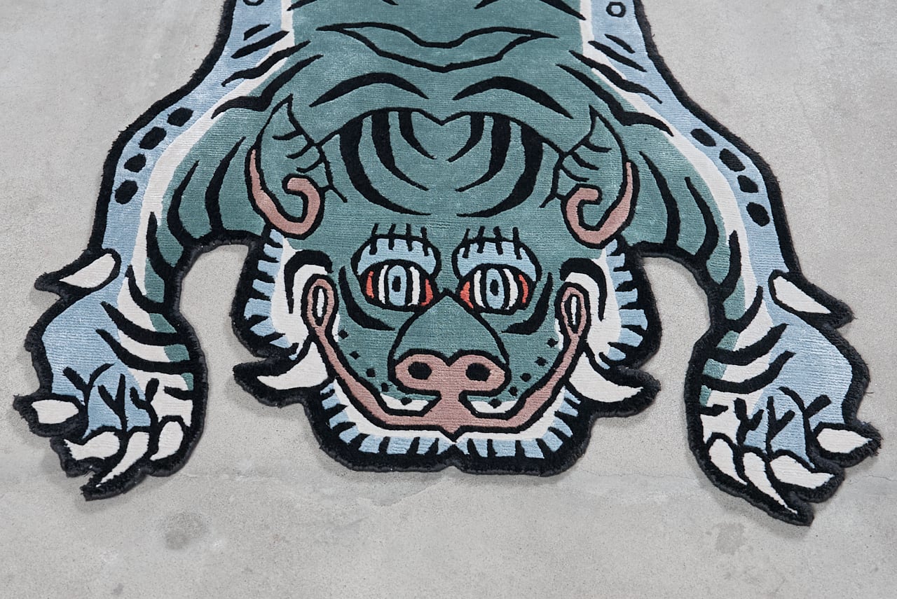 Tibetan Tiger Rug 《Mサイズ•シルク・オリジナル2・フォレストグリーン245》チベタンタイガーラグ
