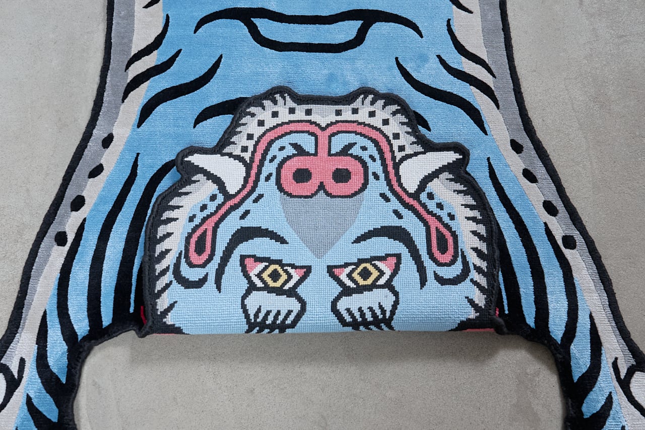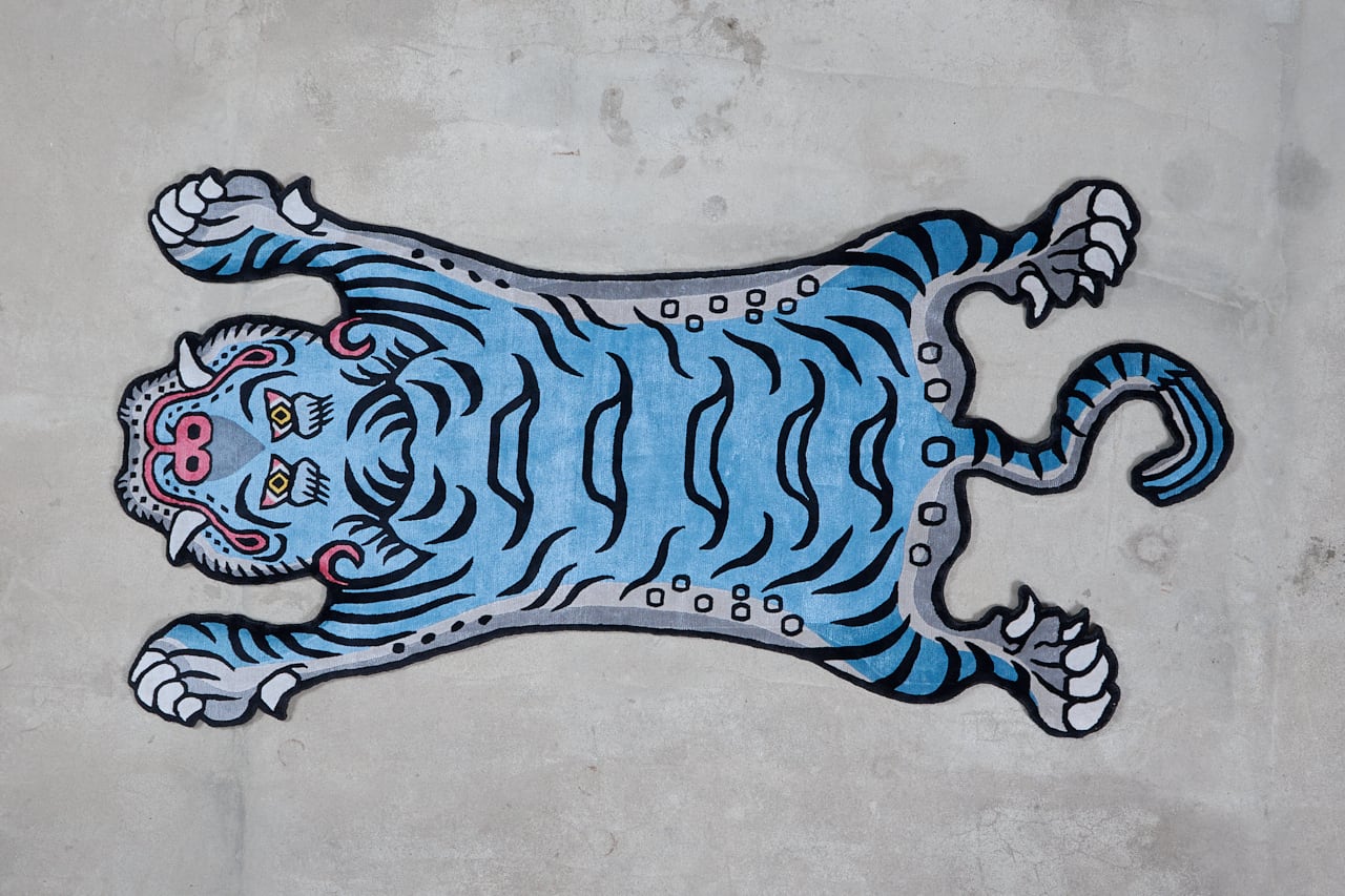 Tibetan Tiger Rug 《Lサイズ•シルク•オリジナル1•ブルー242》チベタンタイガーラグ