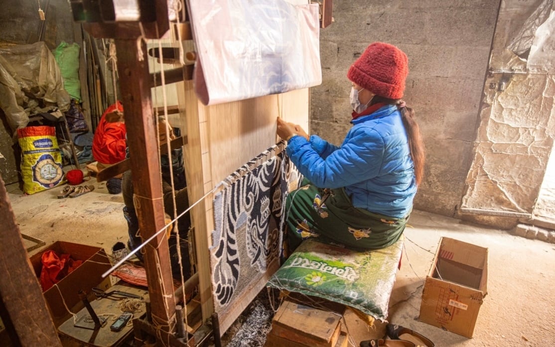 ネパールで絨毯職人が約1ヶ月かけ織りあげています。