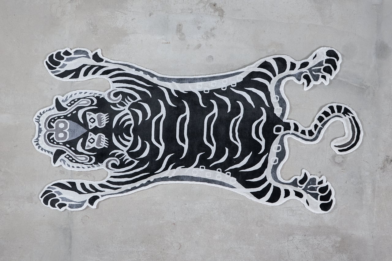 Tibetan Tiger Rug 《Lサイズ•シルク•オリジナル1•モノクロ243》チベタンタイガーラグ