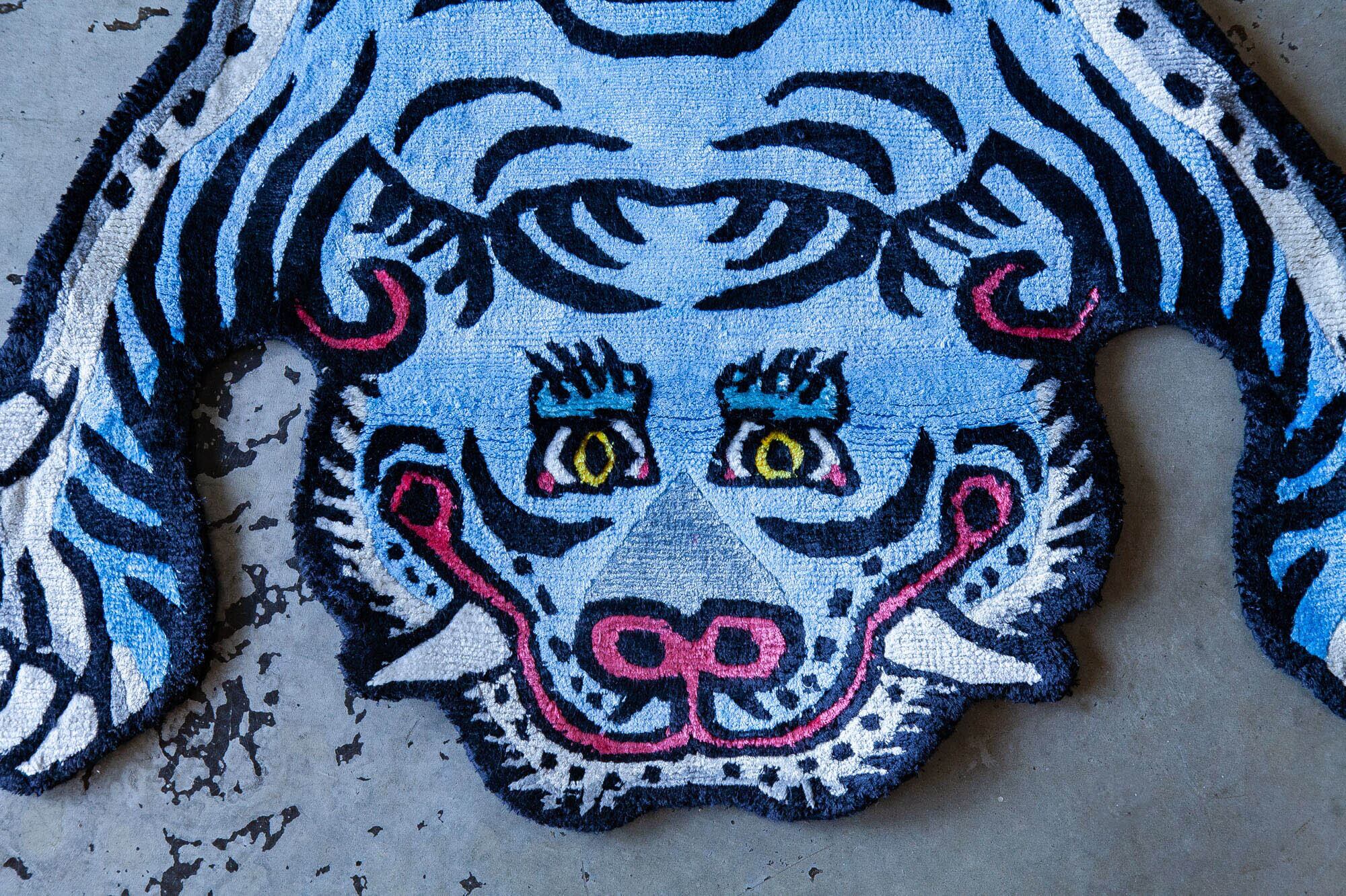 Tibetan Tiger Rug 《Sサイズ•シルク・オリジナル•ブルーバージョン030》チベタンタイガーラグ