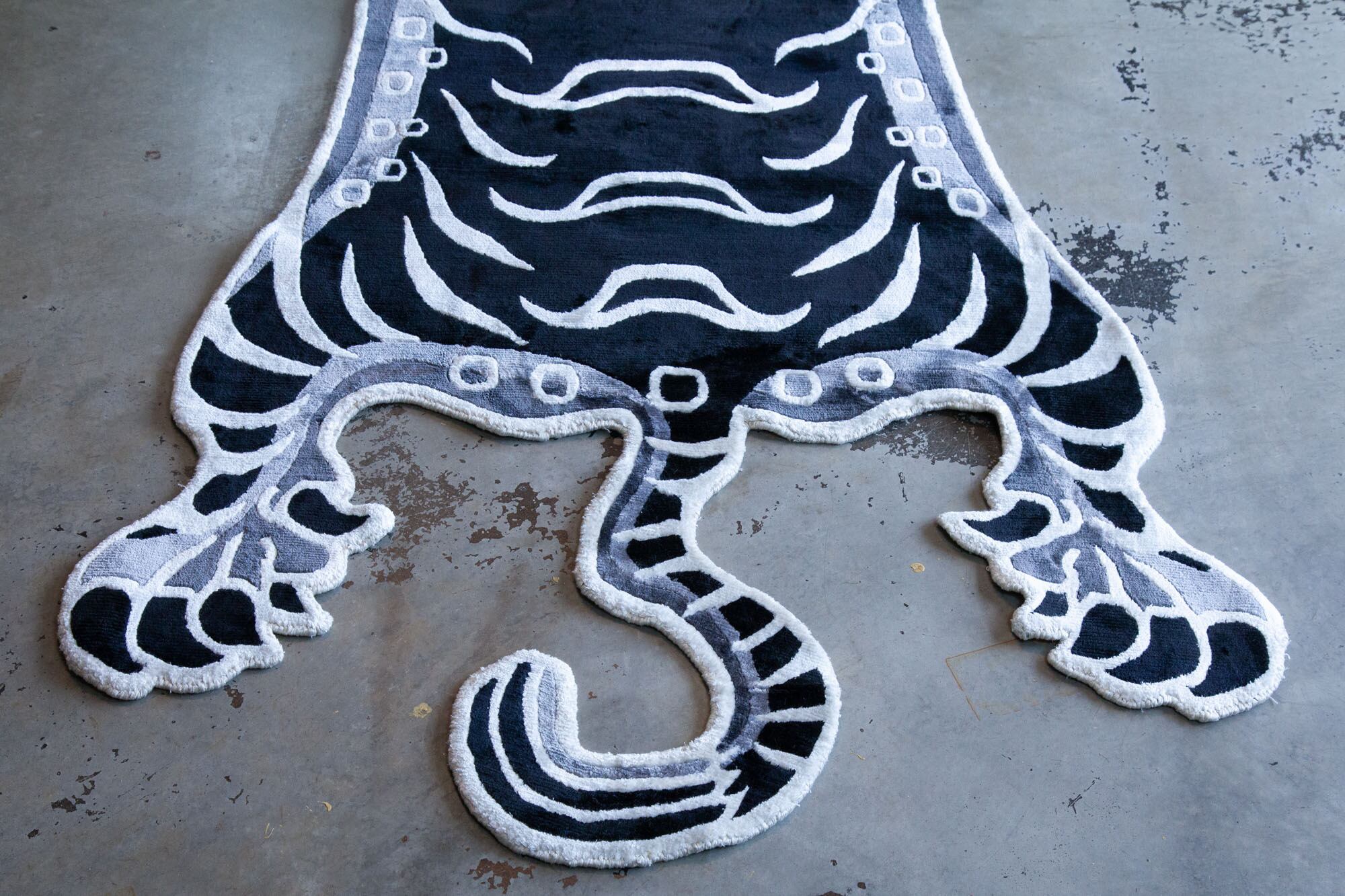 Tibetan Tiger Rug 《Lサイズ•シルク•オリジナル•モノクロバージョン026》チベタンタイガーラグ
