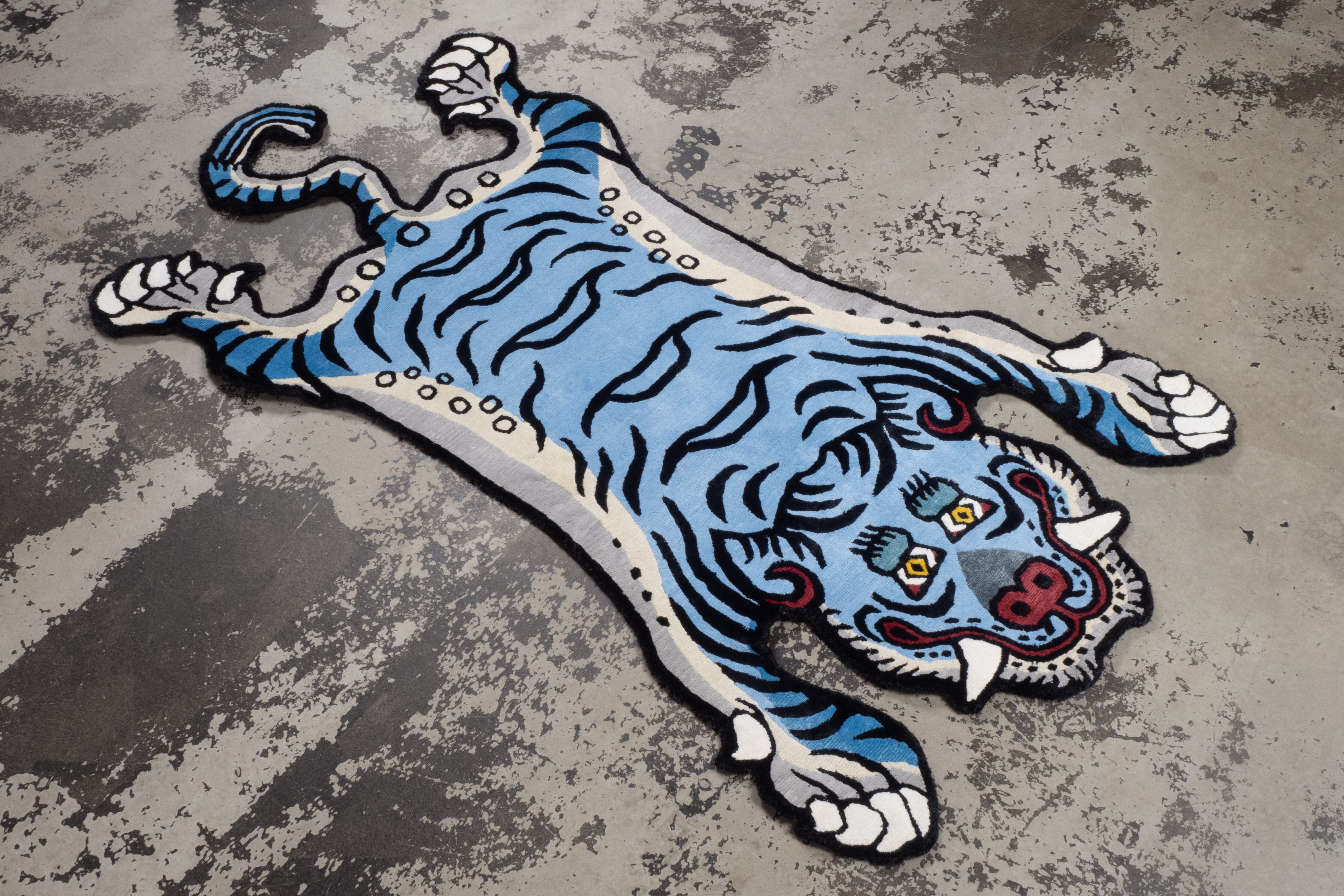 Tibetan Tiger Rug 《Mサイズ•シルク•オリジナル•ブルーバージョン039》チベタンタイガーラグ