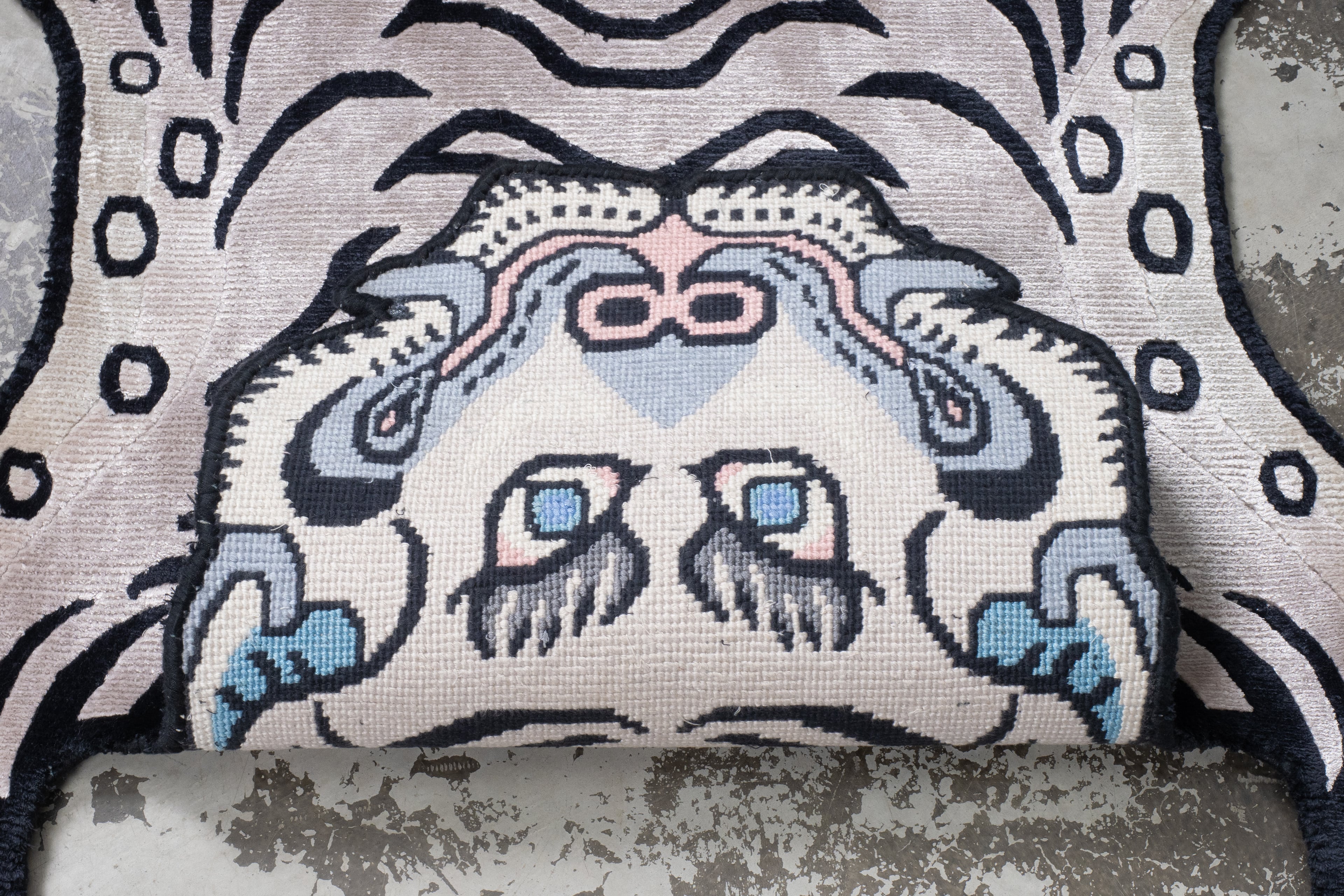 Tibetan Tiger Rug 《Sサイズ•シルク・パールホワイトバージョン058》チベタンタイガーラグ