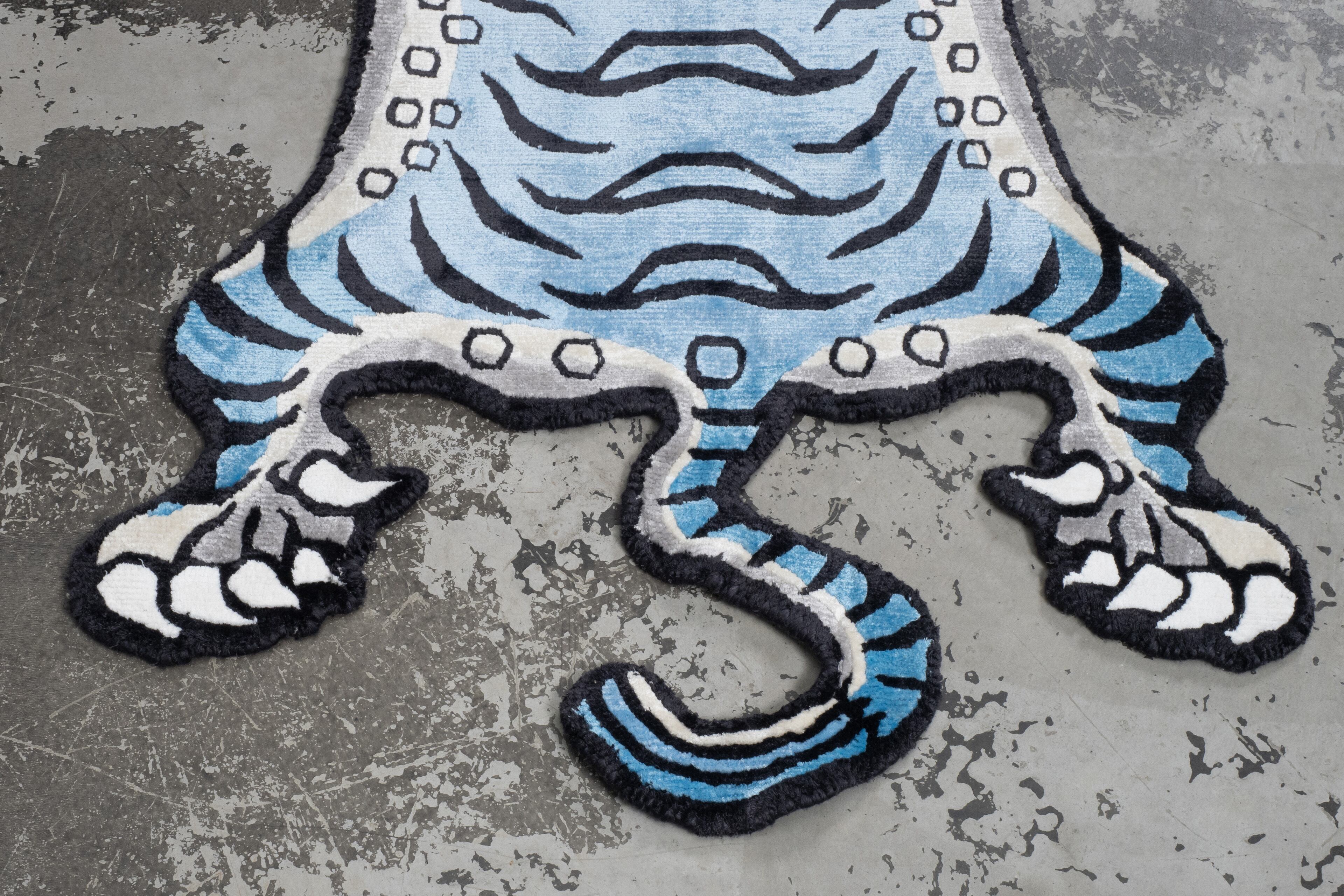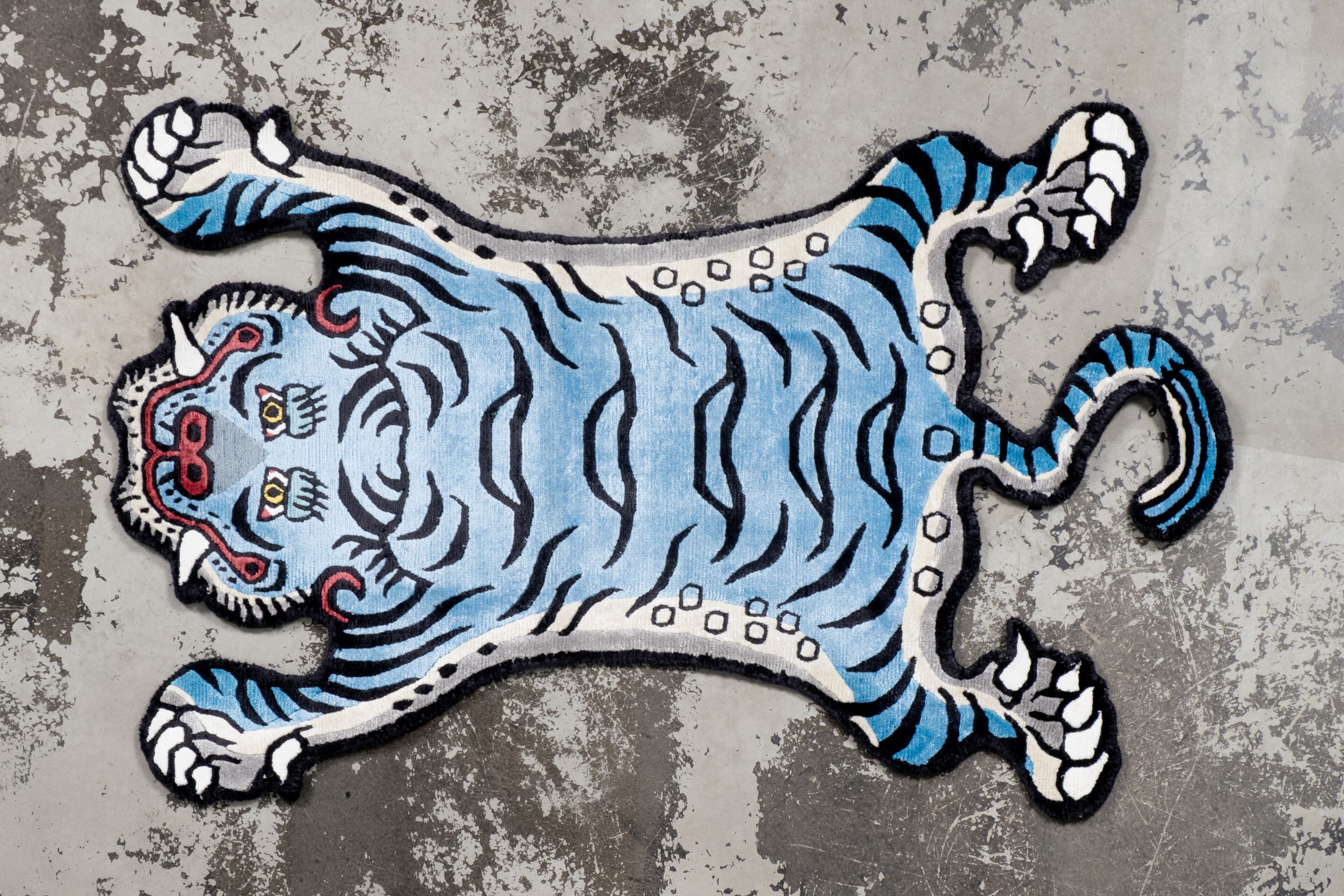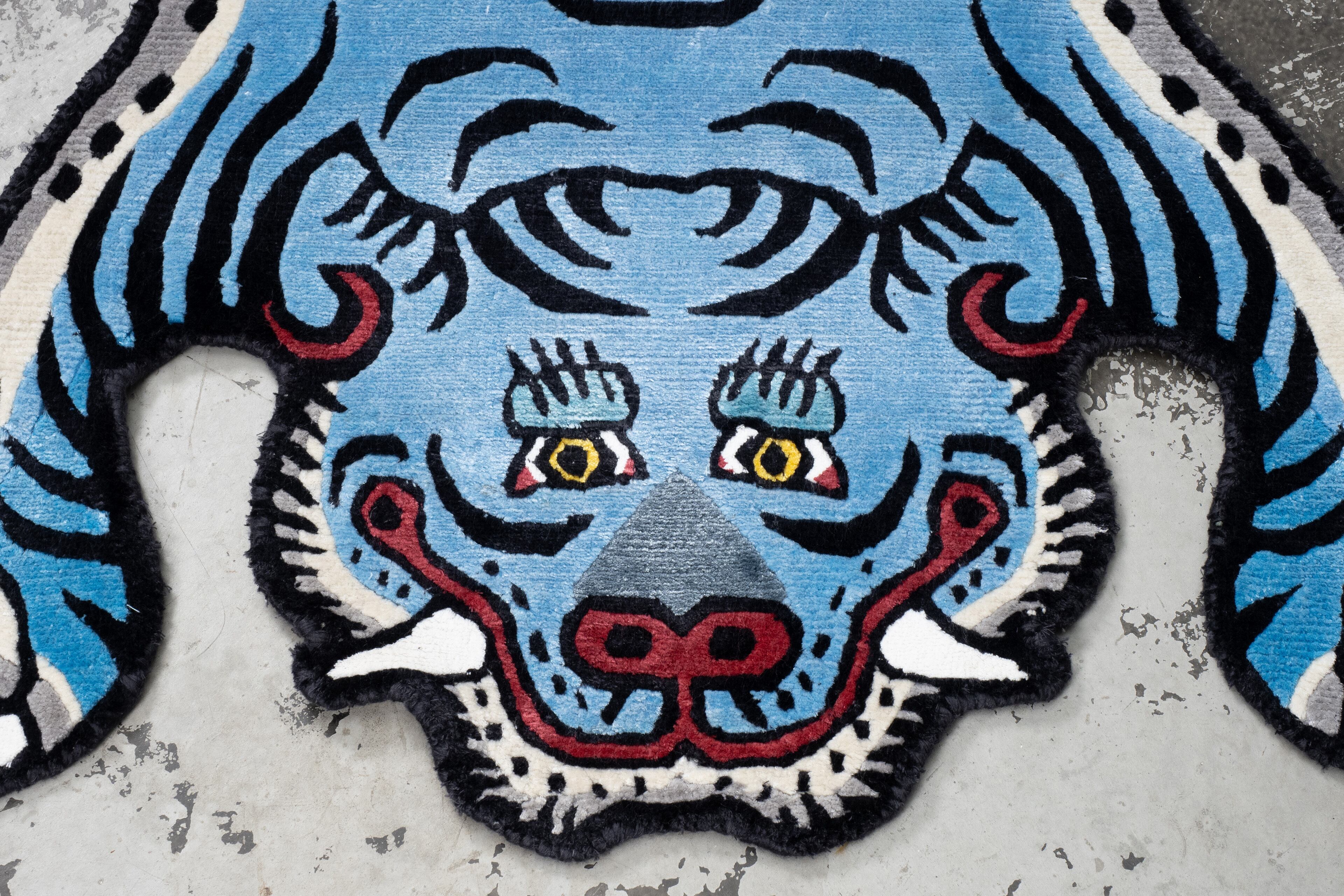 Tibetan Tiger Rug 《Sサイズ•シルク・オリジナル•ブルーバージョン061》チベタンタイガーラグ