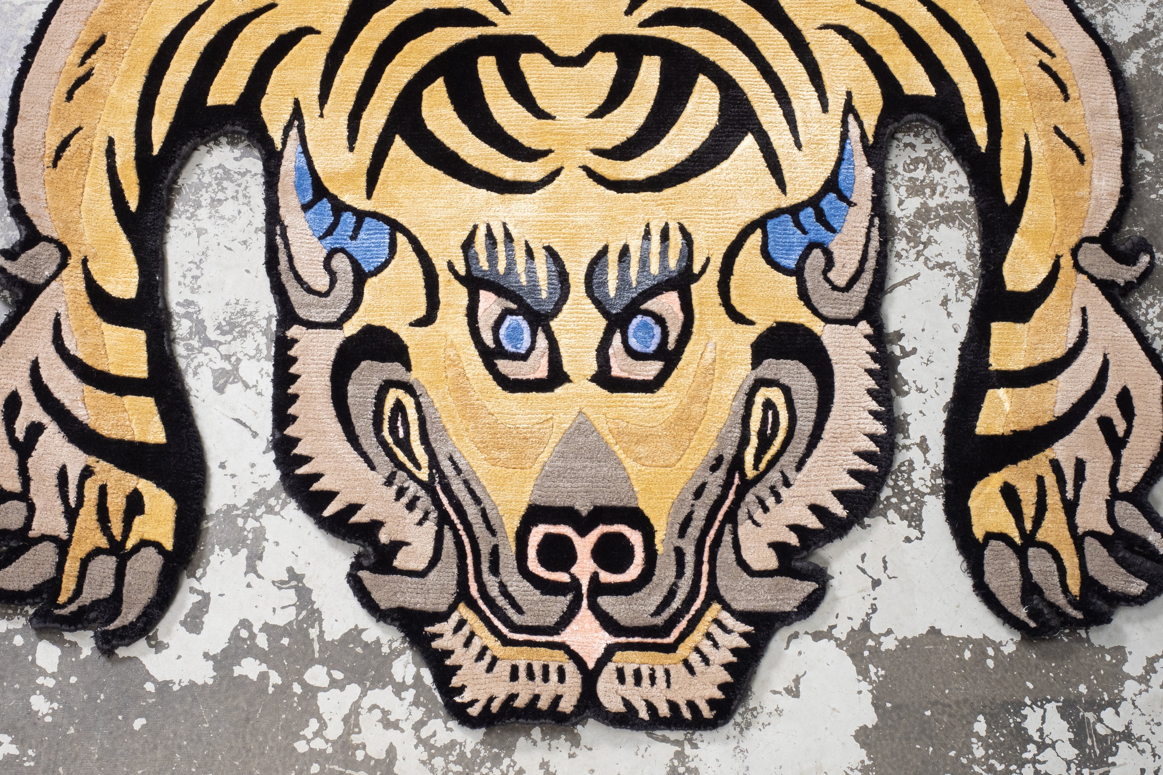 Tibetan Tiger Rug 《Mサイズ•シルク・シャンパンゴールドバーション054》チベタンタイガーラグ
