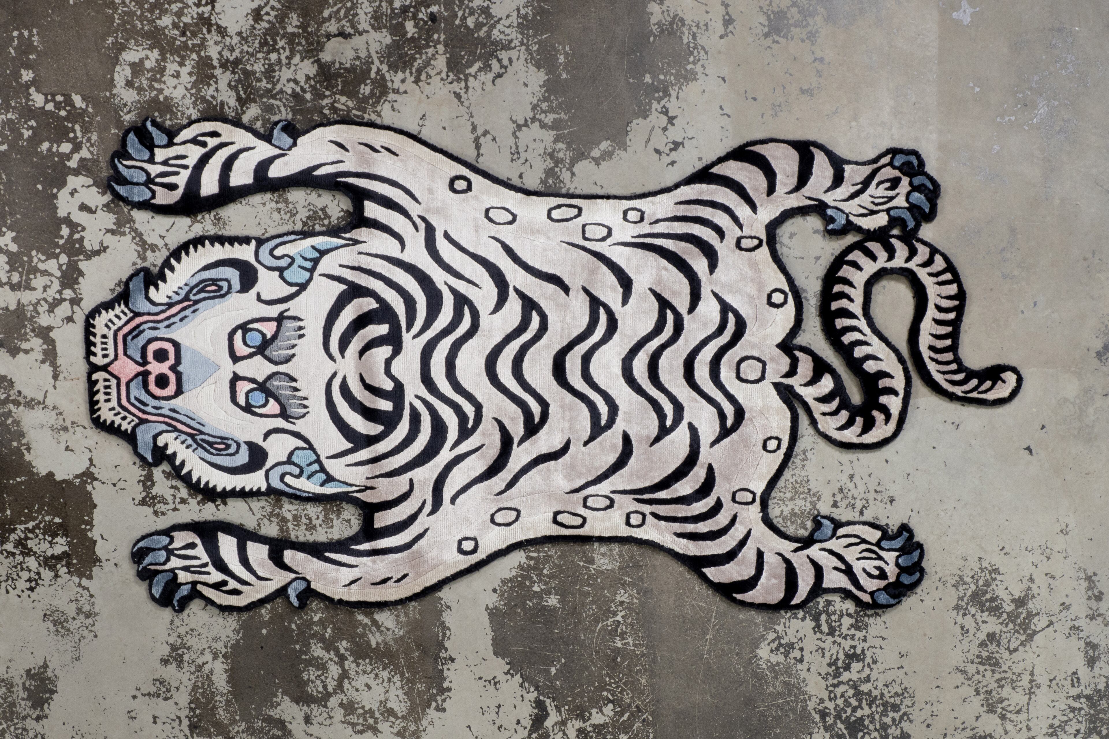 Tibetan Tiger Rug 《Mサイズ•シルク・パールホワイトバーション055》チベタンタイガーラグ