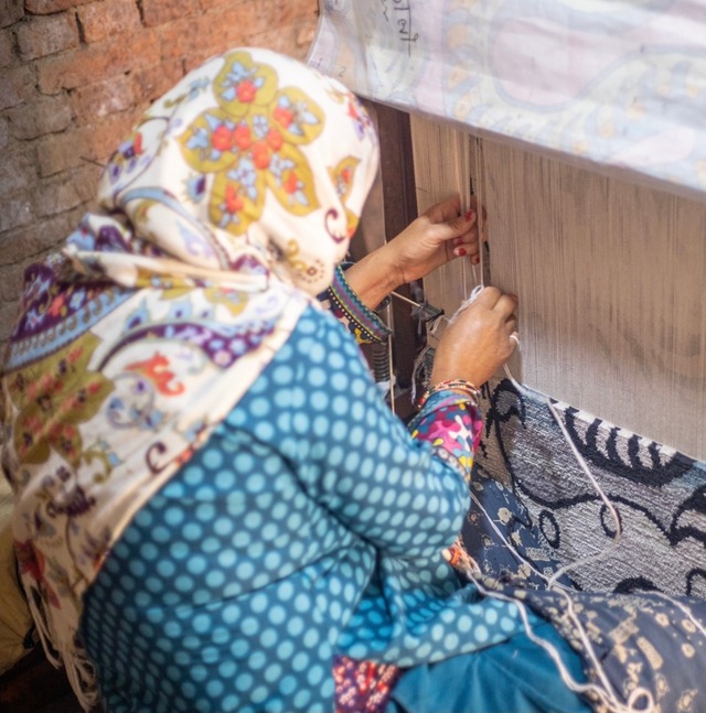 ネパールで絨毯職人が約1ヶ月かけ織りあげています。