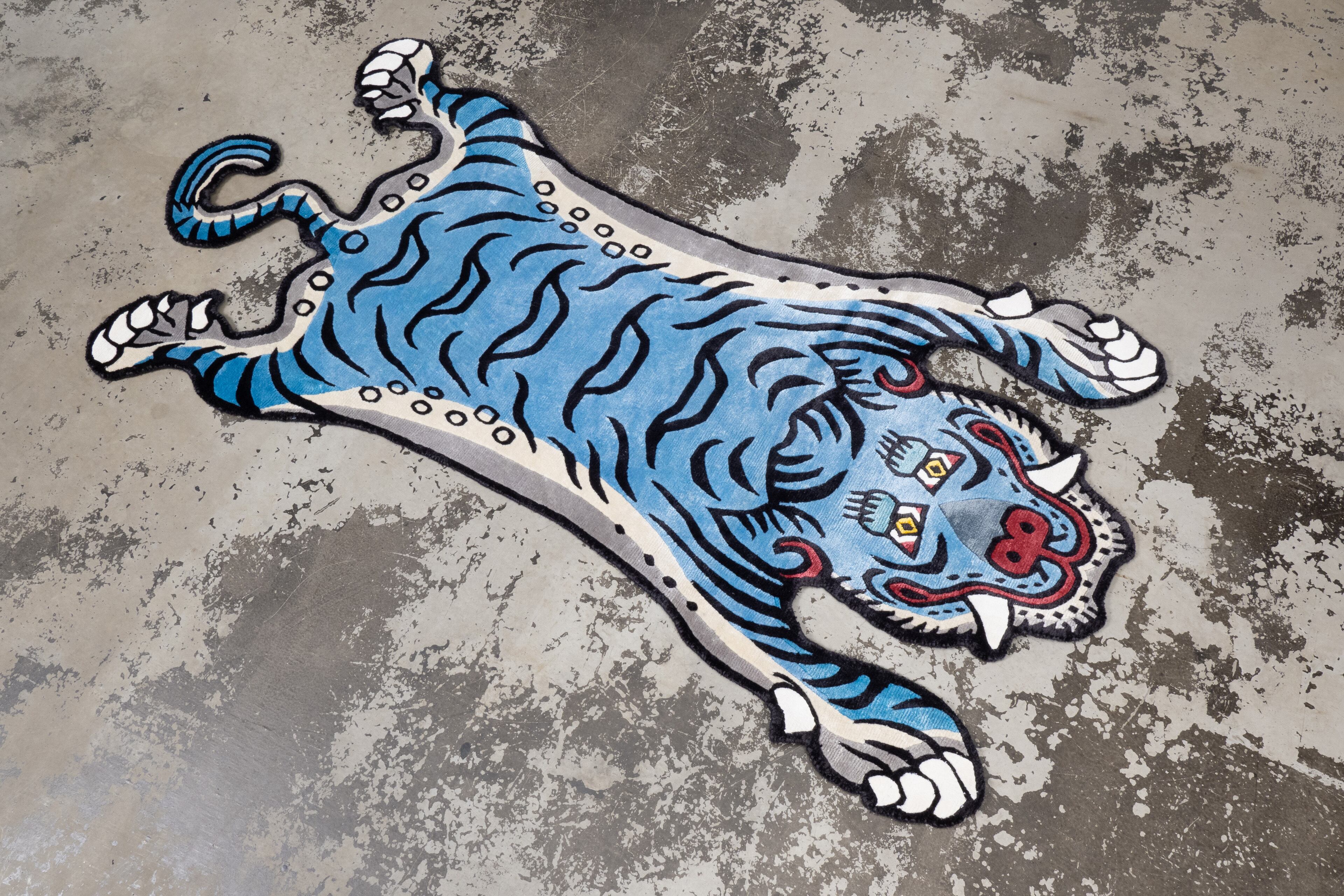 Tibetan Tiger Rug 《Mサイズ•シルク•オリジナル•ブルーバージョン056》チベタンタイガーラグ