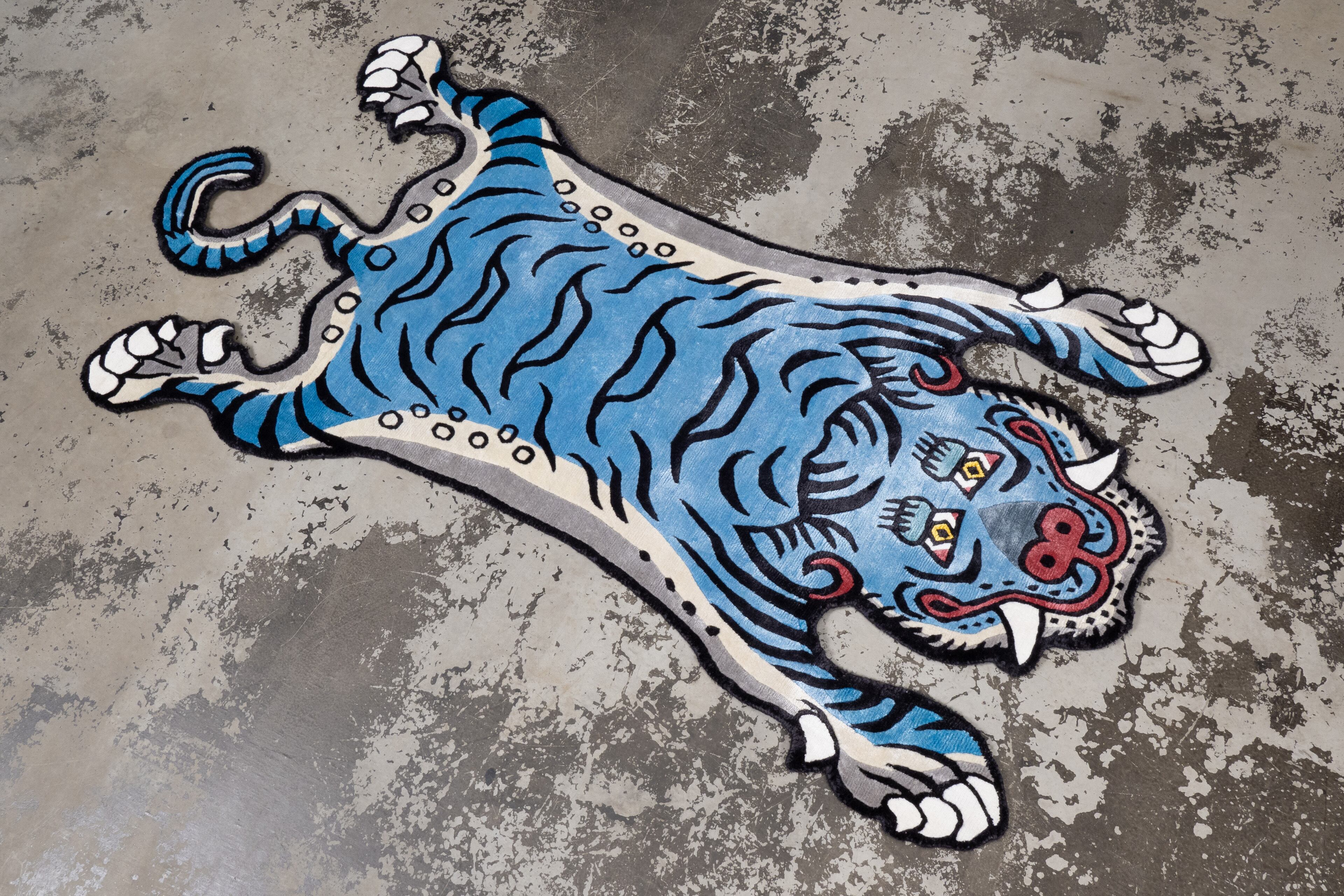 Tibetan Tiger Rug 《Mサイズ•シルク•オリジナル•ブルーバージョン057》チベタンタイガーラグ