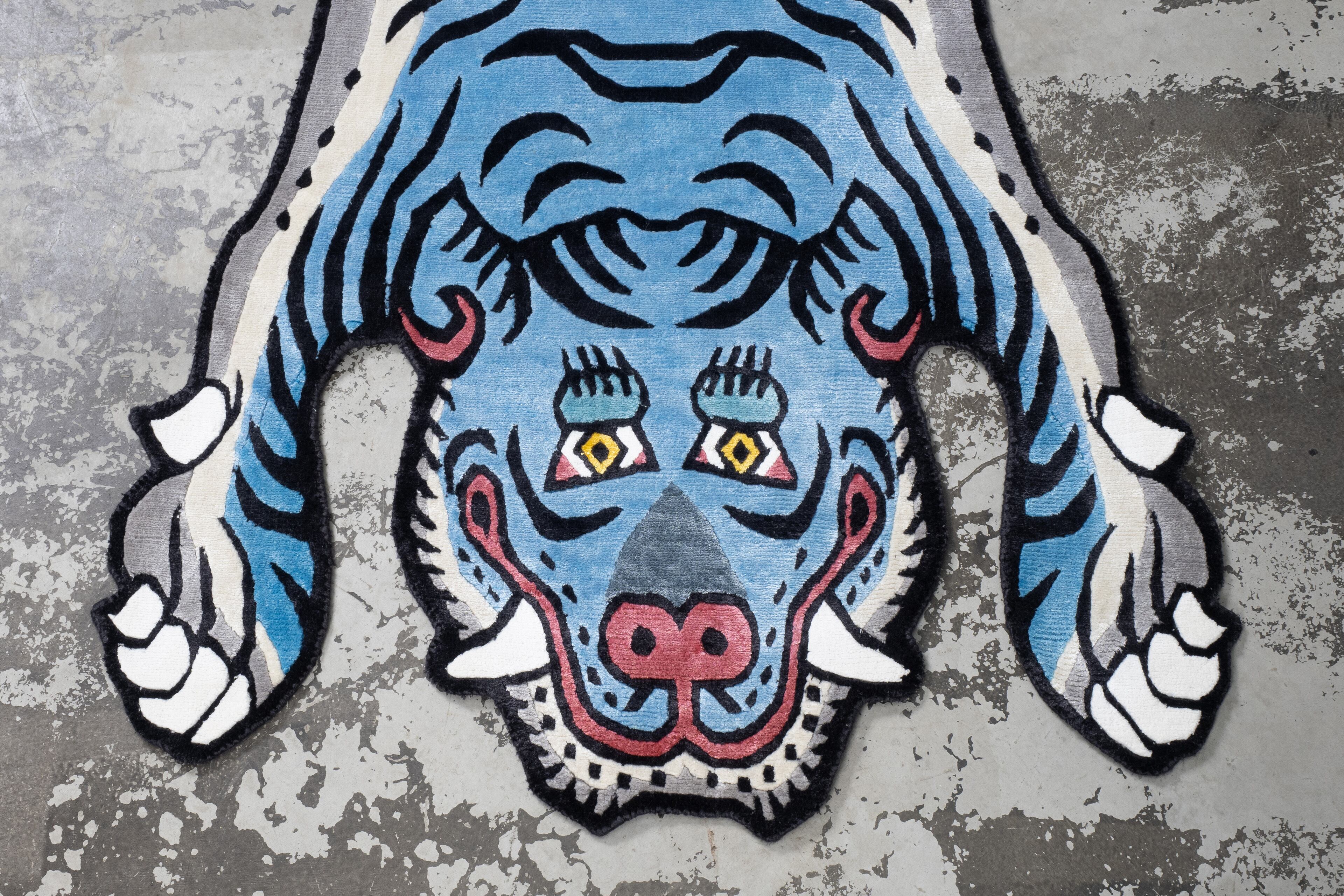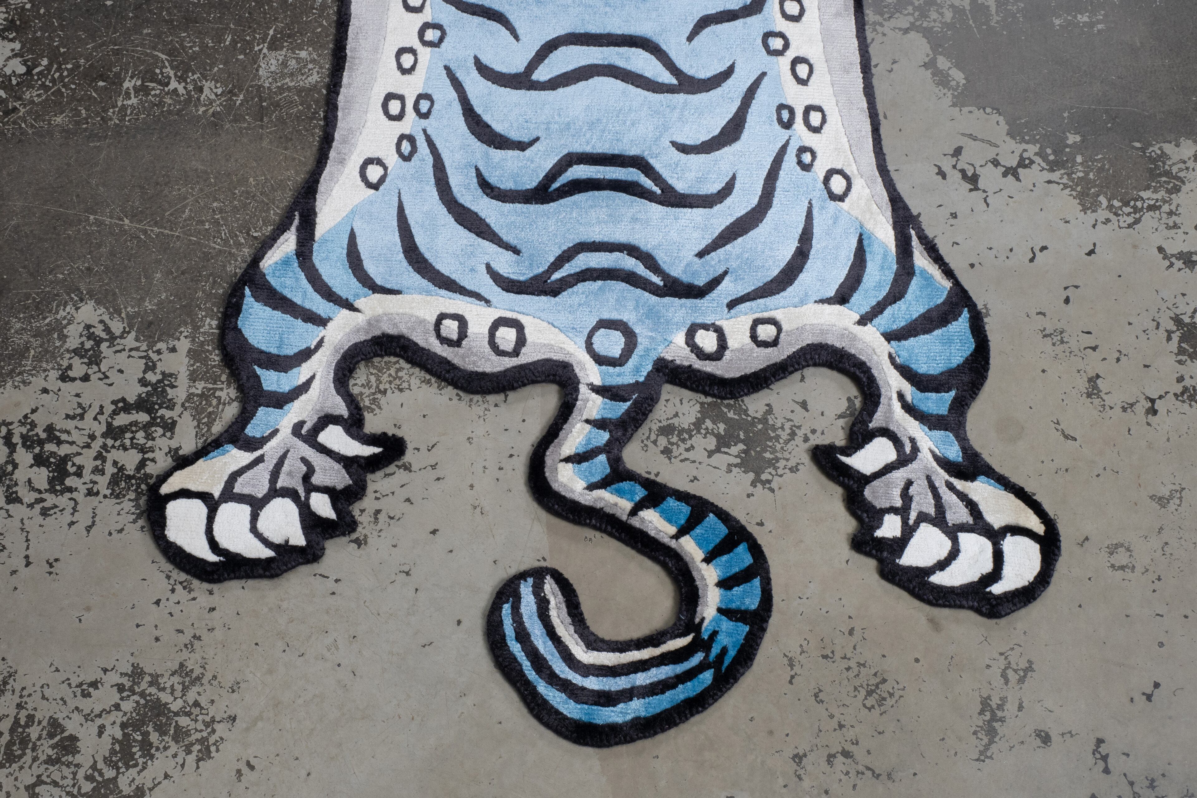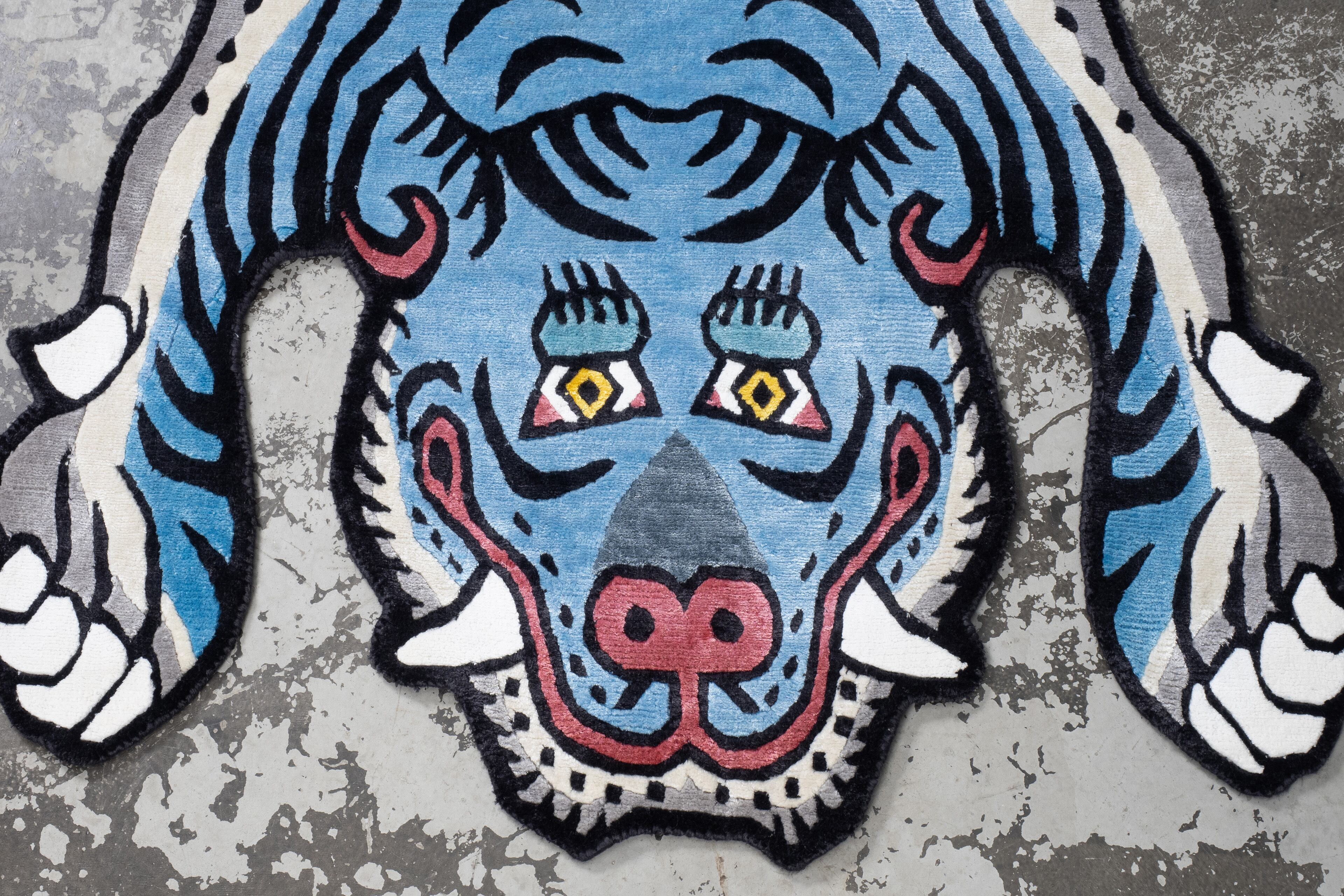 Tibetan Tiger Rug 《Mサイズ•シルク•オリジナル•ブルーバージョン058》チベタンタイガーラグ