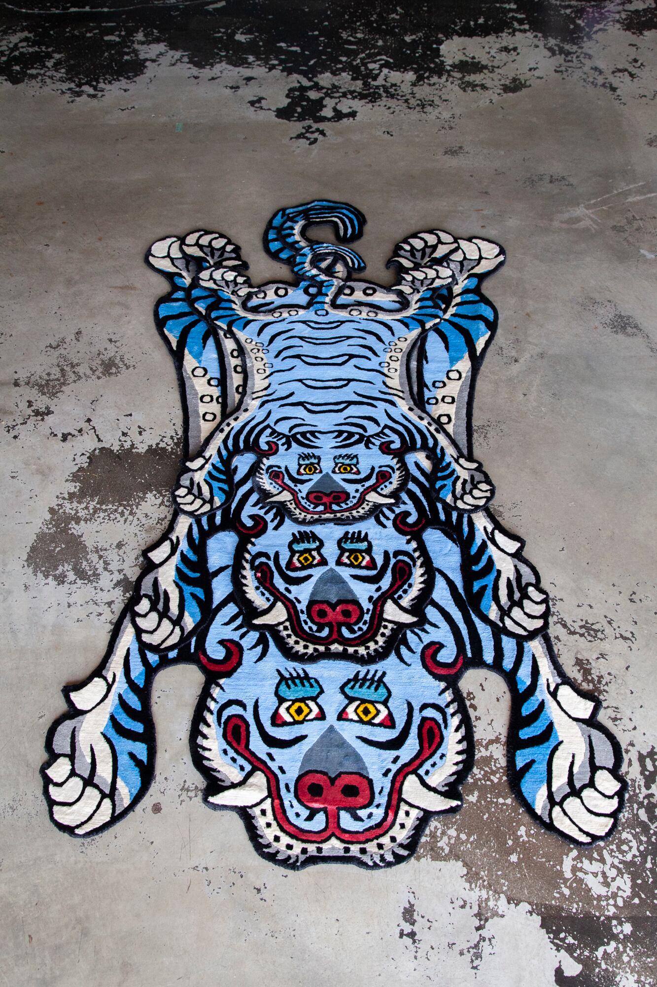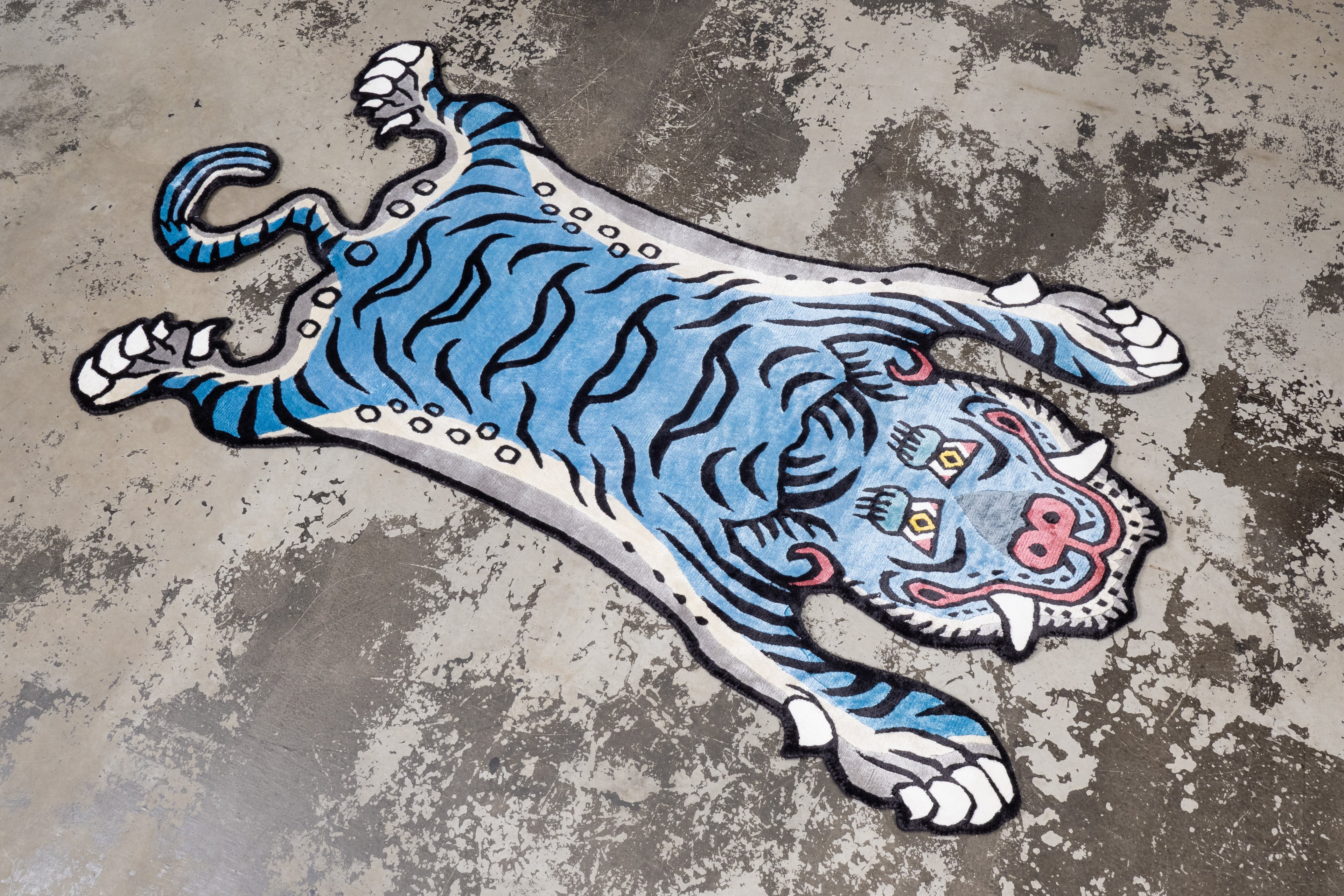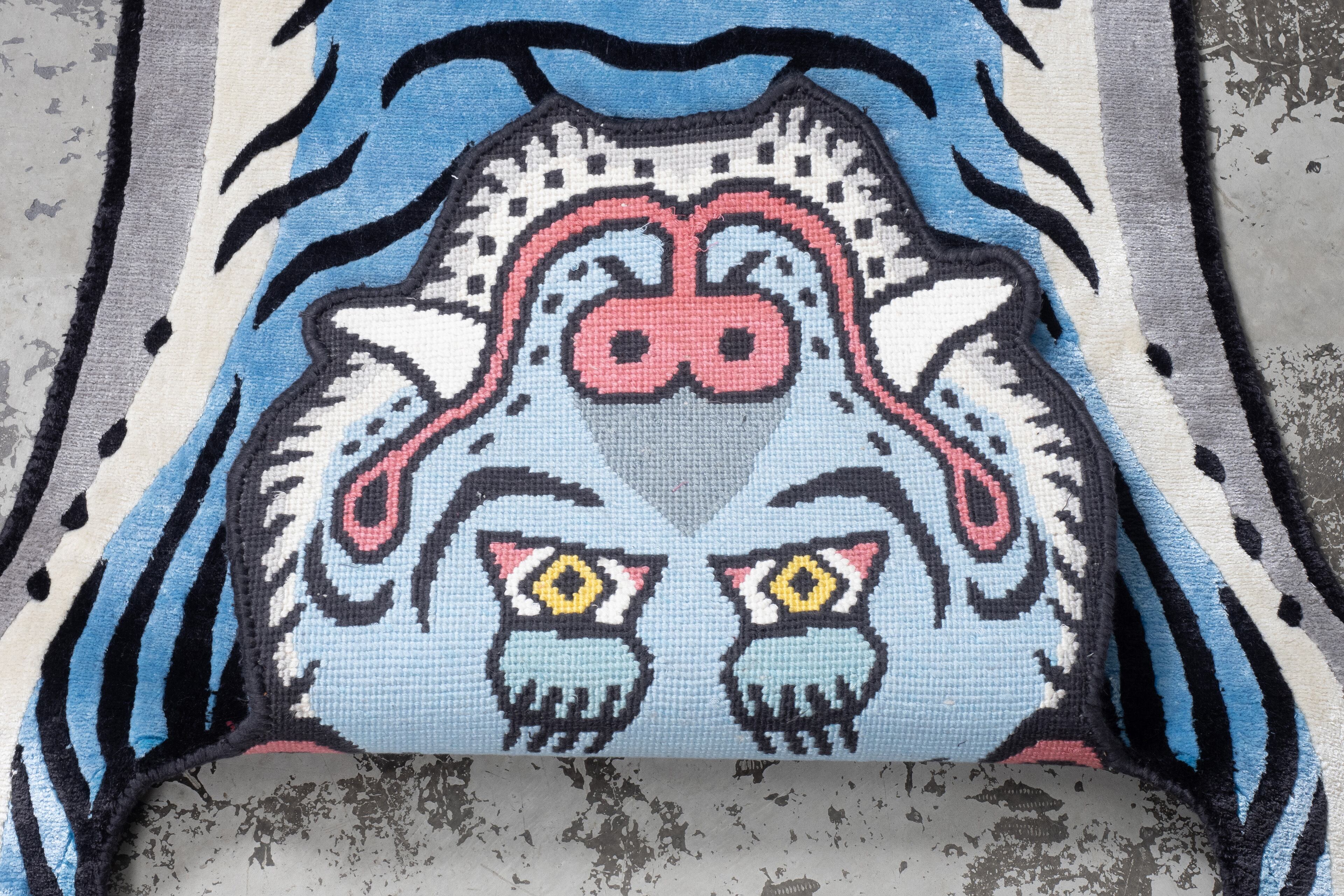 Tibetan Tiger Rug 《Mサイズ•シルク•オリジナル•ブルーバージョン058》チベタンタイガーラグ