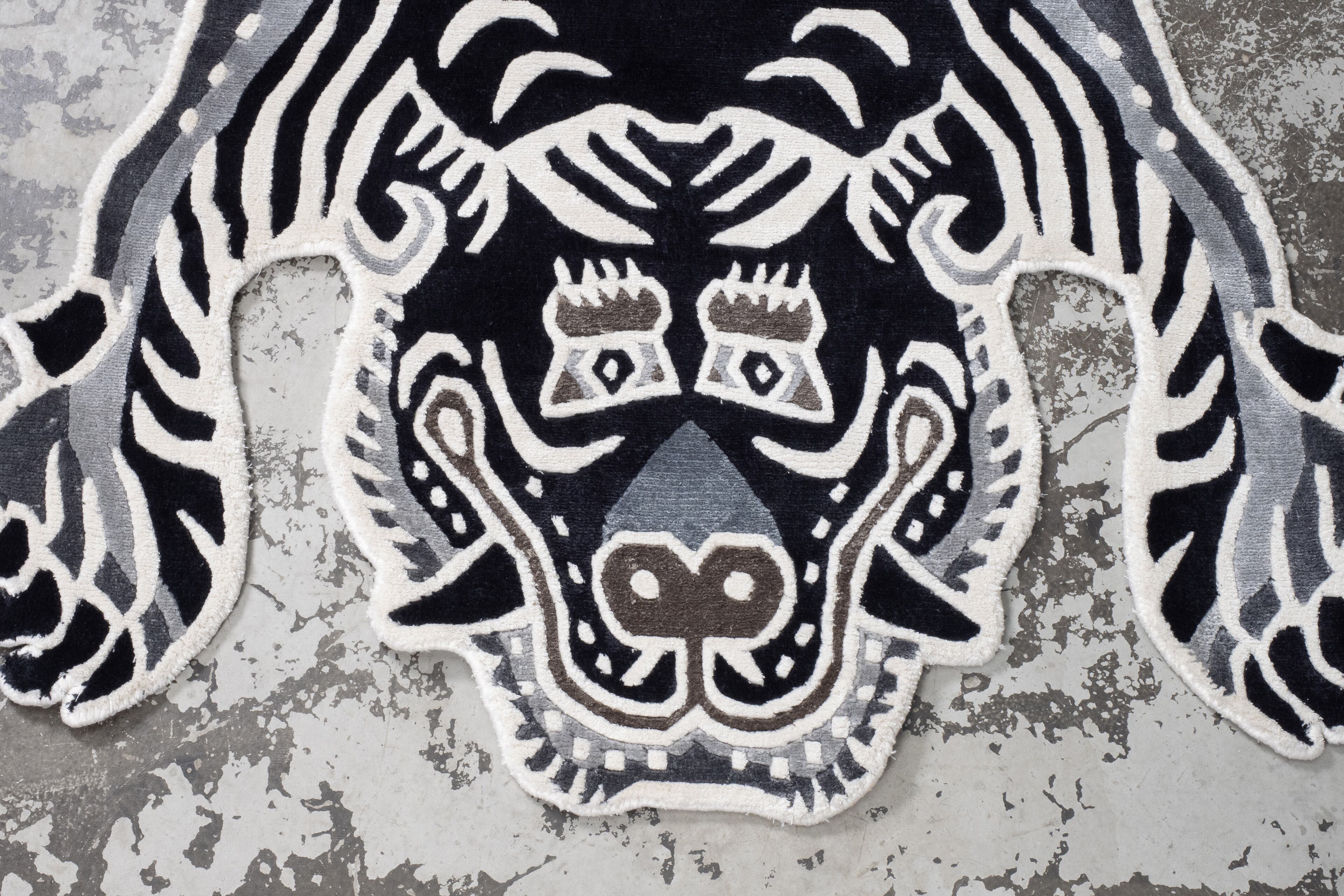 Tibetan Tiger Rug 《Mサイズ•シルク•オリジナル•モノクロバージョン060》チベタンタイガーラグ