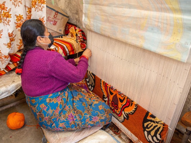 ネパールで絨毯職人が約1ヶ月かけ織りあげています。
