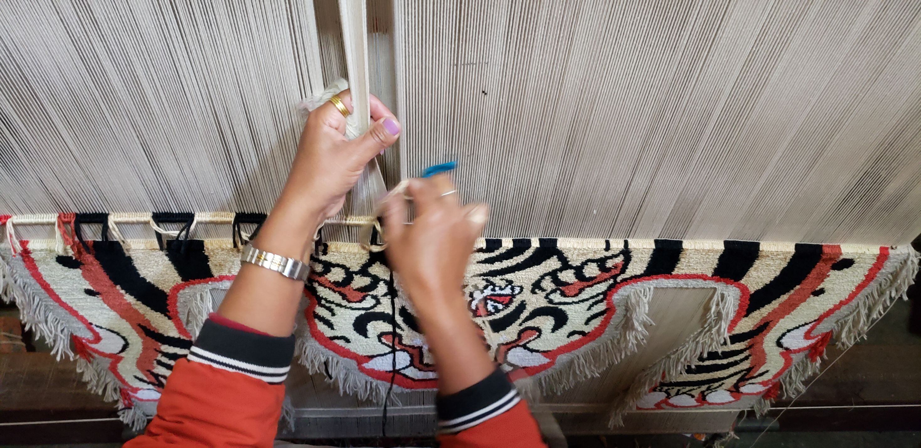 ネパールで絨毯職人が約1ヶ月かけ織りあげています。