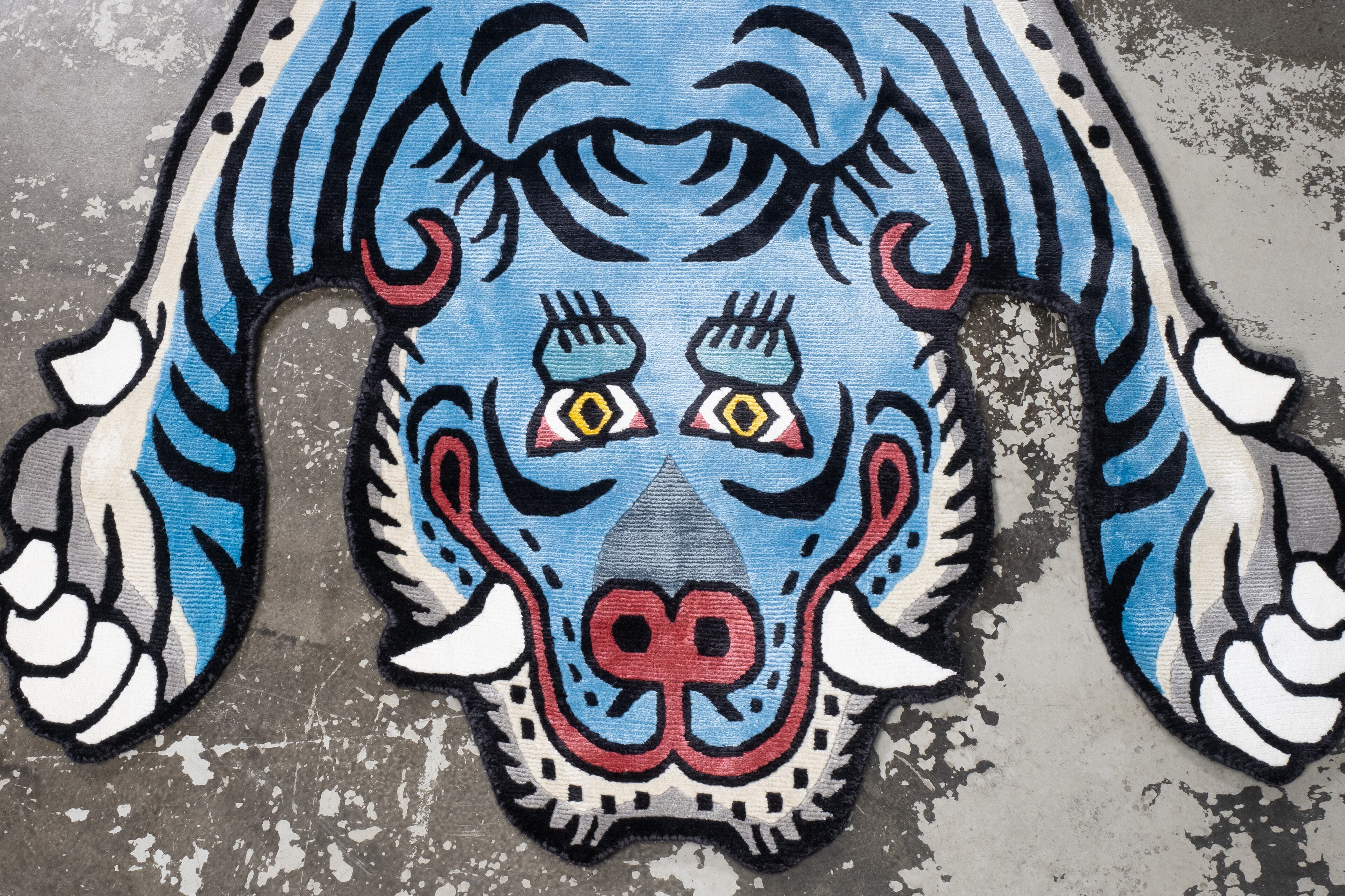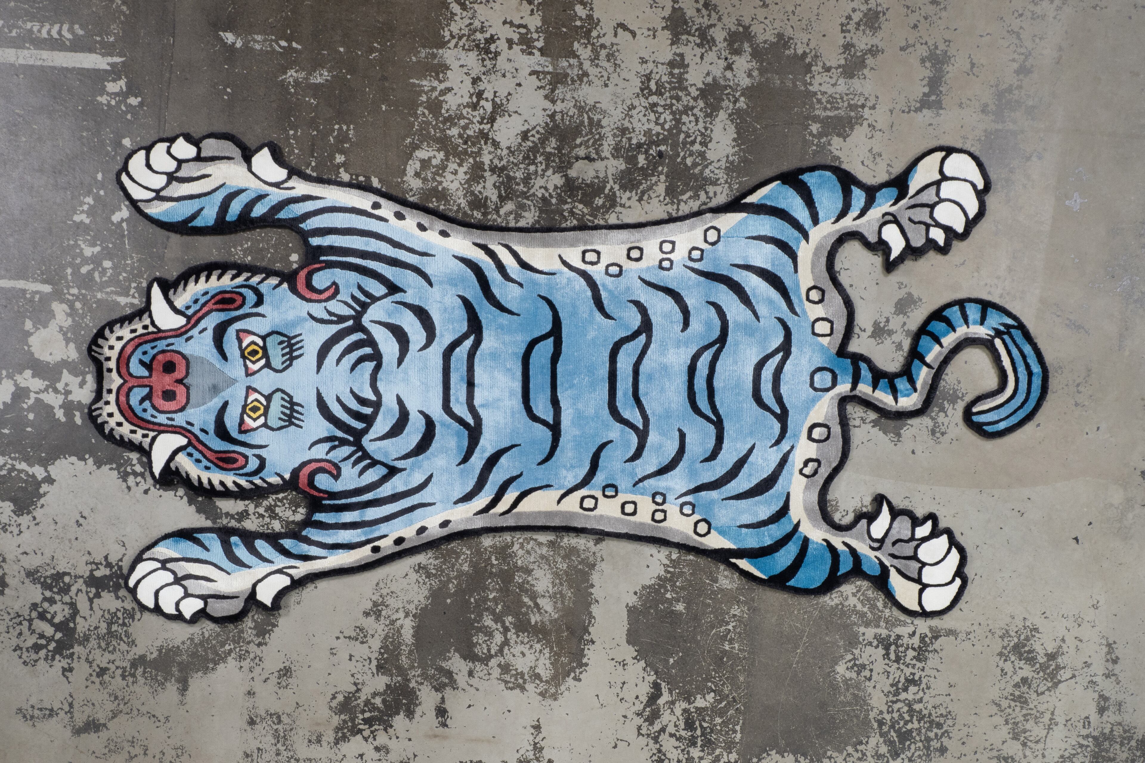 Tibetan Tiger Rug 《Lサイズ•シルク•オリジナル•ブルーバージョン047》チベタンタイガーラグ