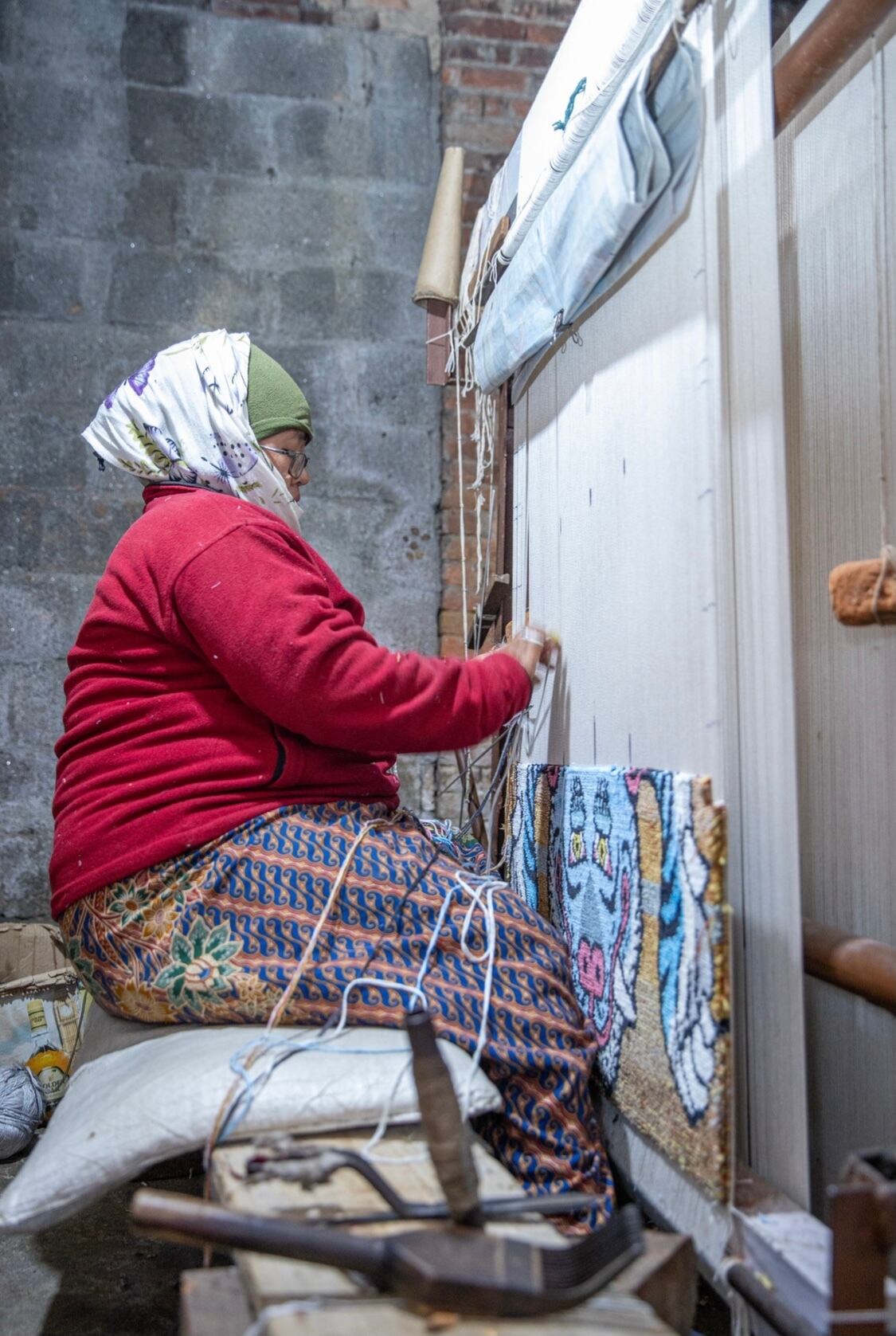 ネパールで絨毯職人が約1ヶ月かけ織りあげています。