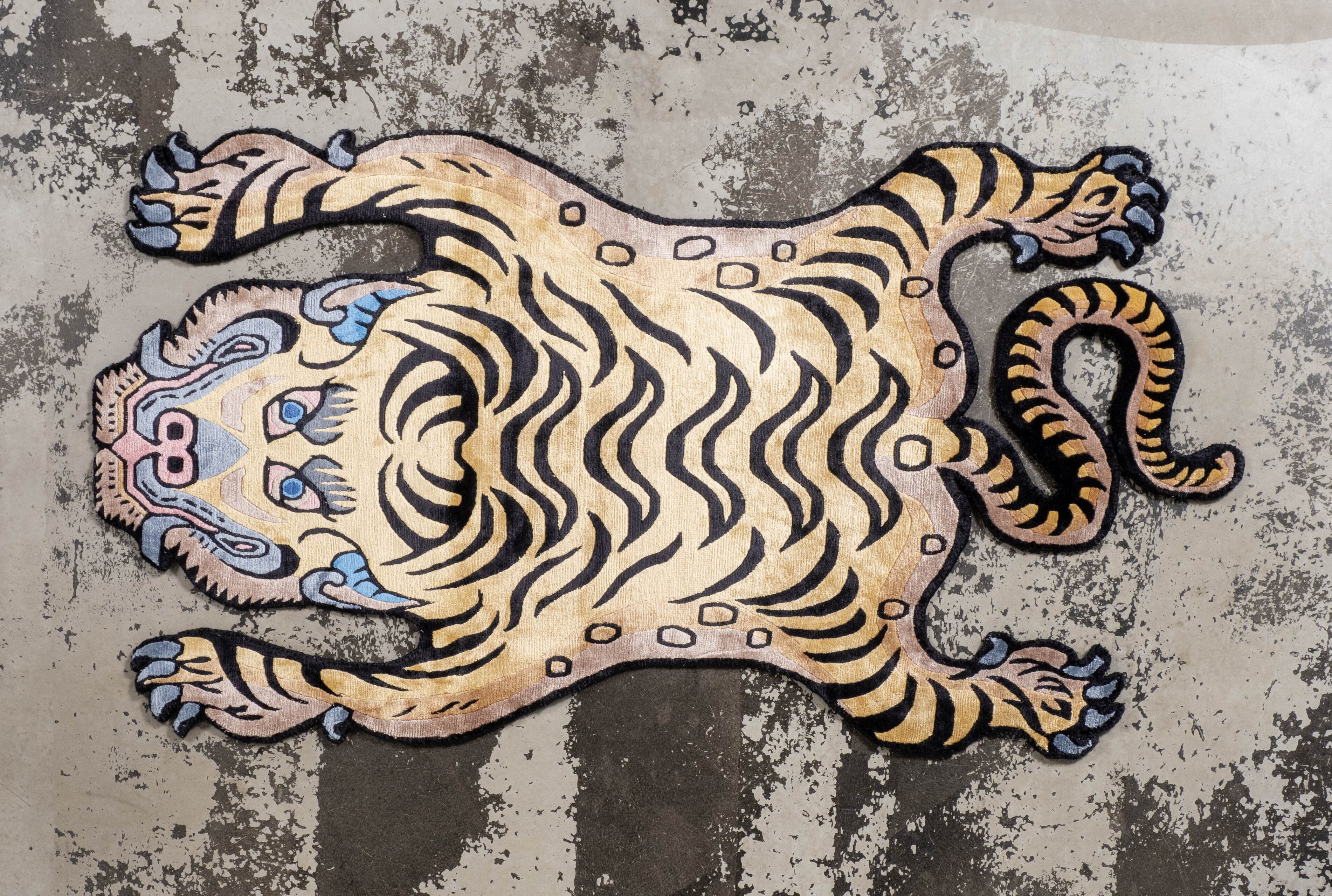 Tibetan Tiger Rug 《Mサイズ•シルク・シャンパンゴールド071》チベタンタイガーラグ