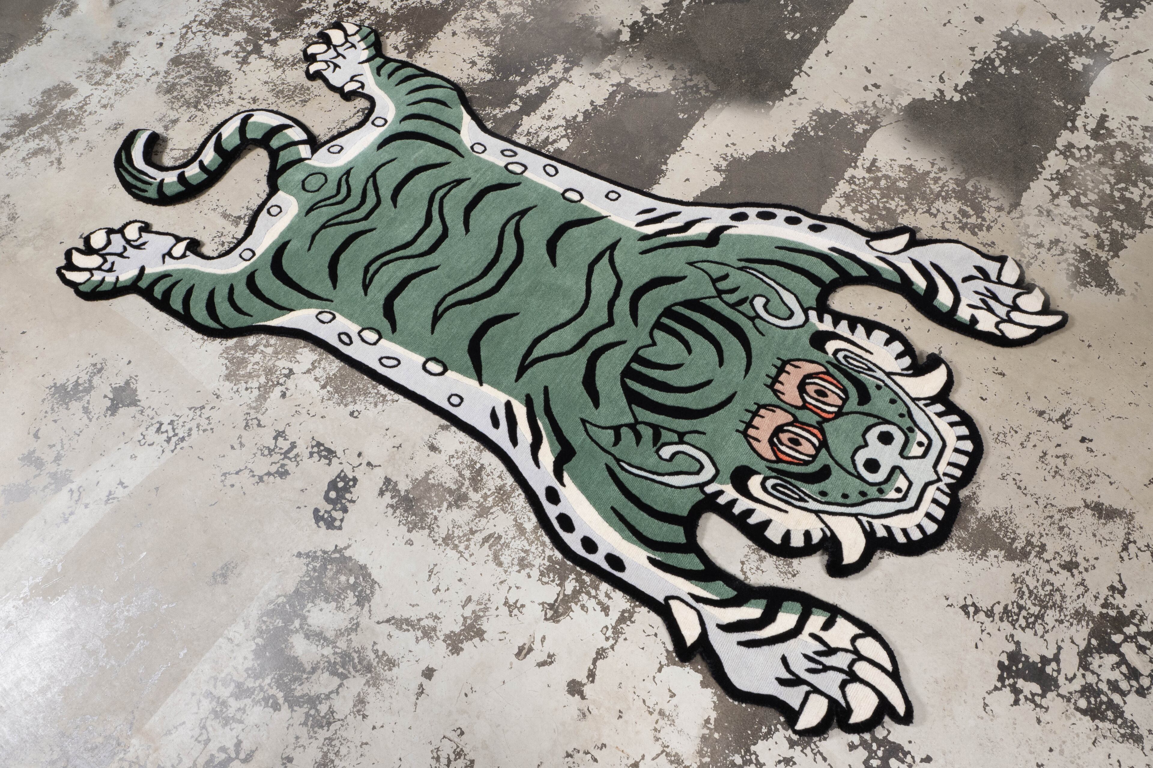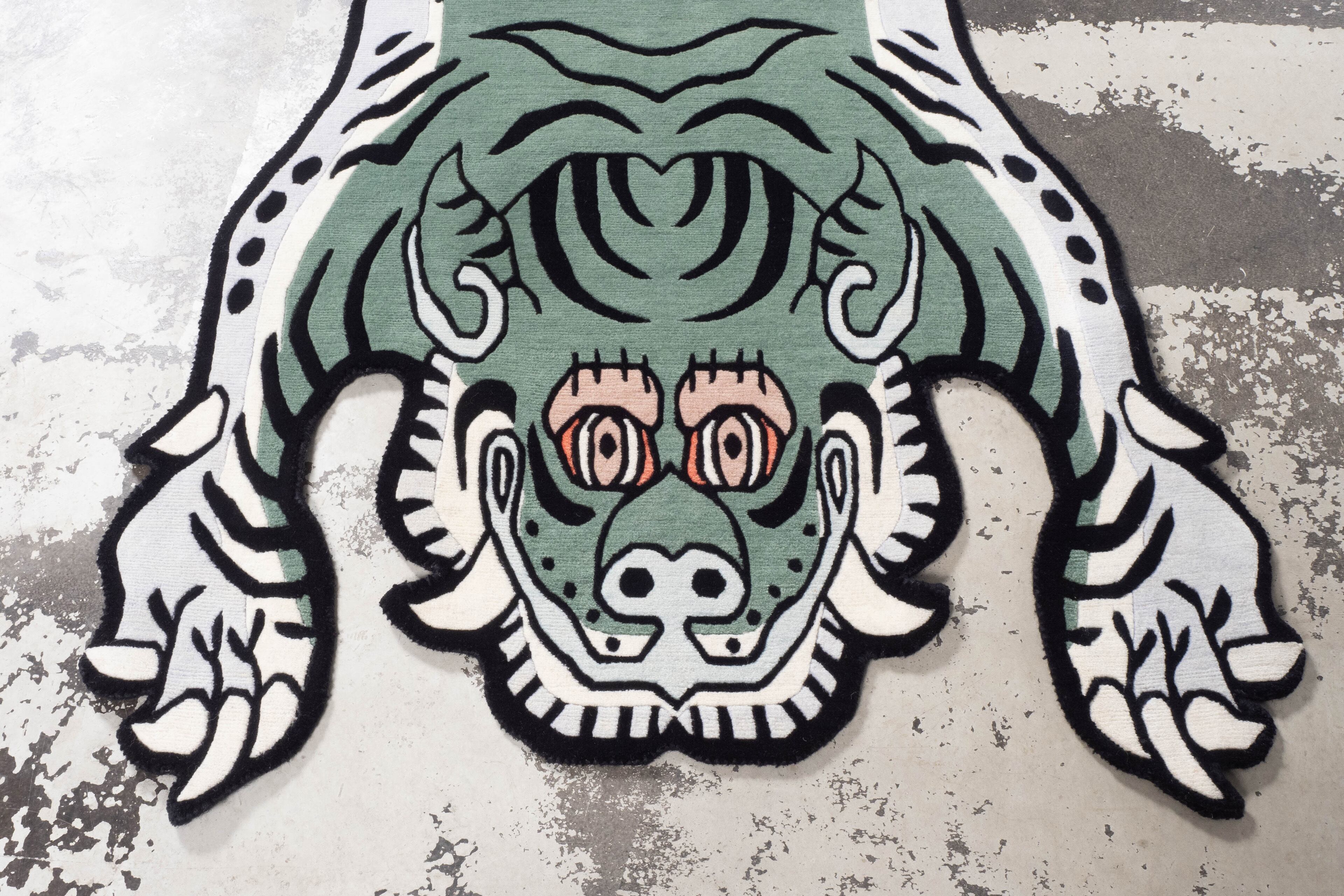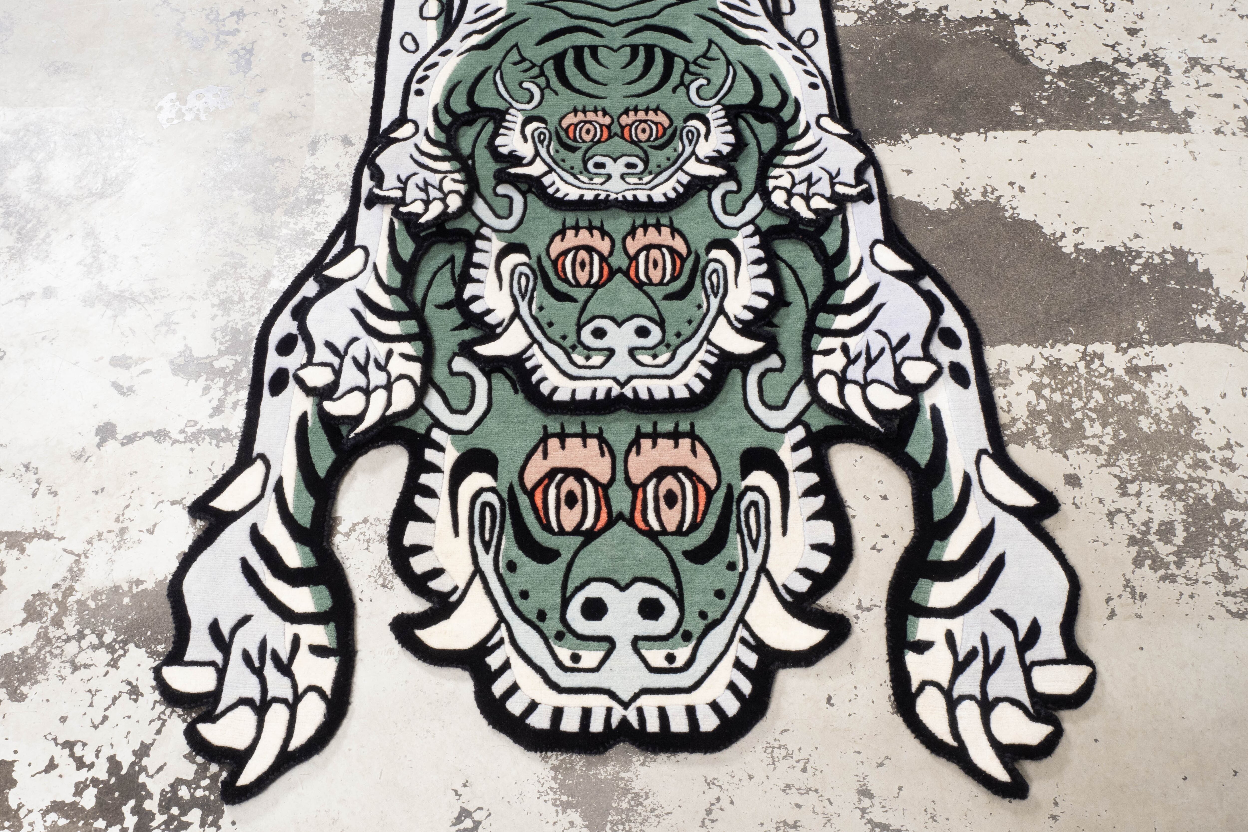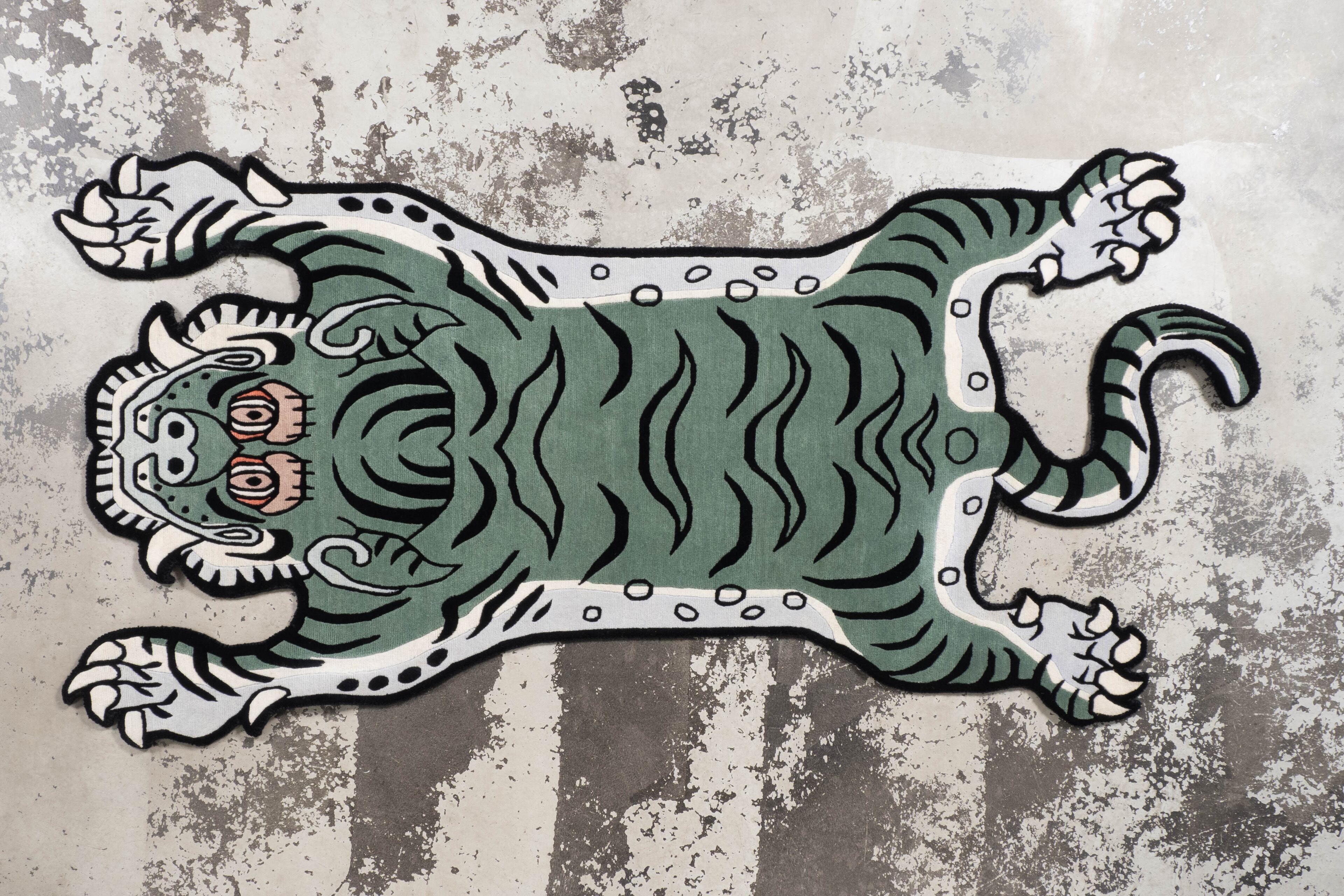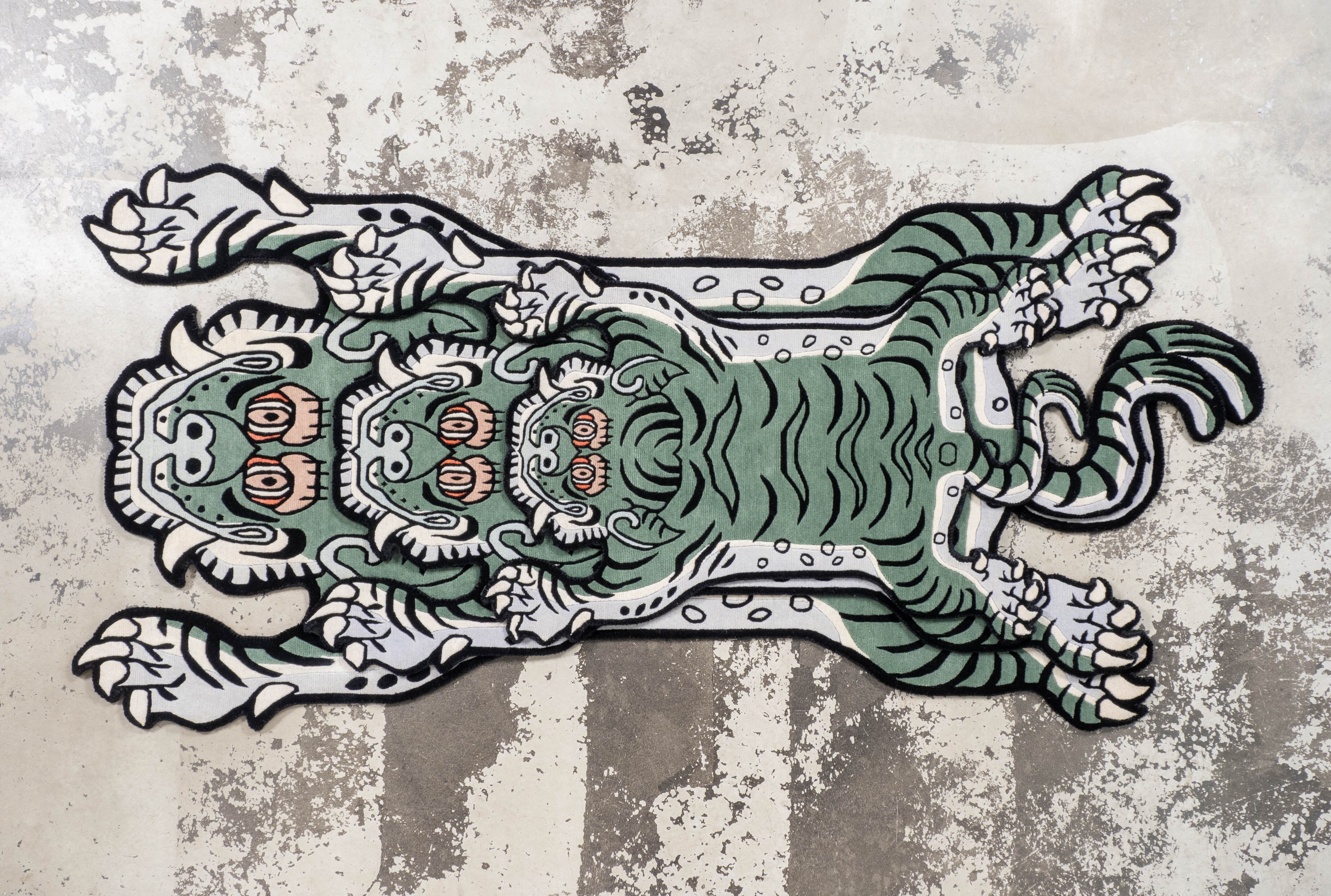 Tibetan Tiger Rug 《Lサイズ•ウール・オリジナル2・フォレストグリーン089》チベタンタイガーラグ