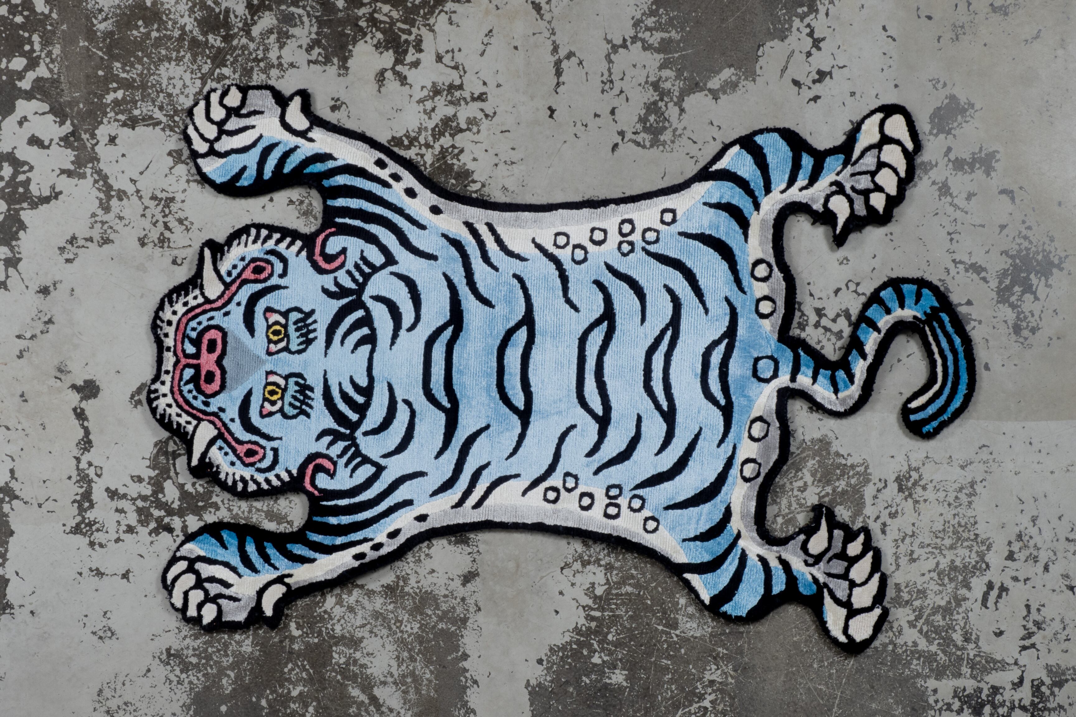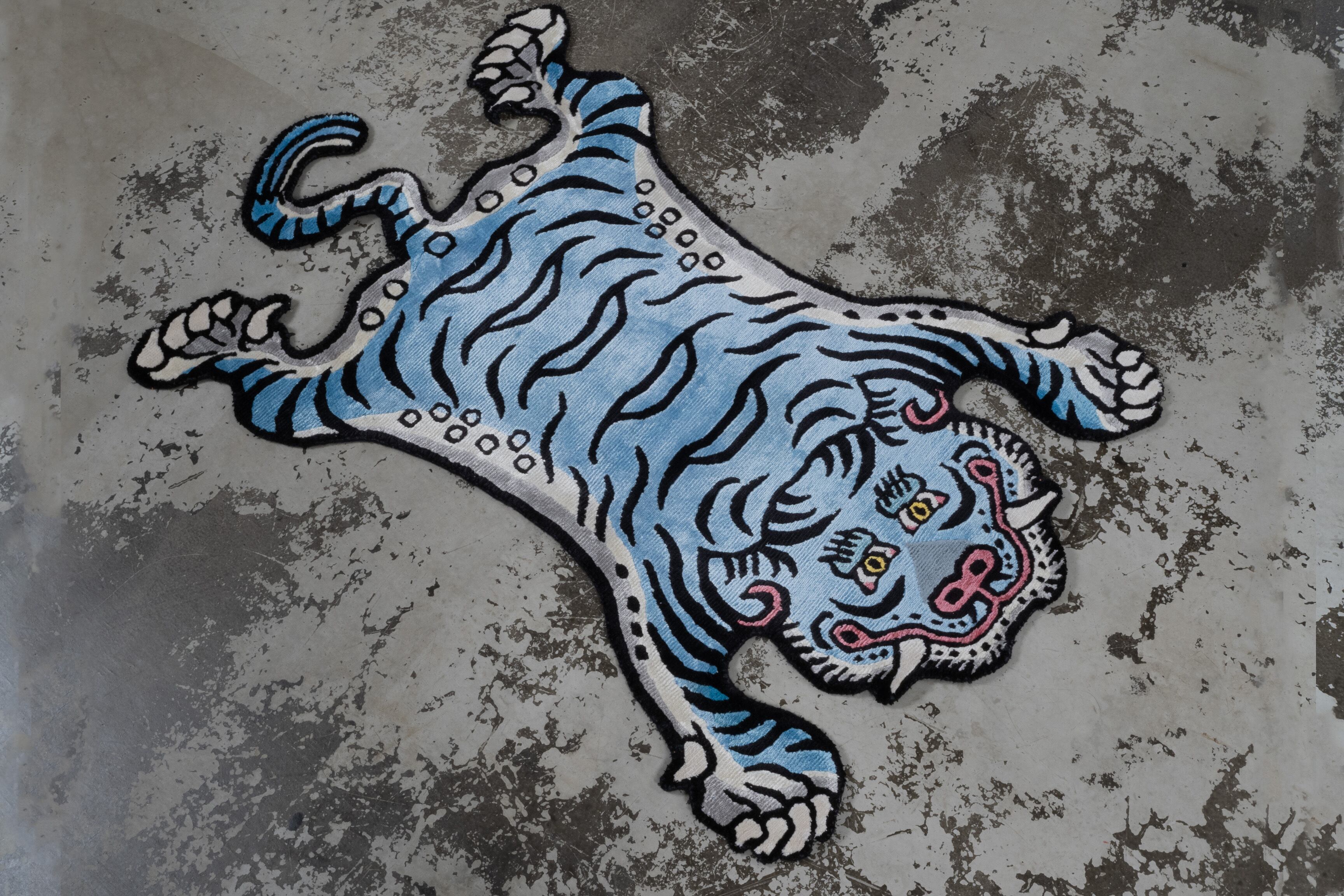 Tibetan Tiger Rug 《Sサイズ•シルク・オリジナル1•ブルーバージョン099》チベタンタイガーラグ