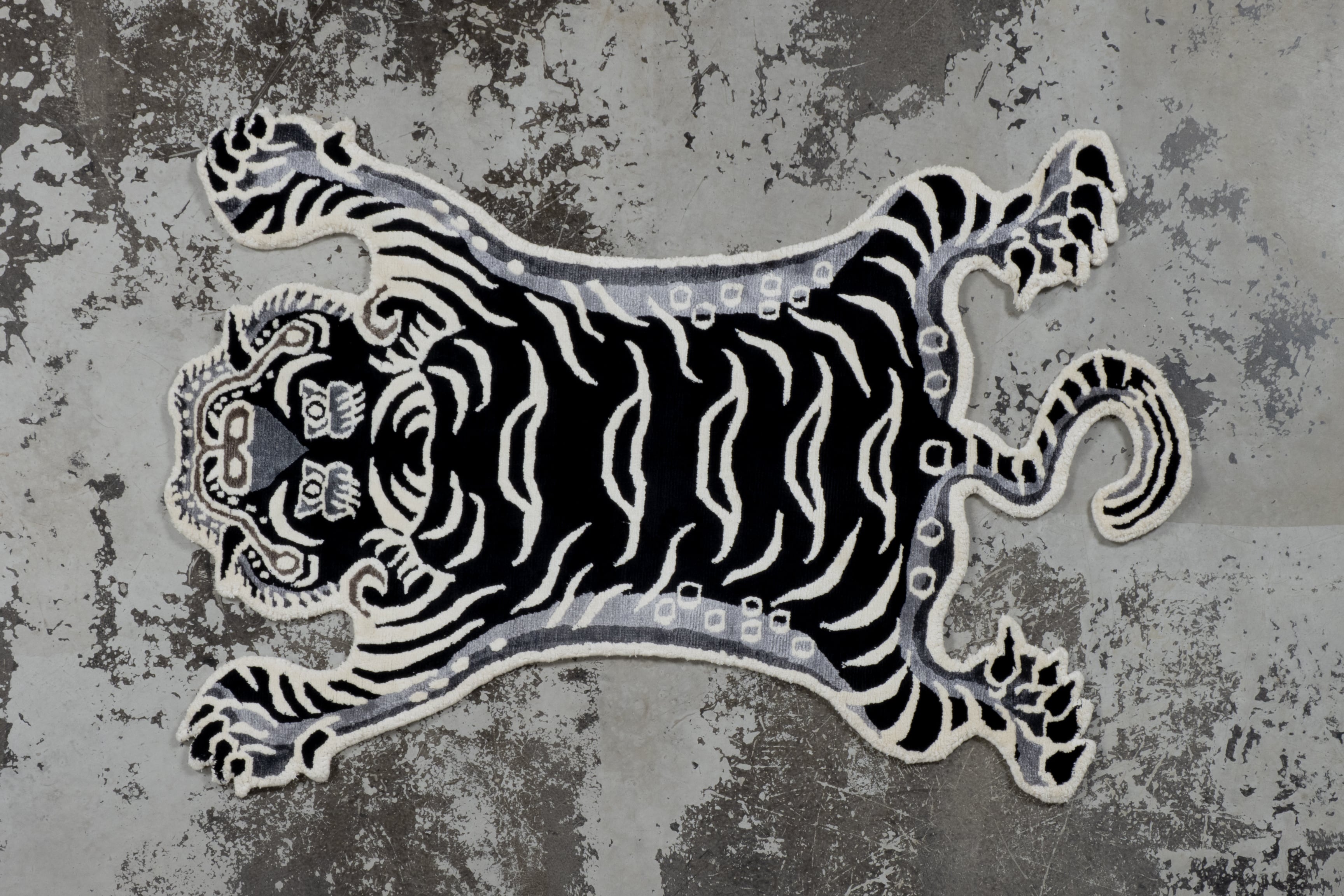 Tibetan Tiger Rug 《Sサイズ•シルク・オリジナル1•モノクロバージョン100》チベタンタイガーラグ