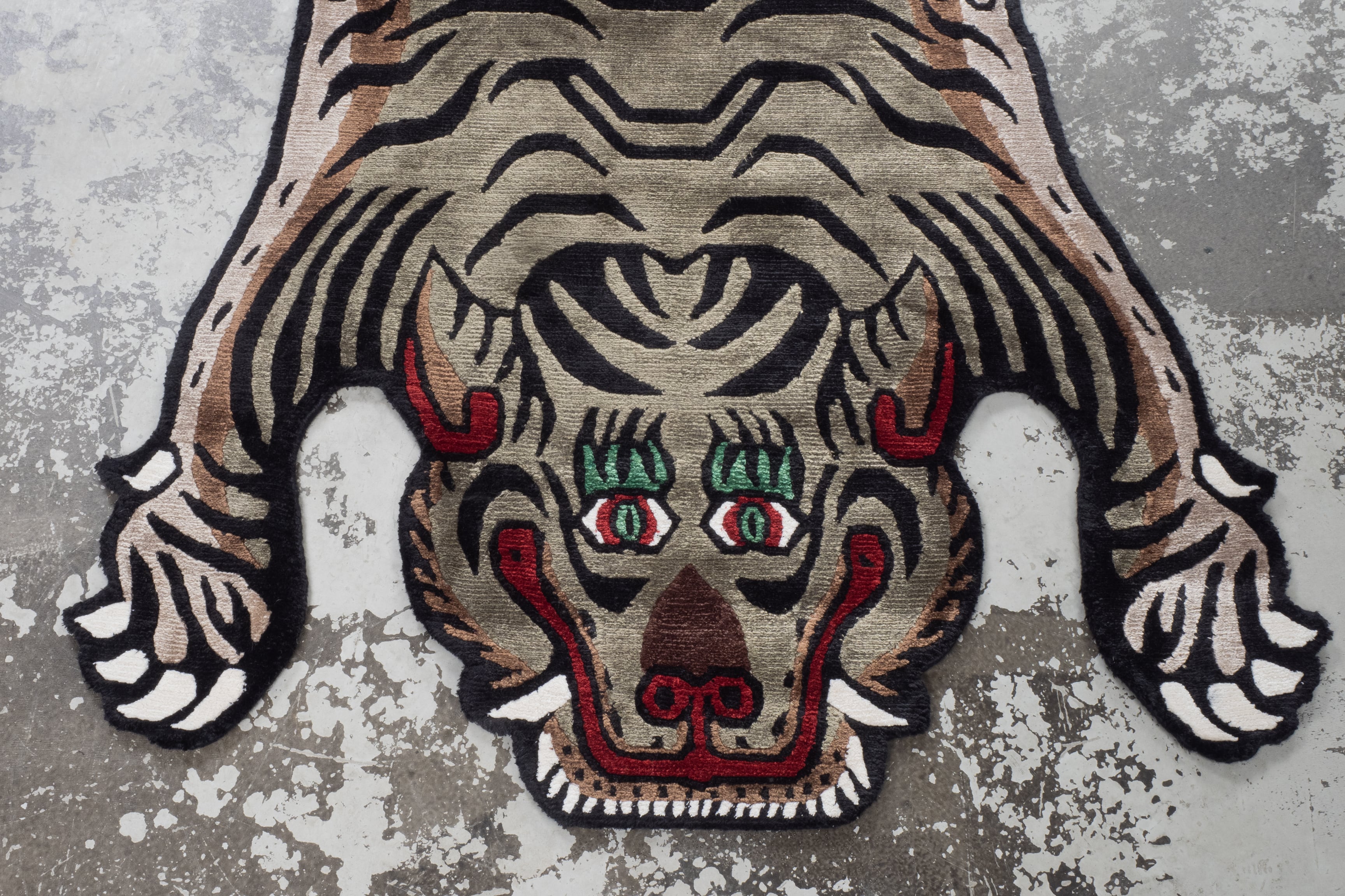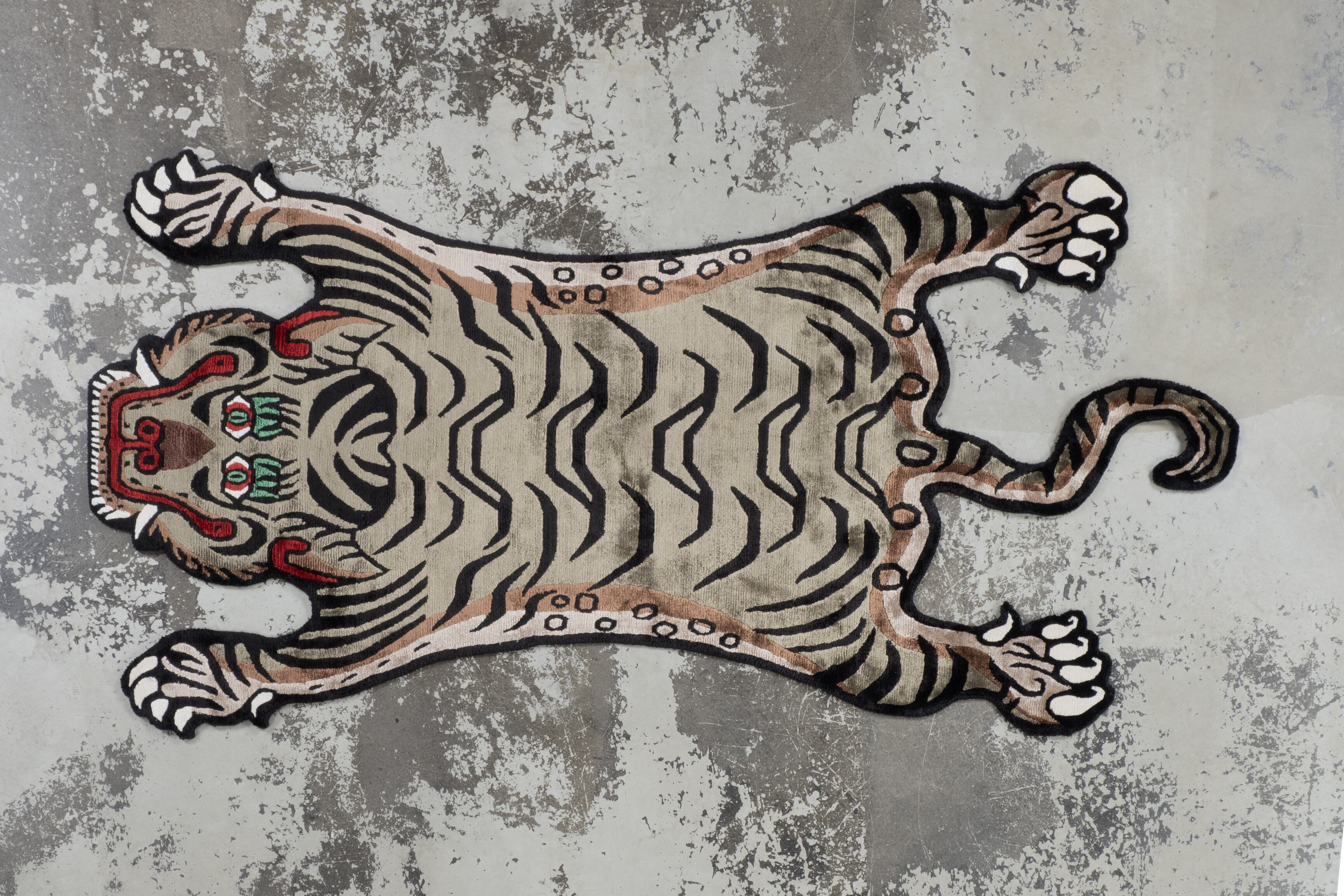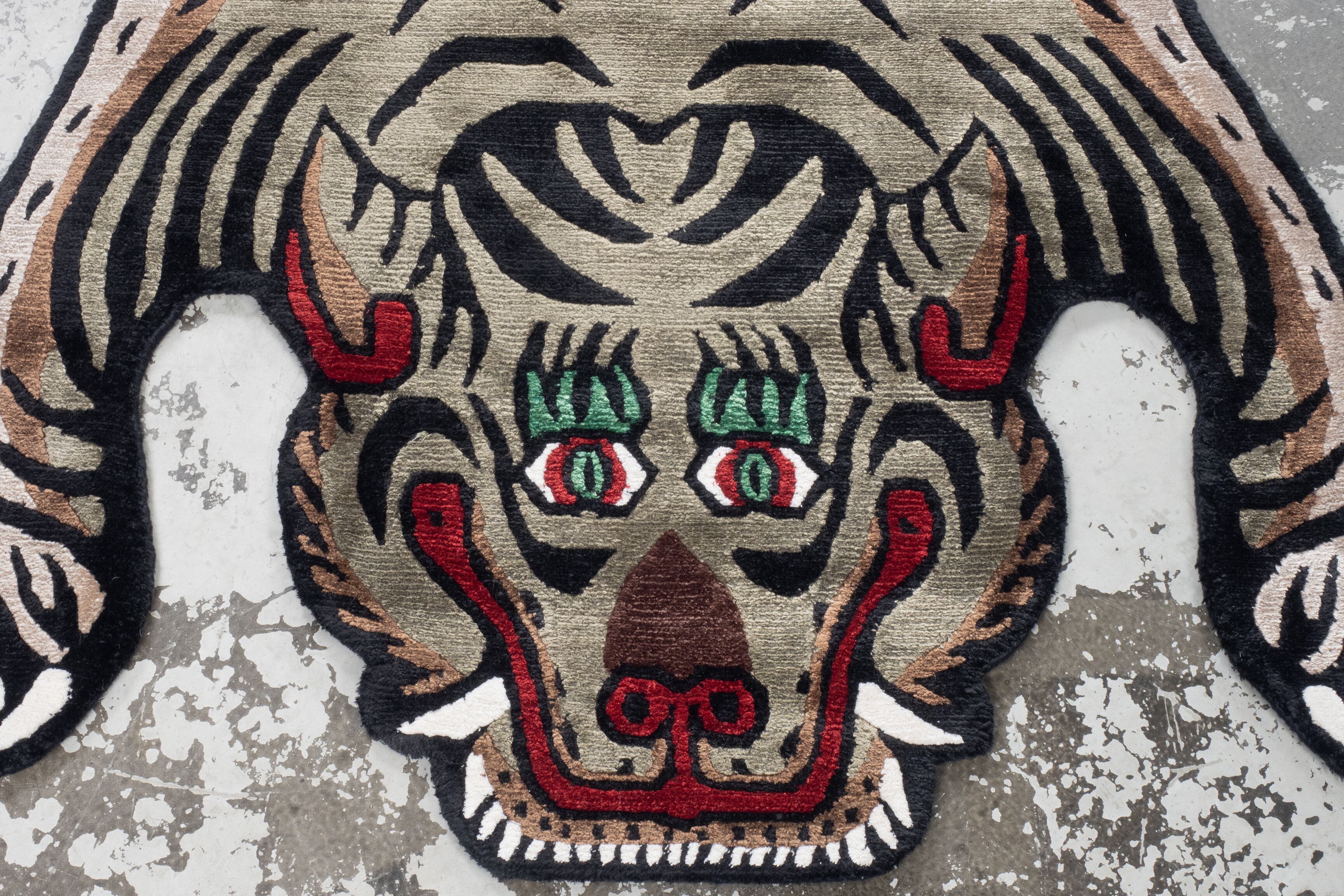 Tibetan Tiger Rug 《Mサイズ•シルク・グレー075》チベタンタイガーラグ
