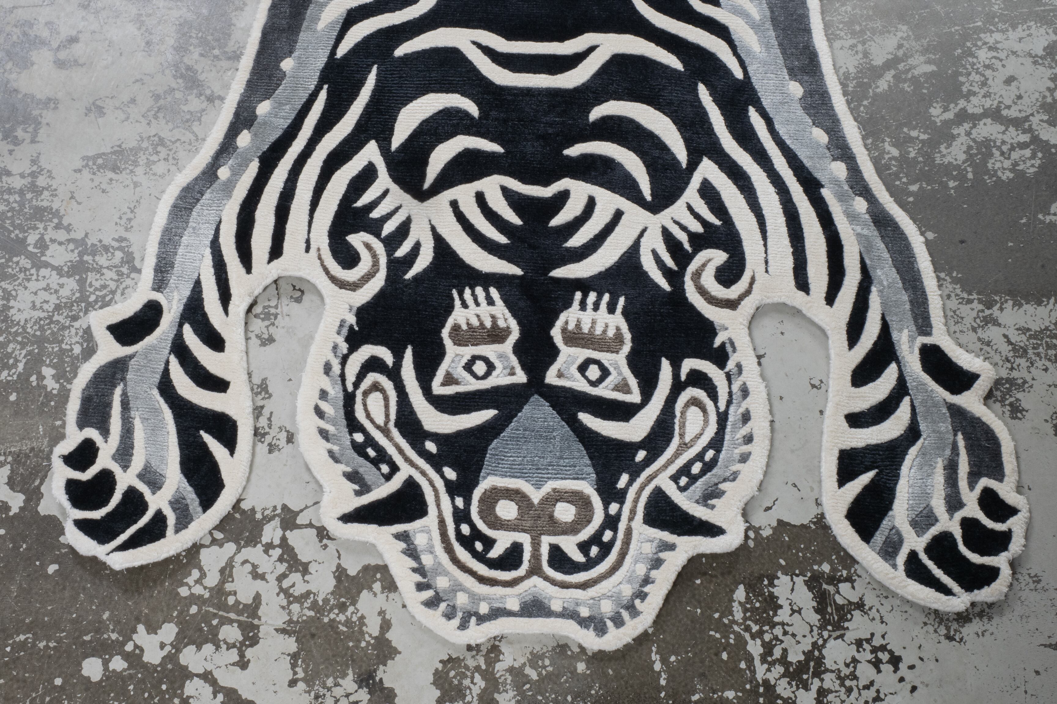 Tibetan Tiger Rug 《Mサイズ•シルク•オリジナル•モノクロバージョン079》チベタンタイガーラグ