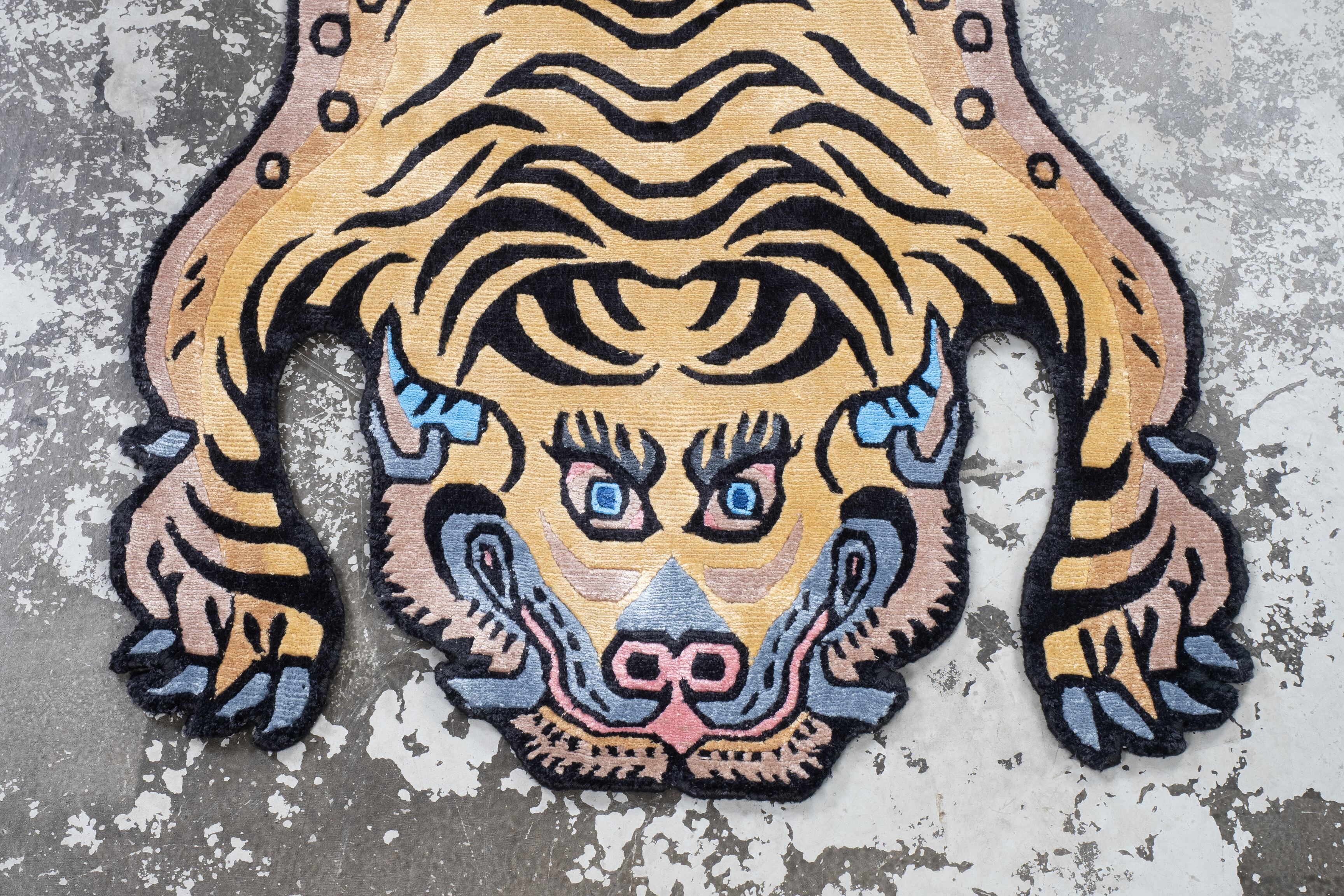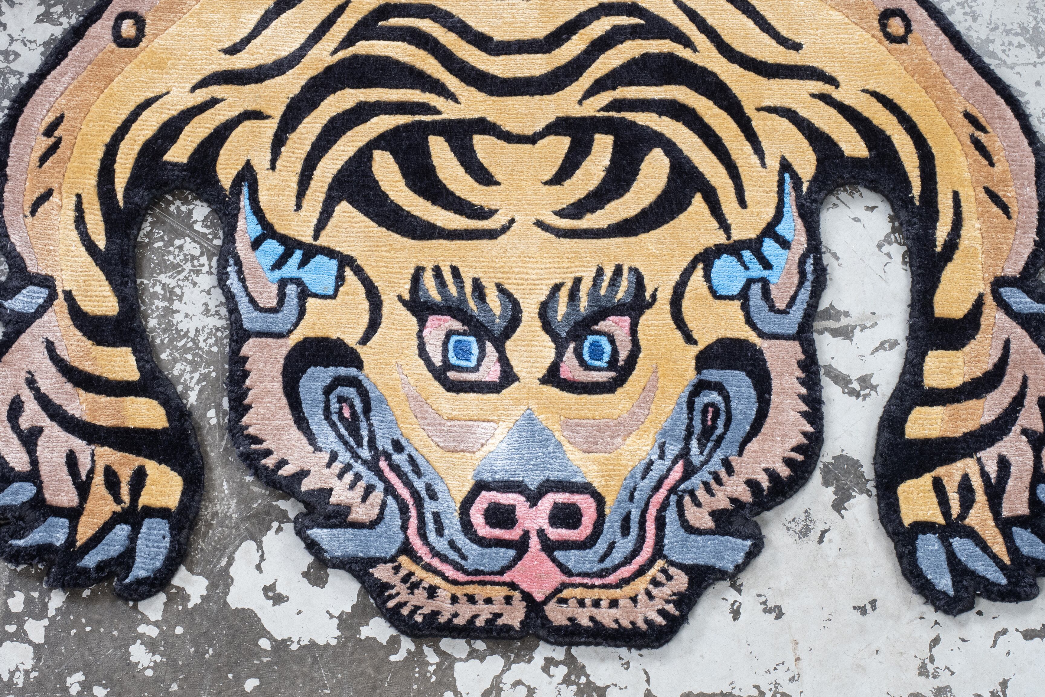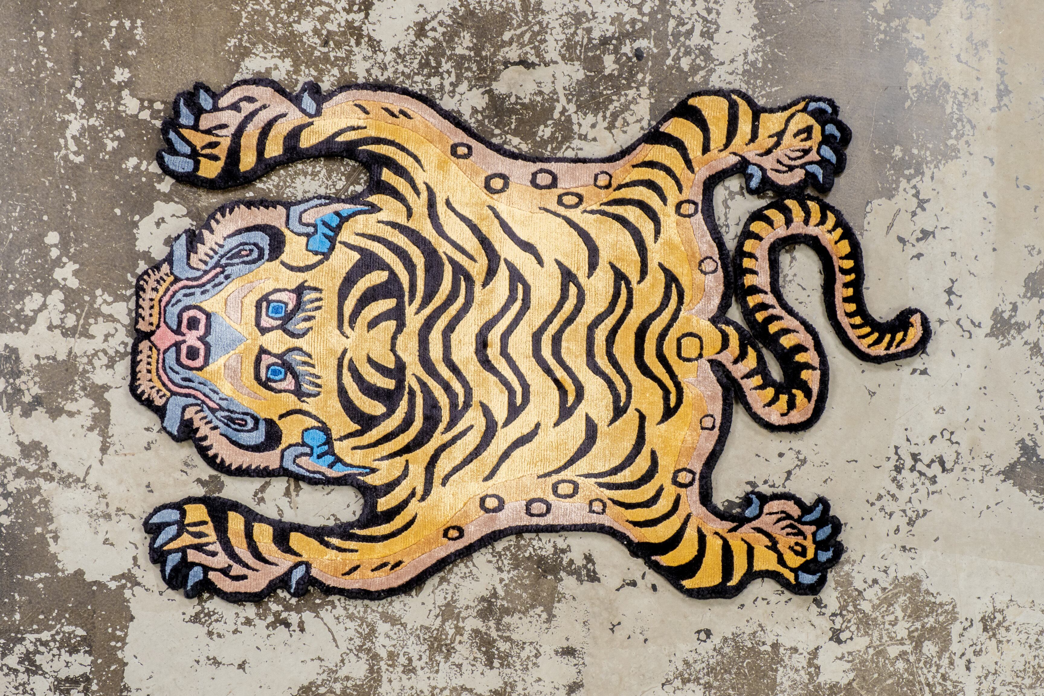 Tibetan Tiger Rug 《Sサイズ•シルク・シャンパンゴールド121》チベタンタイガーラグ