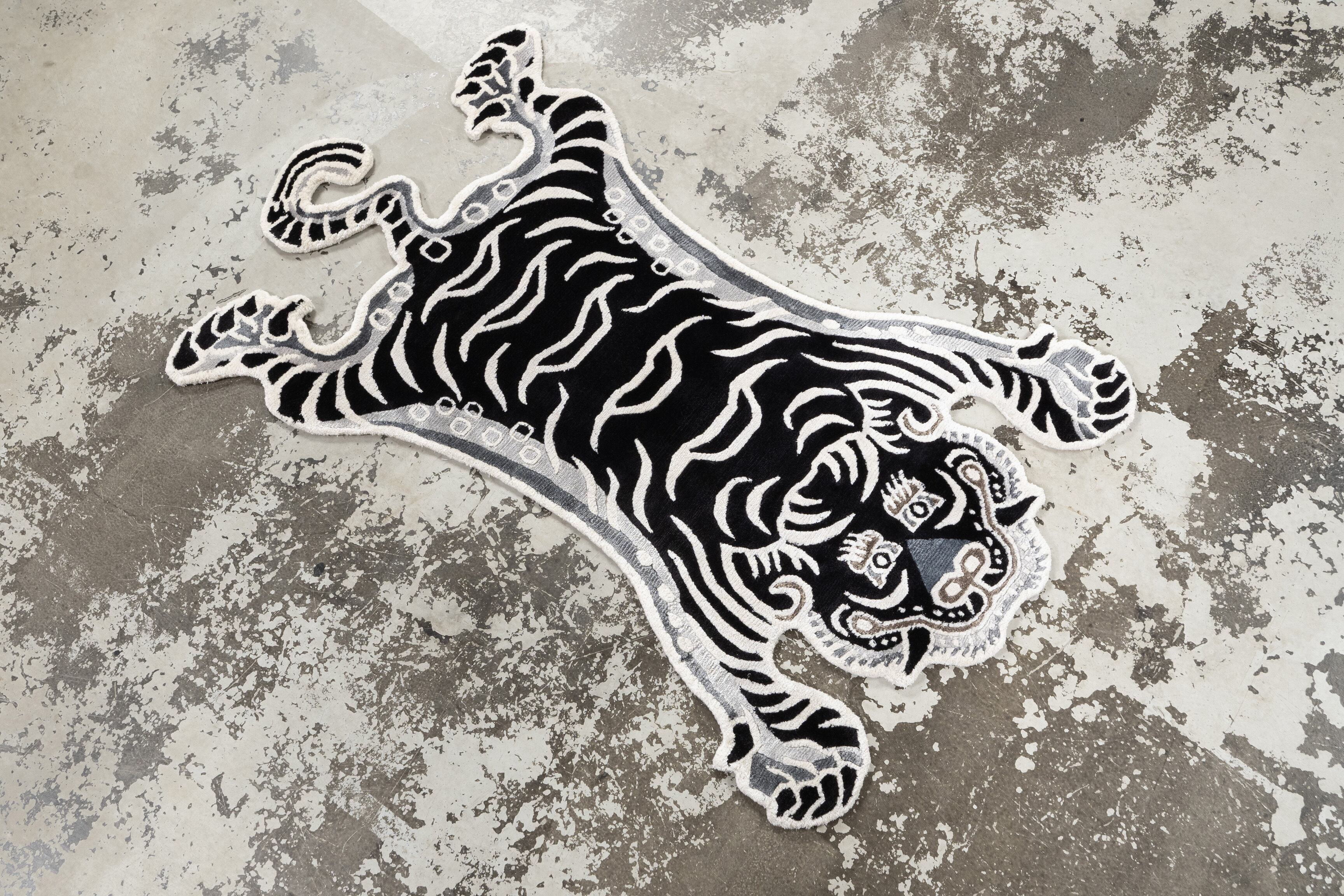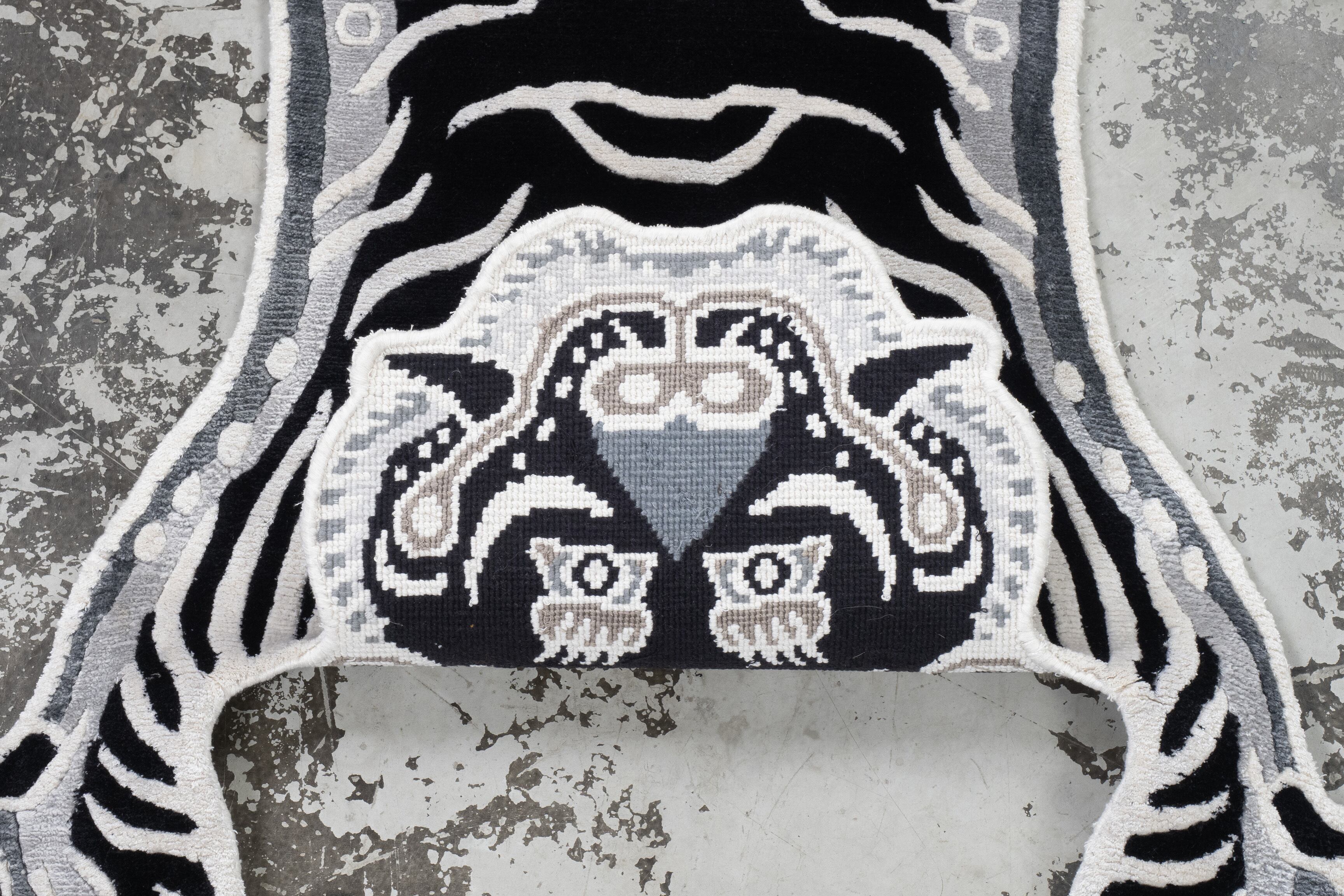 Tibetan Tiger Rug 《Sサイズ•シルク・オリジナル1•モノクロバージョン124》チベタンタイガーラグ