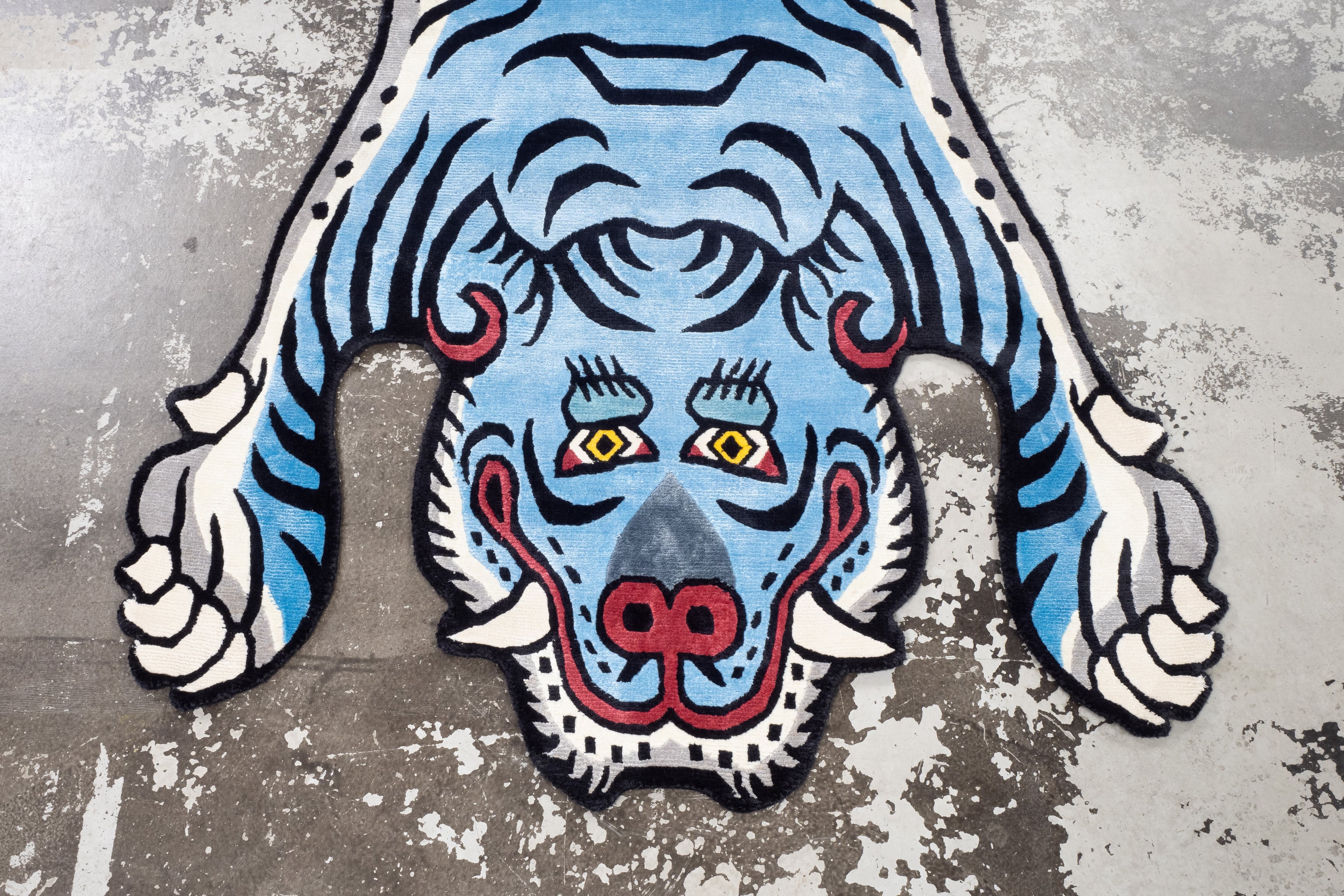 Tibetan Tiger Rug 《Lサイズ•シルク•オリジナル•ブルーバージョン077》チベタンタイガーラグ