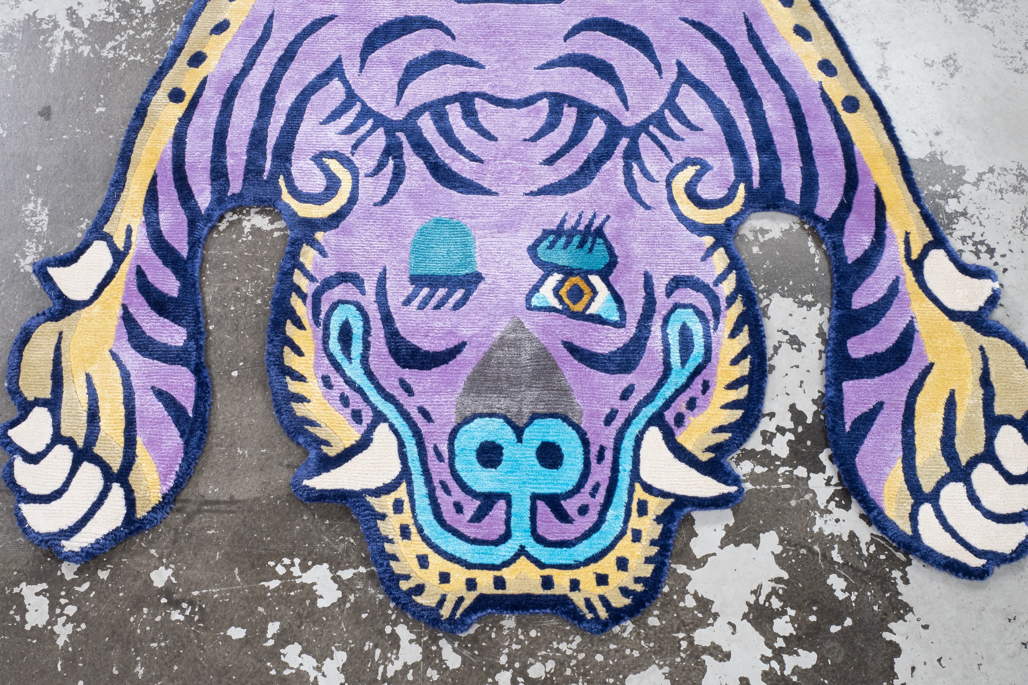 Tibetan Tiger Rug 《Lサイズ•シルク•オリジナル•パープルバージョン079》チベタンタイガーラグ