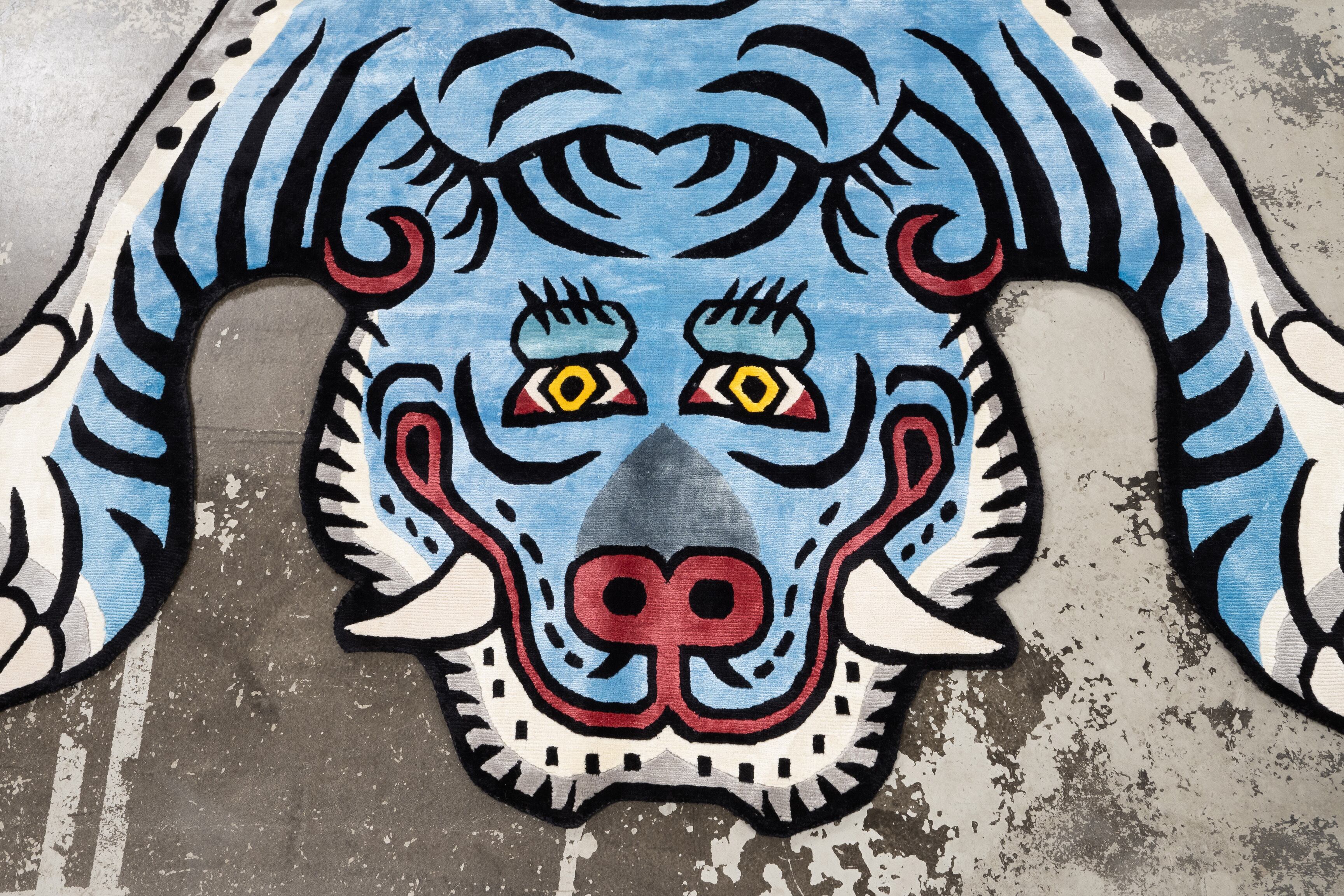 Tibetan Tiger Rug 《XXXLサイズ•シルク•オリジナル•ブルーバージョン002》チベタンタイガーラグ
