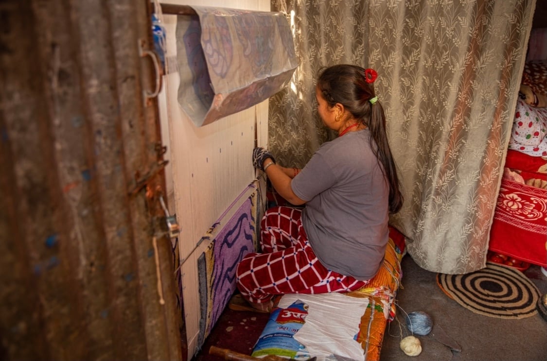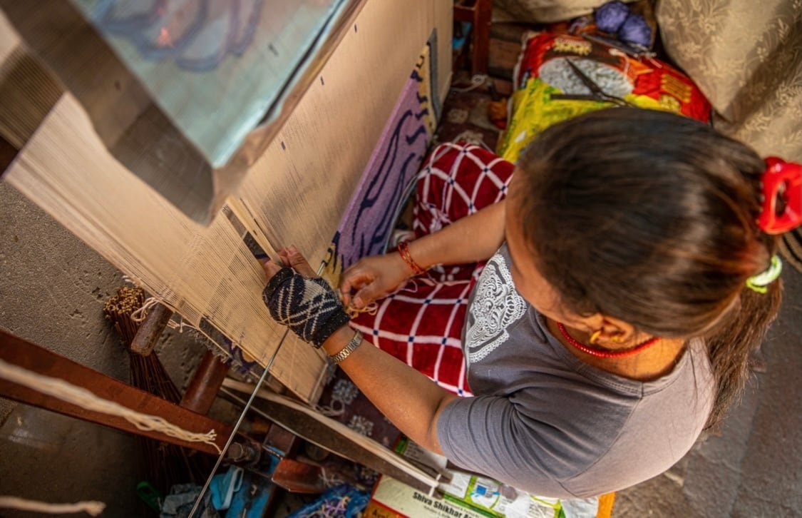 ネパールで絨毯職人が約1ヶ月かけ織りあげています。