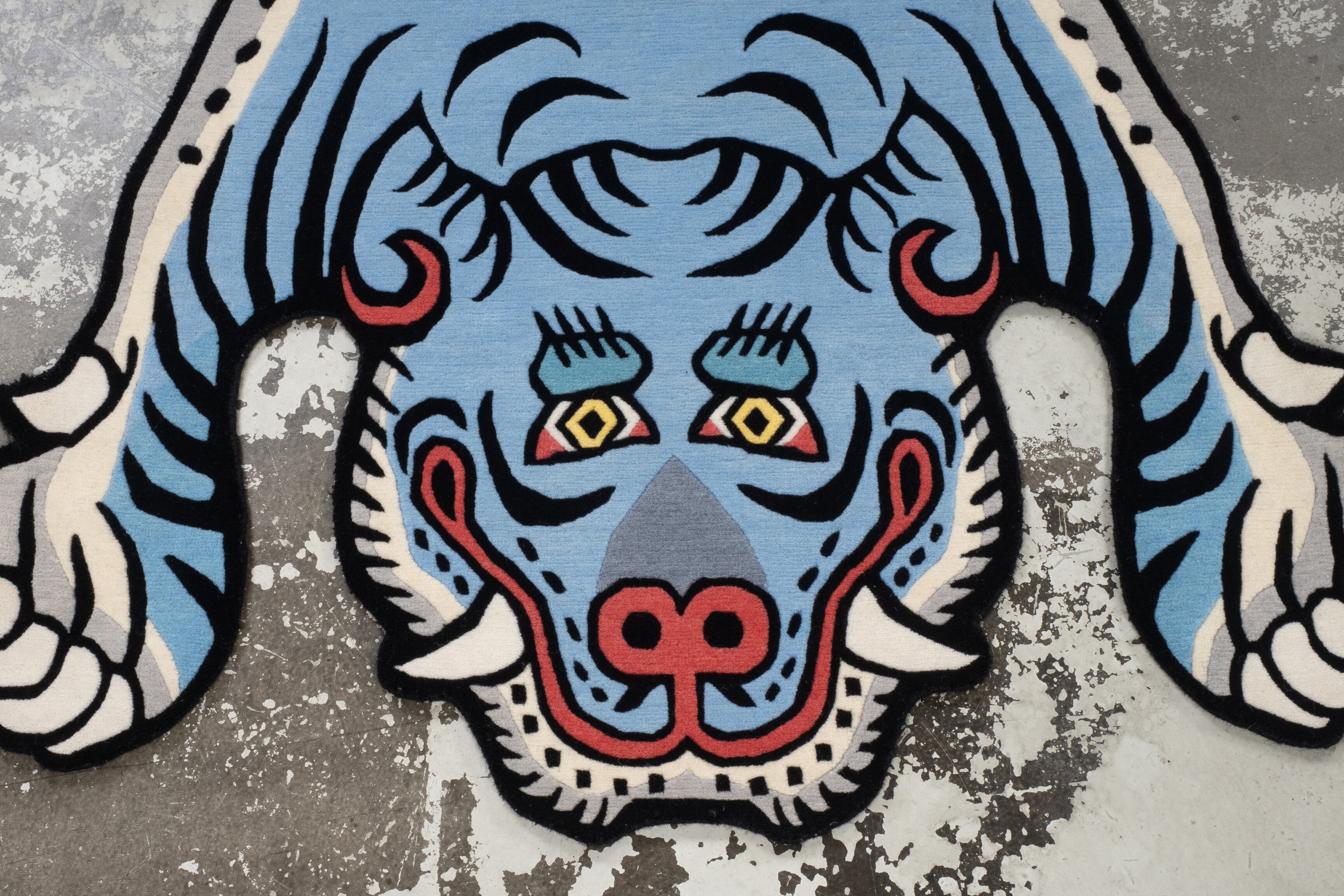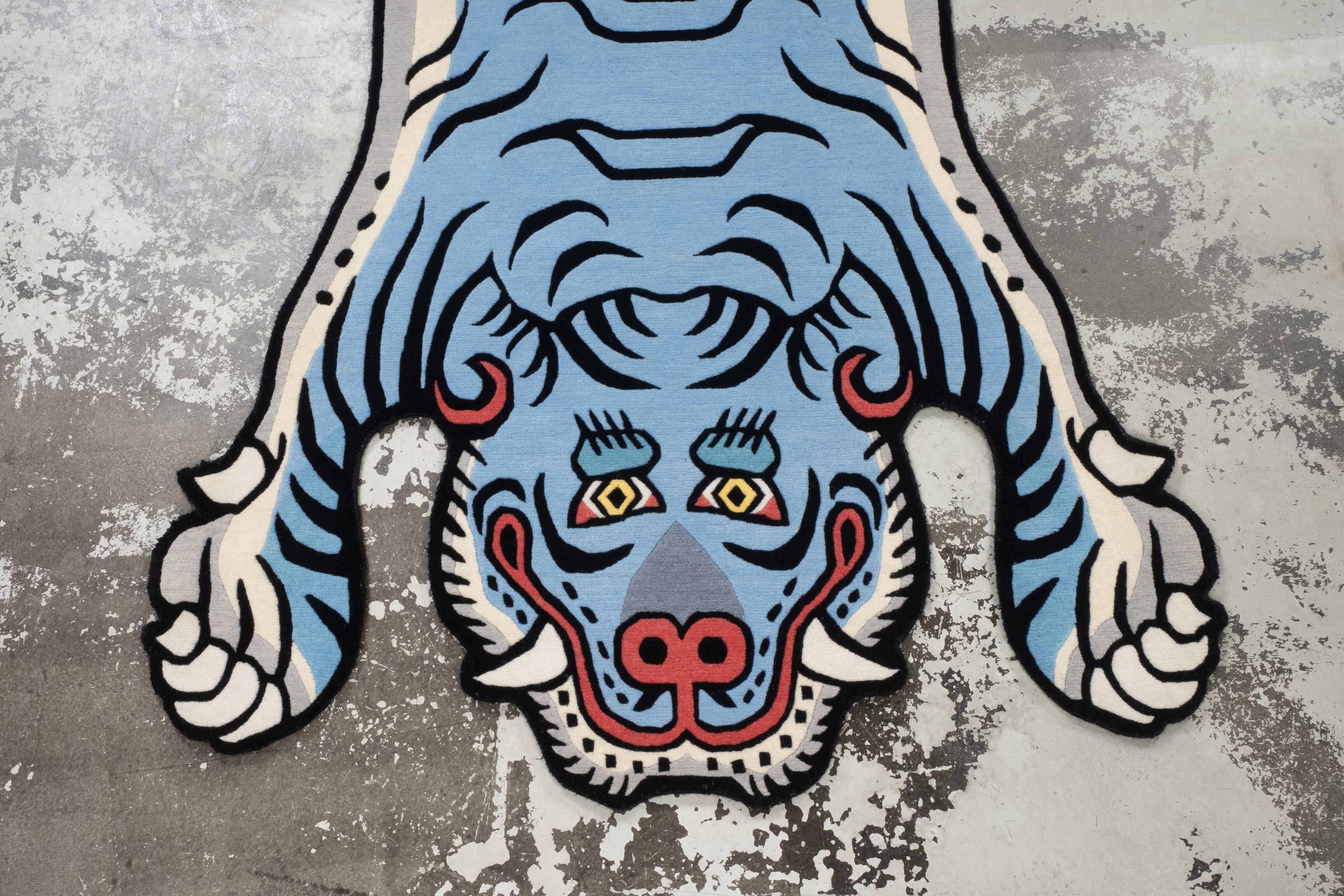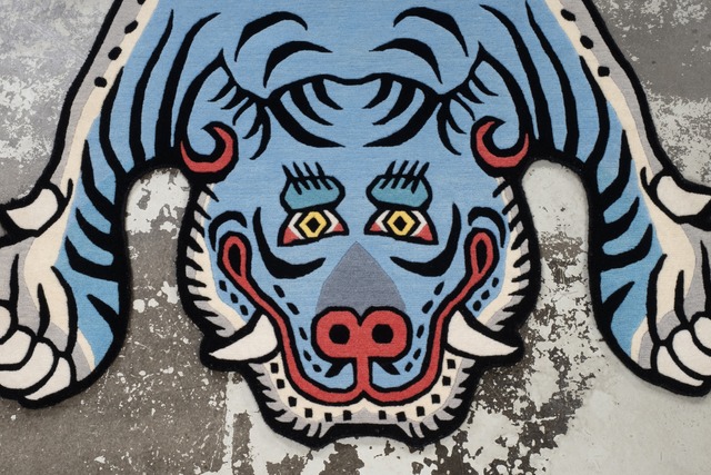 Tibetan Tiger Rug 《Lサイズ•ウール・オリジナル1•ブルー129》チベタンタイガーラグ
