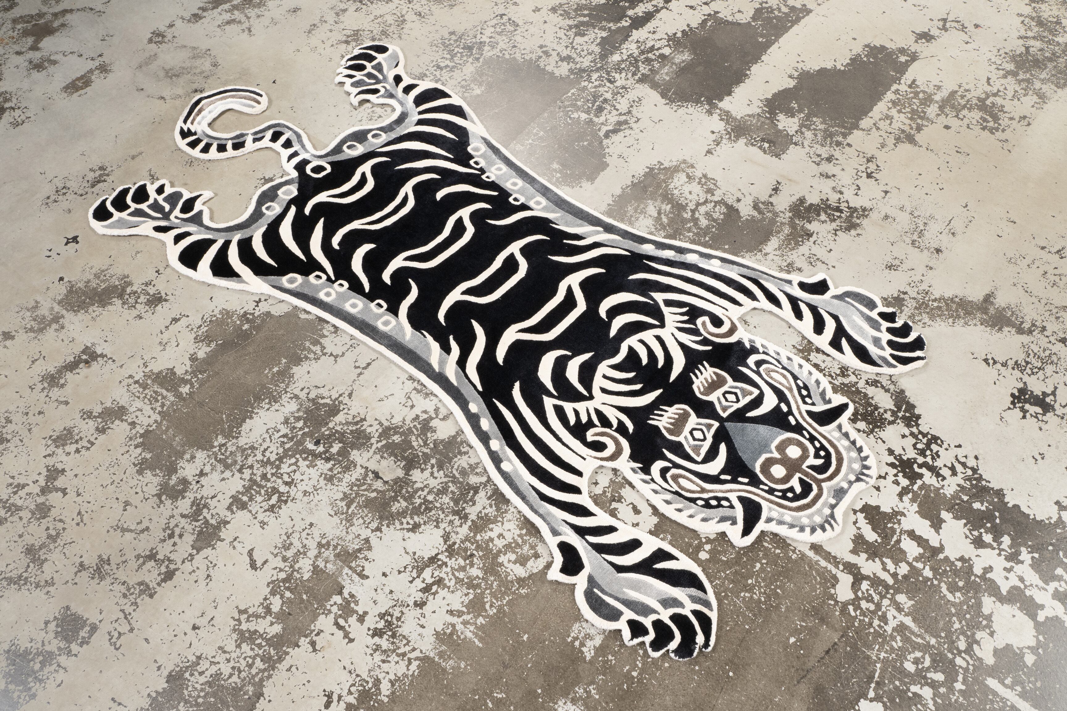Tibetan Tiger Rug 《Lサイズ•シルク•オリジナル1•モノクロ095》チベタンタイガーラグ