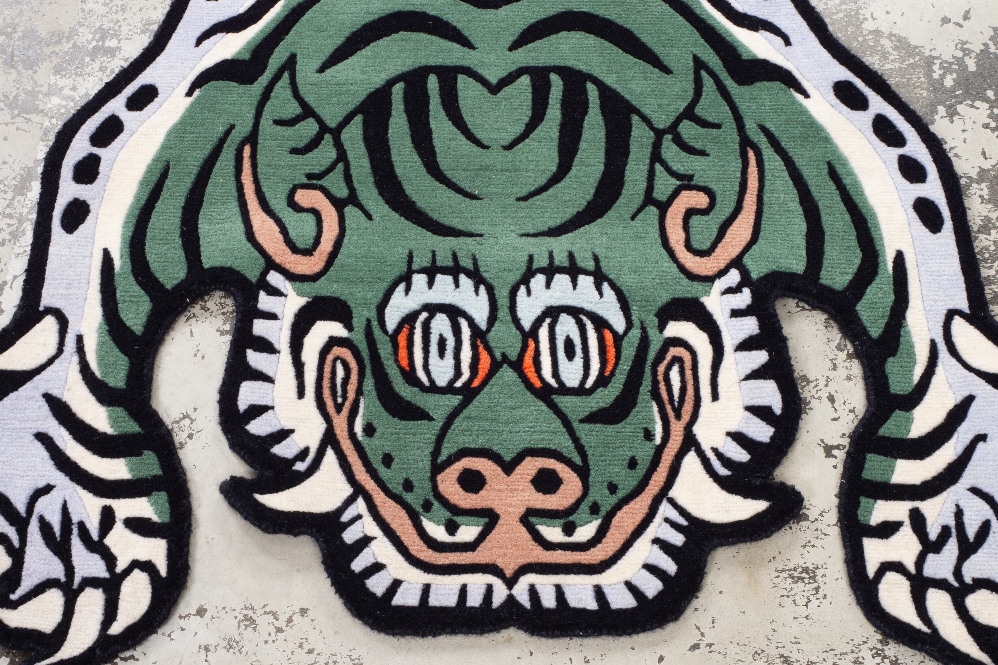 Tibetan Tiger Rug 《Mサイズ•ウール・オリジナル2・フォレストグリーン186》チベタンタイガーラグ