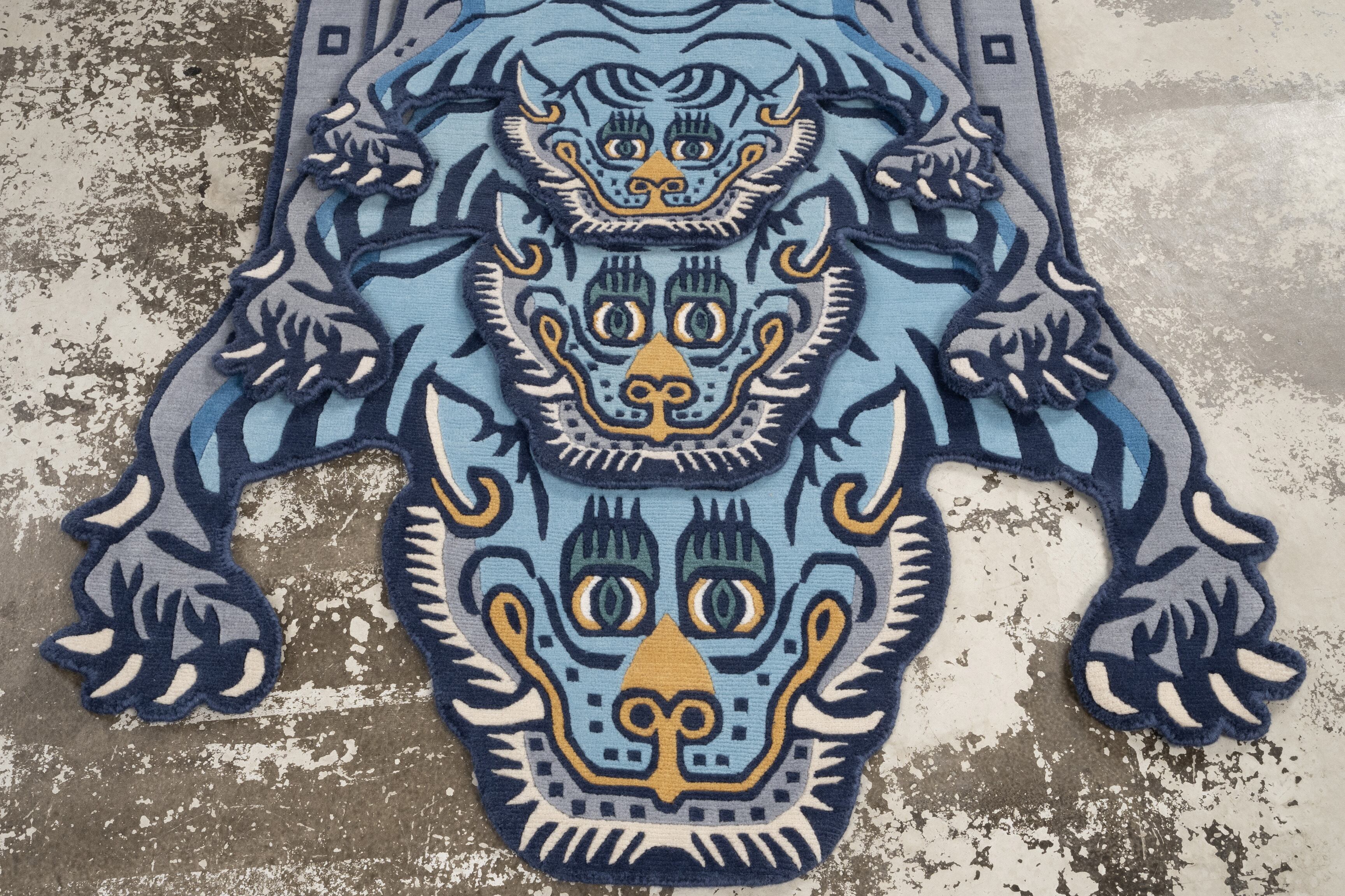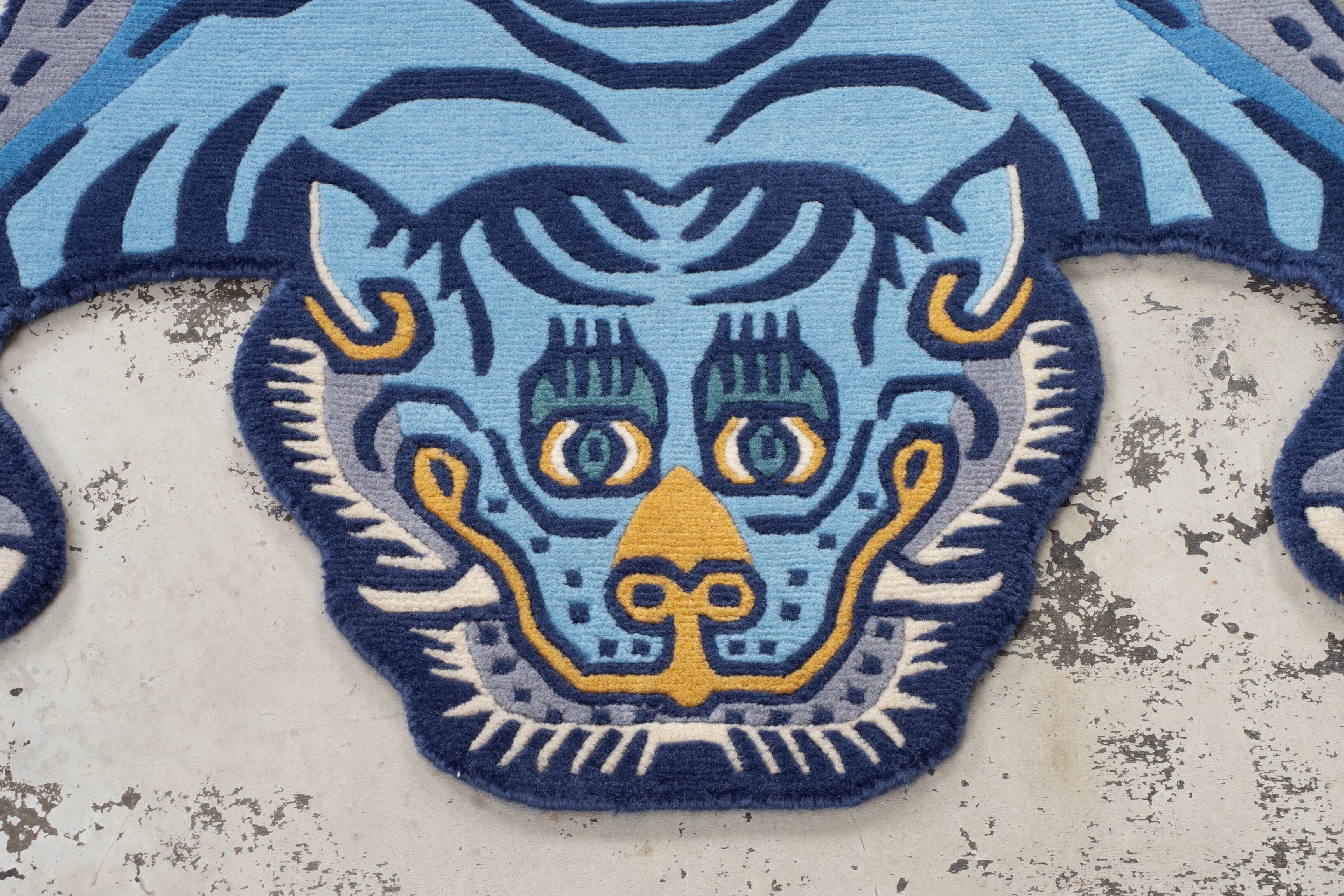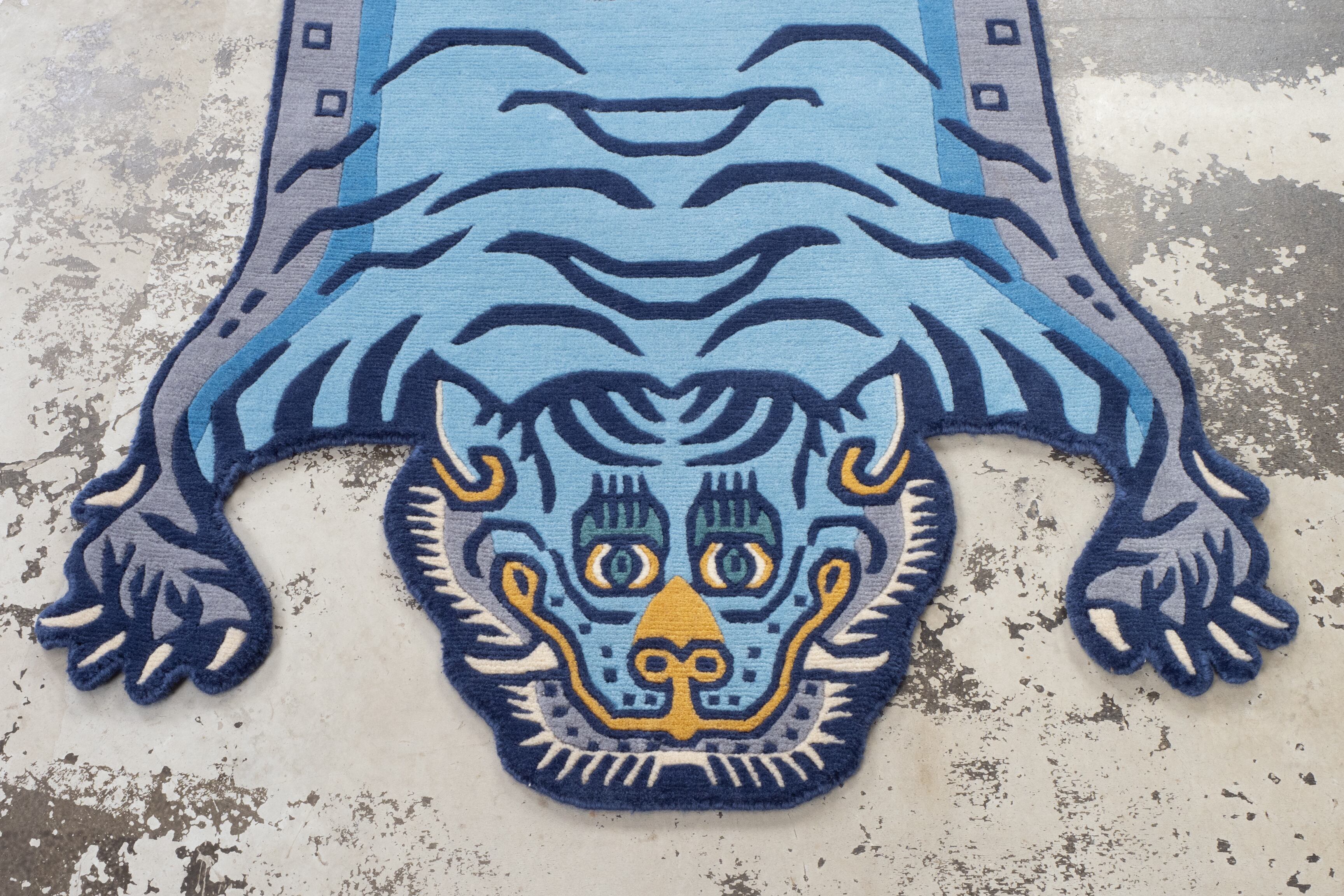 Tibetan Tiger Rug 《Mサイズ•ウール・オリジナル3・レイニーブルー191》チベタンタイガーラグ