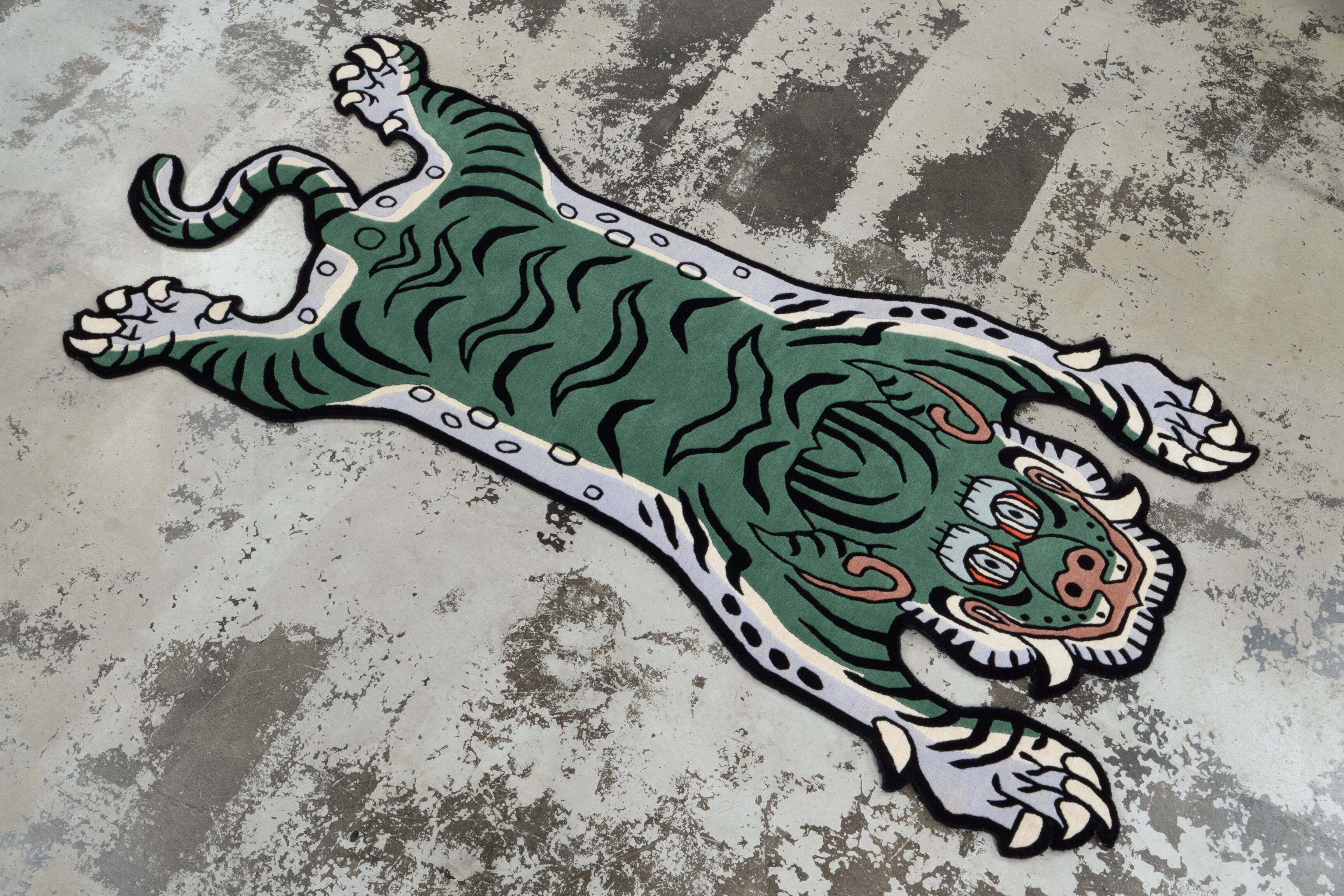 Tibetan Tiger Rug 《Lサイズ•ウール・オリジナル2・フォレストグリーン188》チベタンタイガーラグ