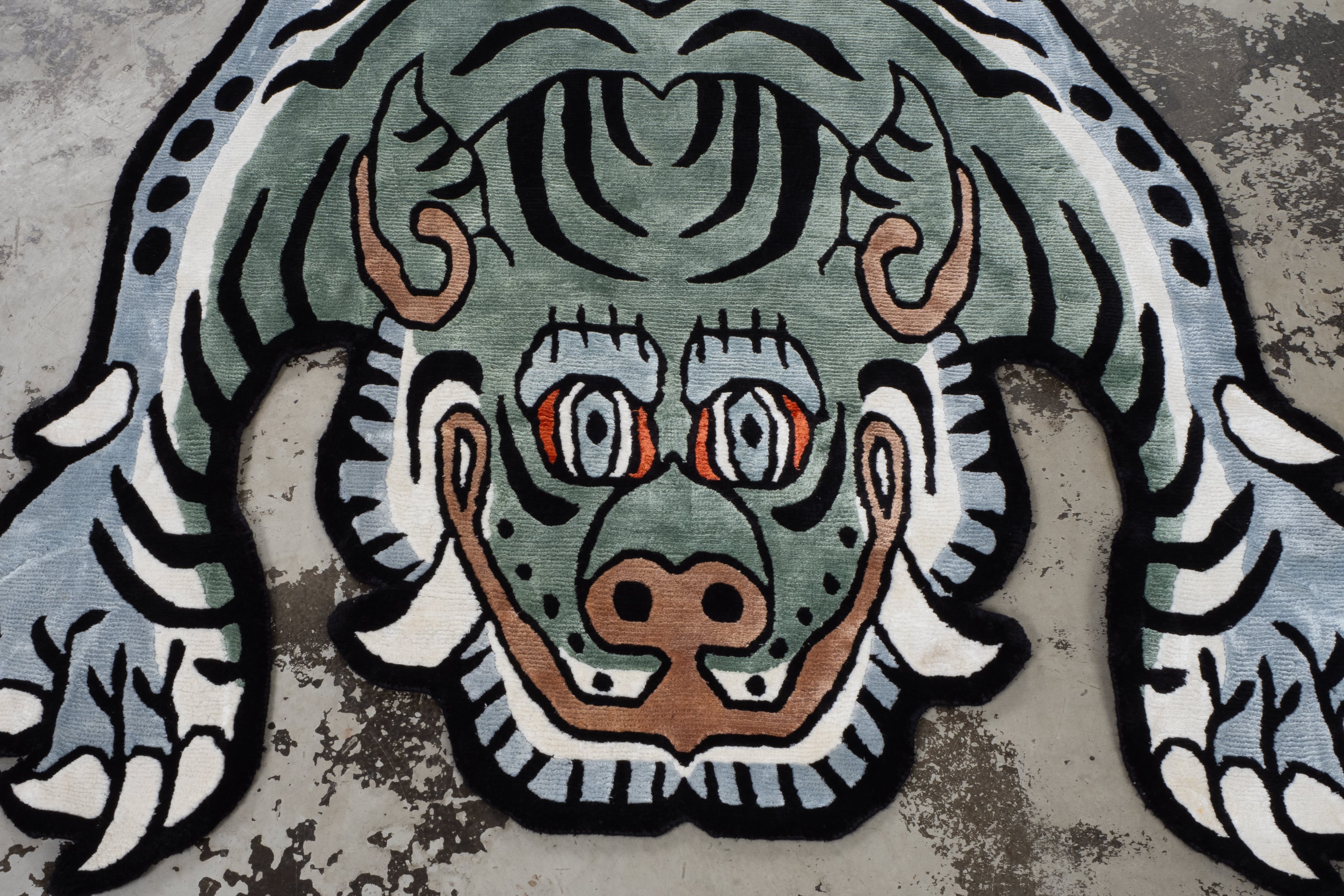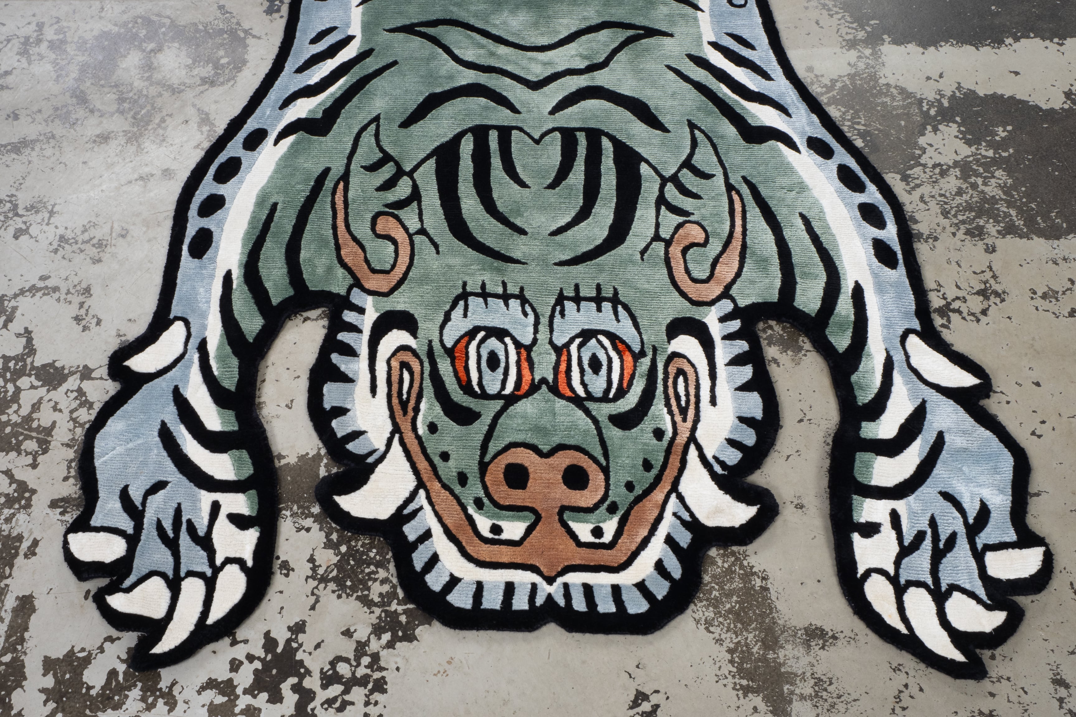Tibetan Tiger Rug 《Lサイズ•シルク・オリジナル2・フォレストグリーン124》チベタンタイガーラグ