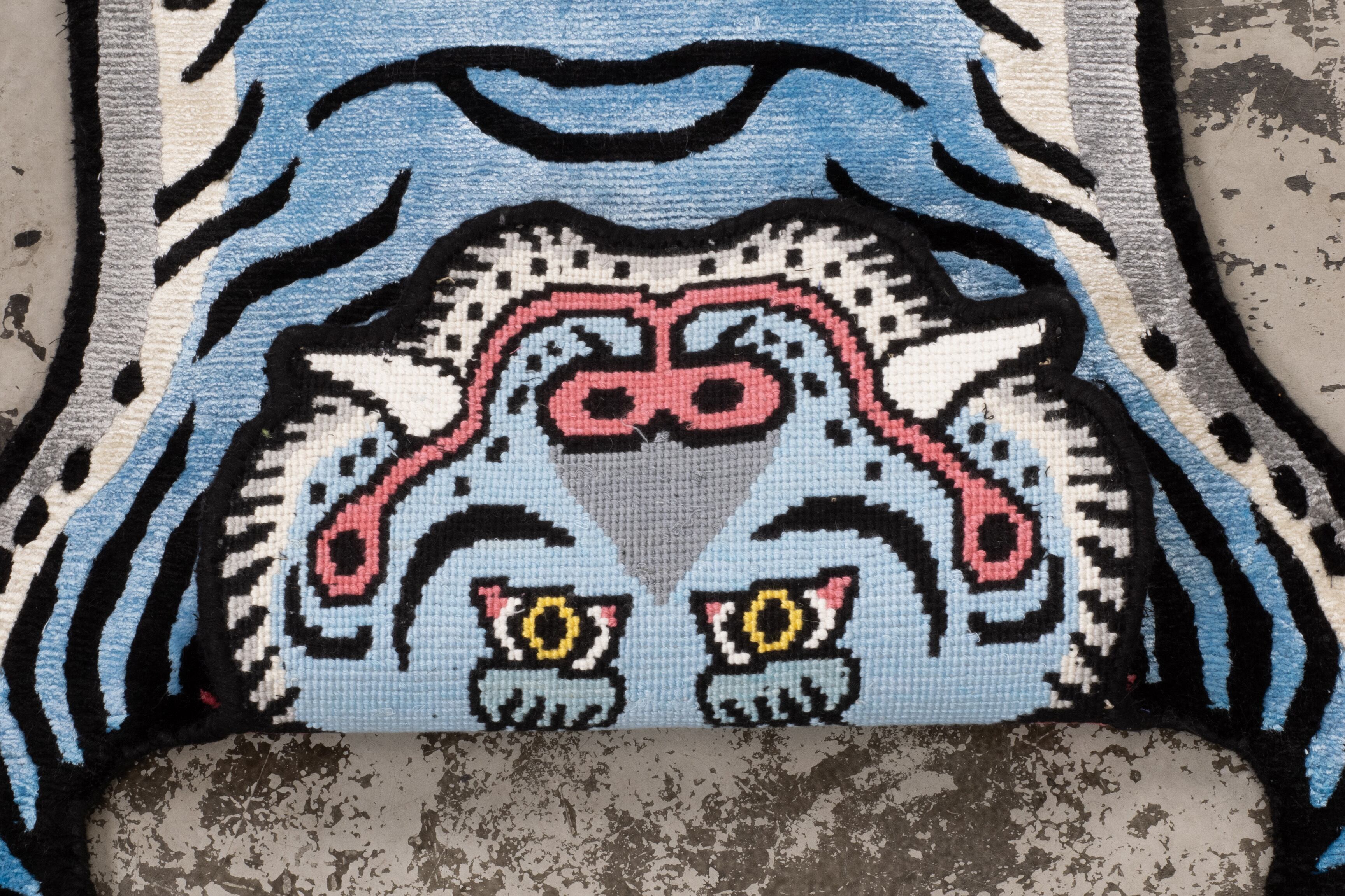 Tibetan Tiger Rug 《Sサイズ•シルク・オリジナル1•ブルー236》チベタンタイガーラグ