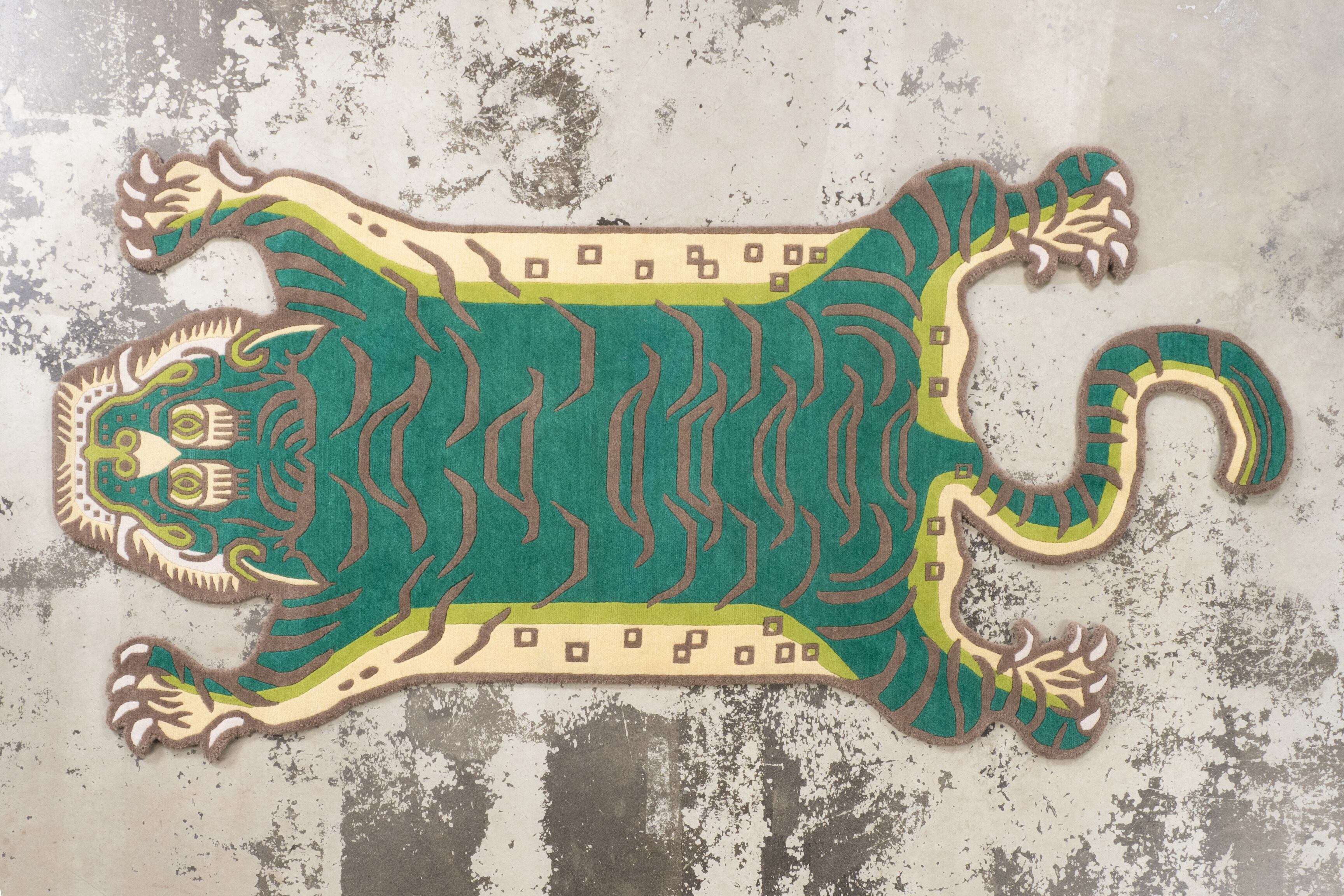 Tibetan Tiger Rug 《Lサイズ•ウール・オリジナル3・サファリグリーン221》チベタンタイガーラグ