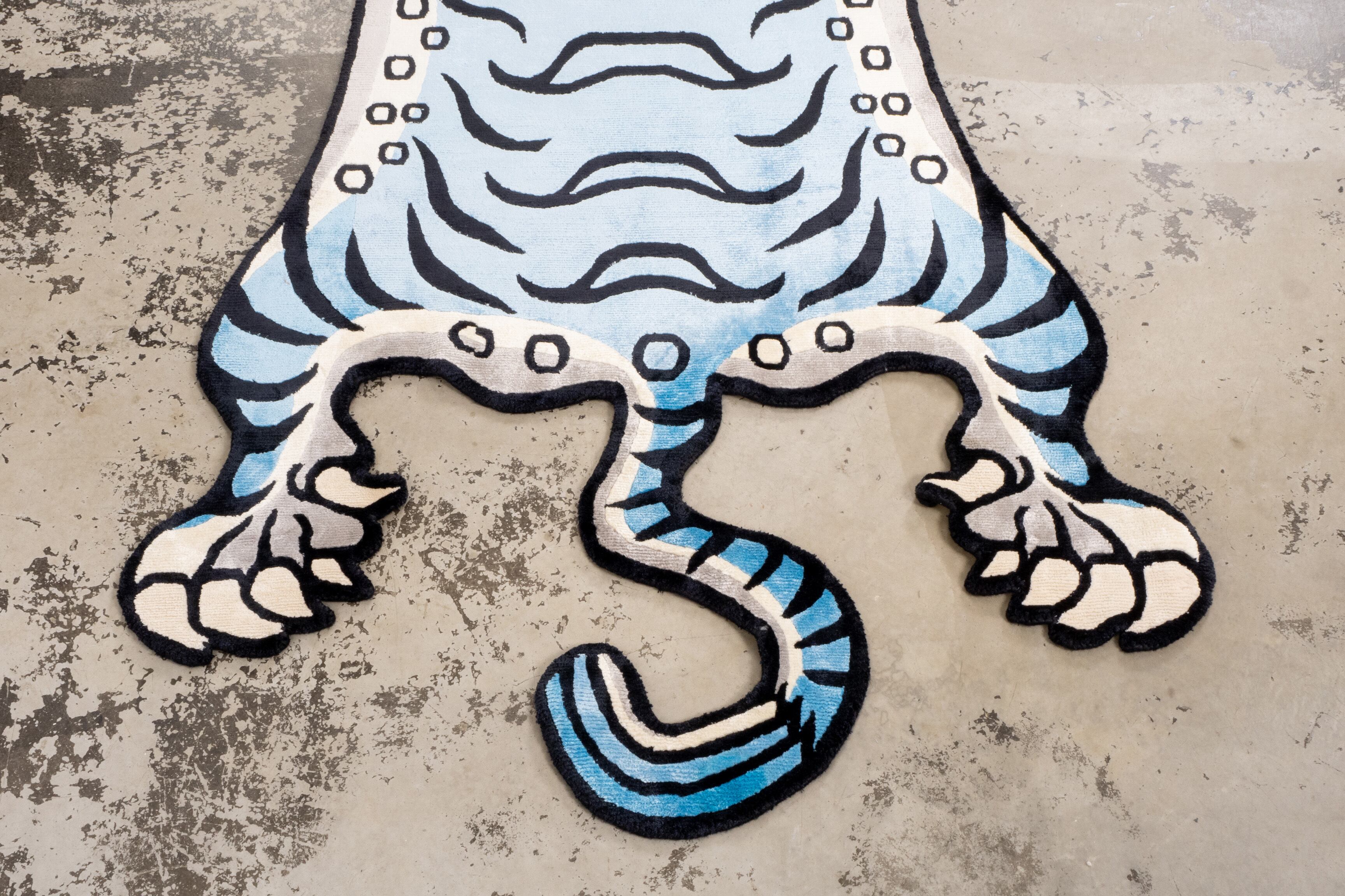 Tibetan Tiger Rug 《Lサイズ•シルク•オリジナル1•ブルー135》チベタンタイガーラグ